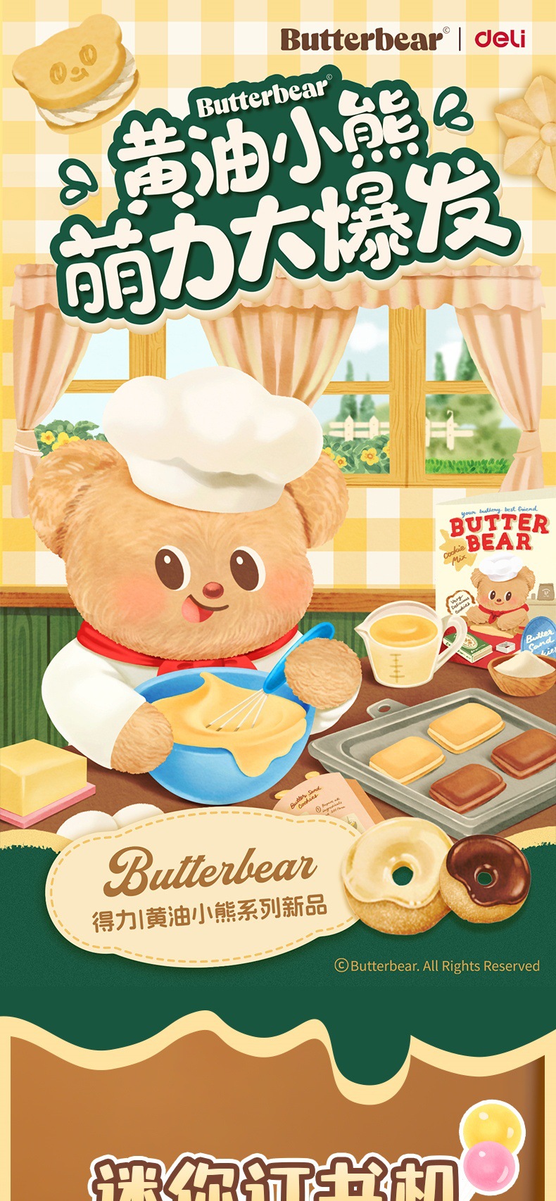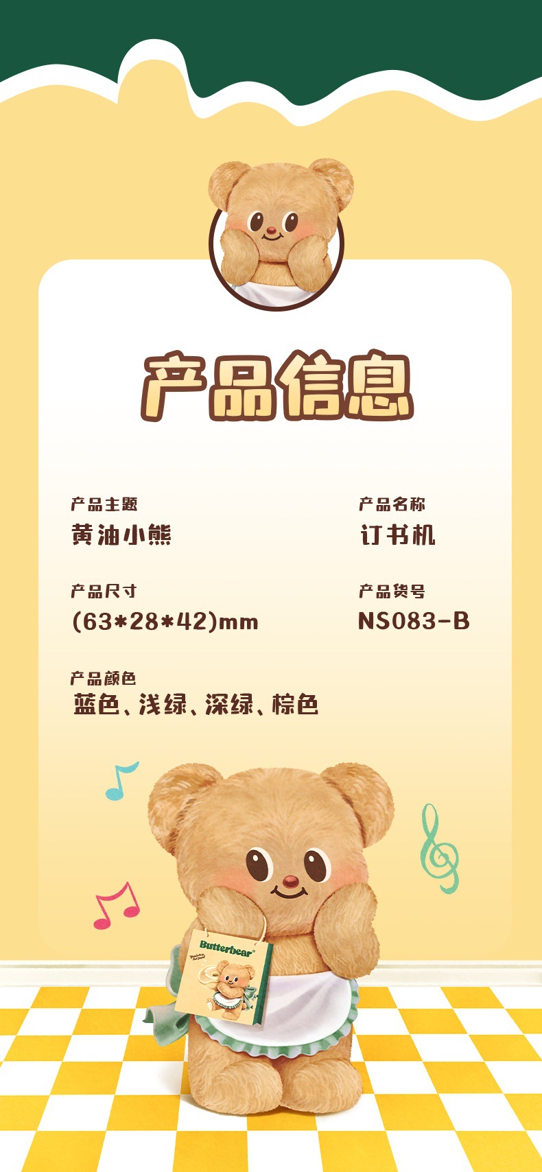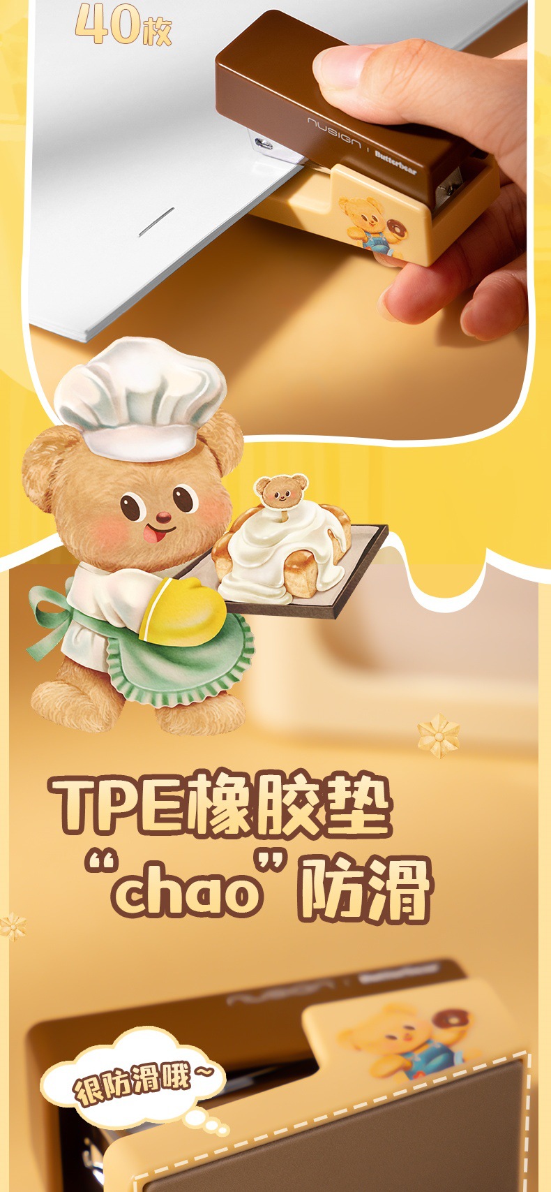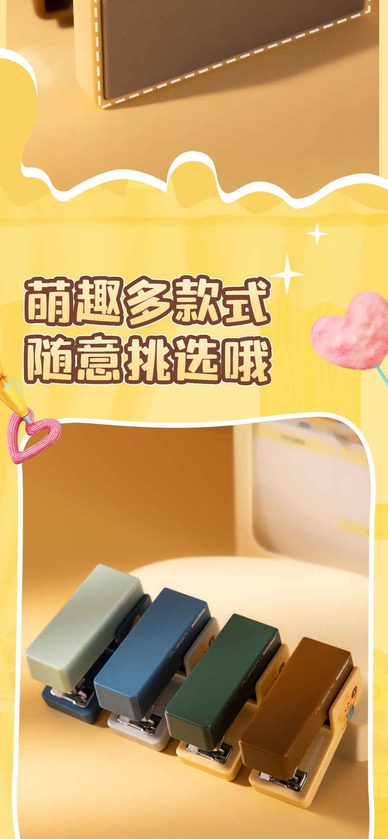 델리 NS083-B 버터 곰 공동 스테이플러 학생 귀여운 스테이플러 스몰 사이즈 휴대용 스테이플러