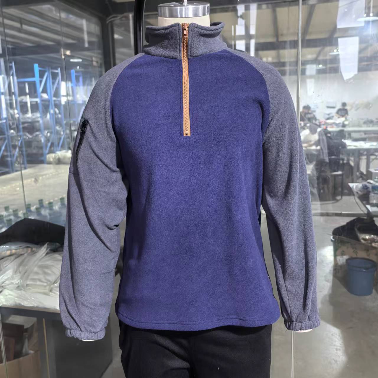 국경 간 대외 무역 남자의 새로운 스탠드 칼라 하프 지퍼 긴 소매 팔 지퍼 포켓 전술 스웨터 풀오버 훈련 세트스토어 가기