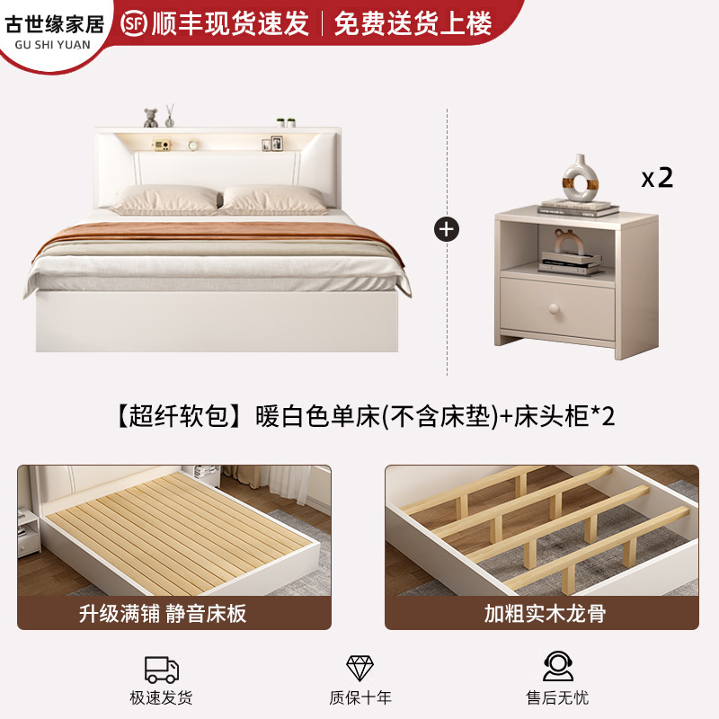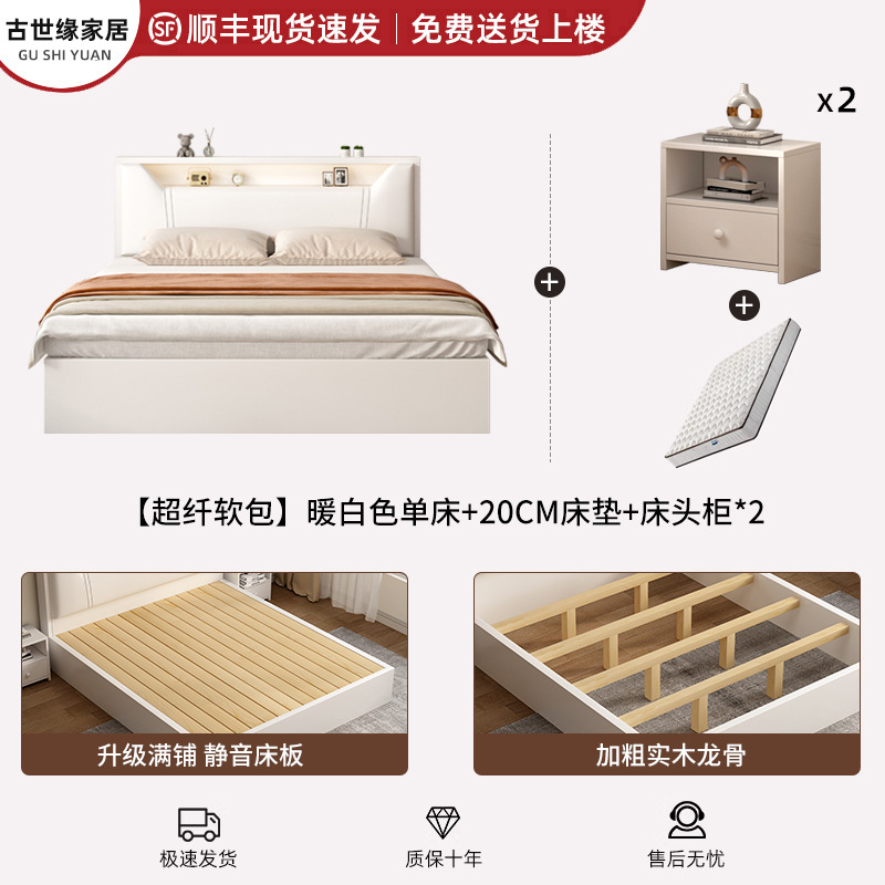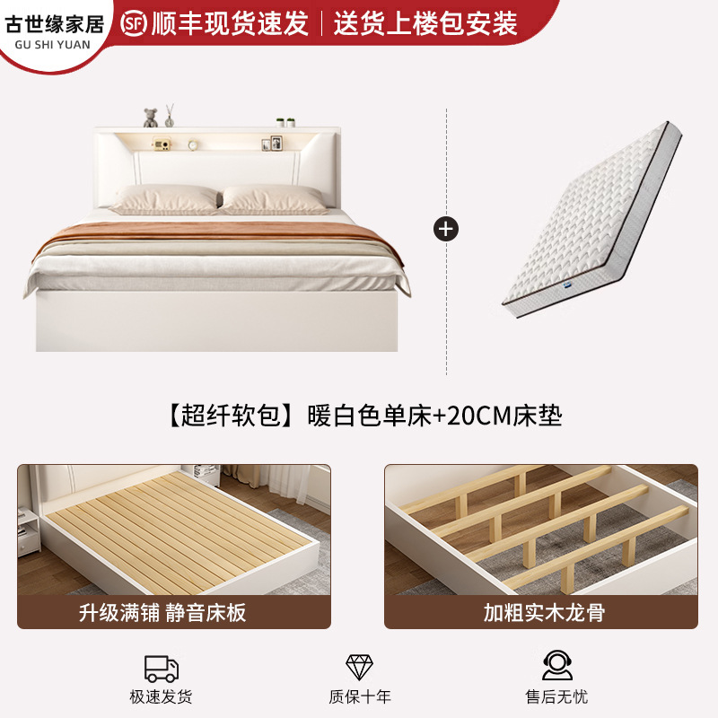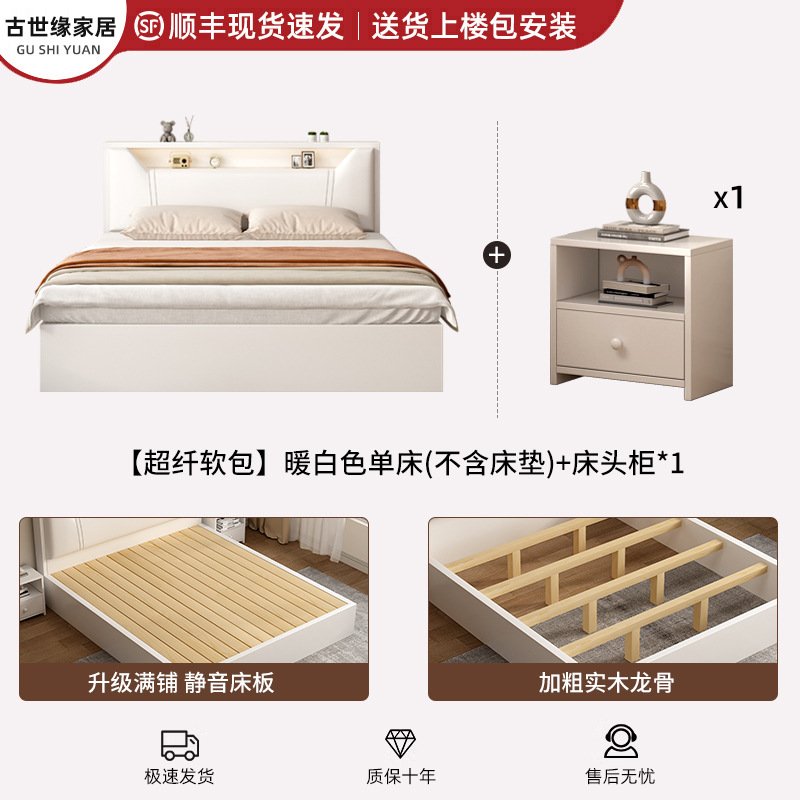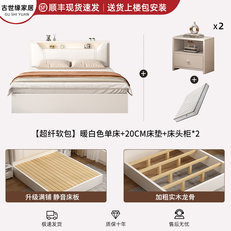 • (풀베드모델) 웜화이트 싱글침대 + 20cm 매트리스 + 침대협탁 * 1 [위층배송]