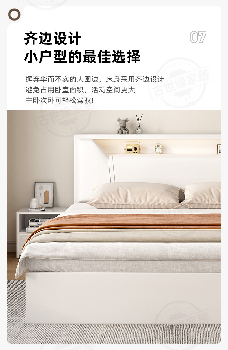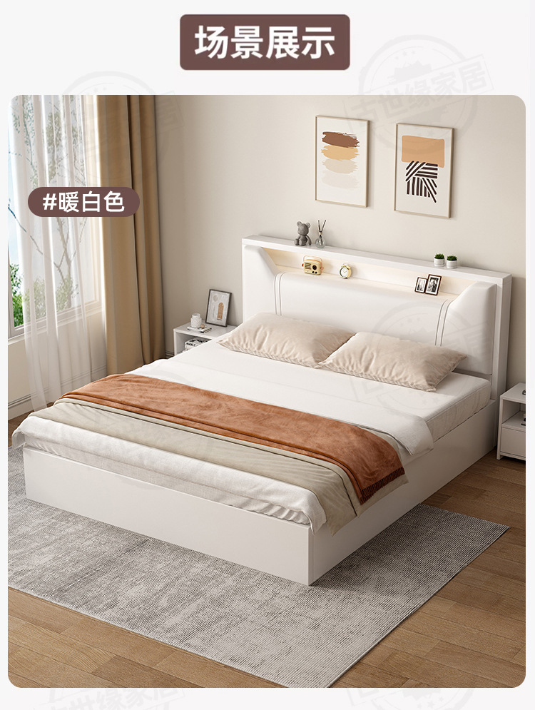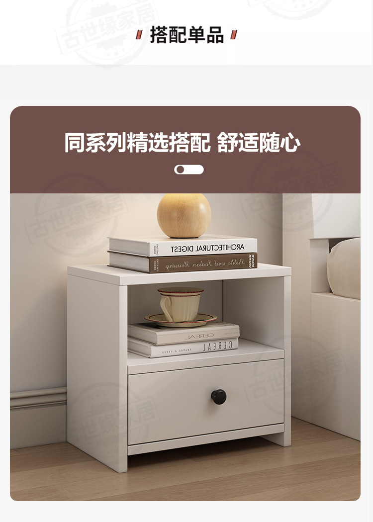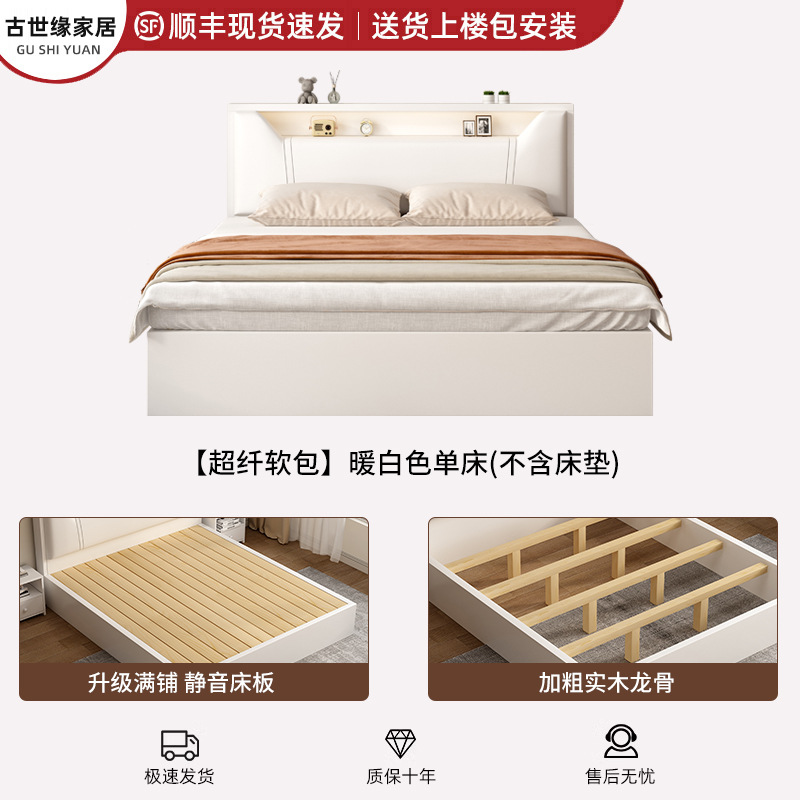 • (풀베드모델) 웜화이트 싱글침대 + 20cm 매트리스 + 침대협탁 * 1 [위층배송]