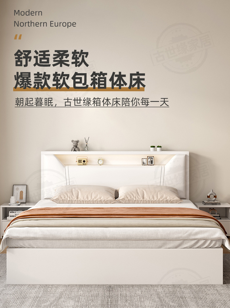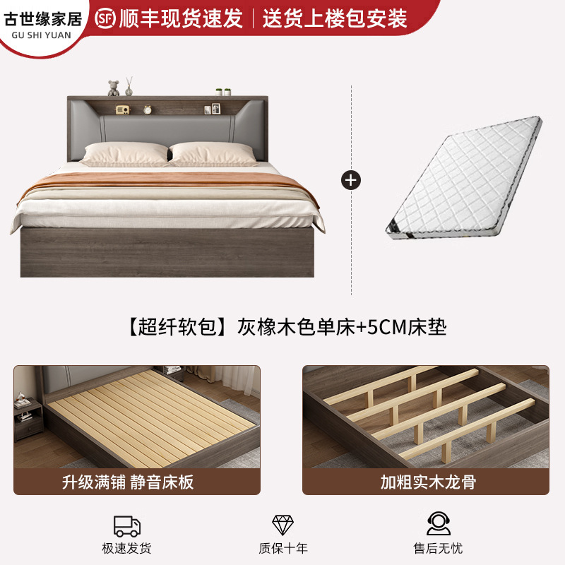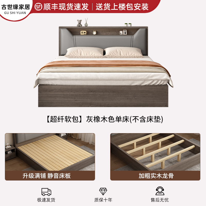 단단한 나무 침대 간단한 현대 1.5 m 부드러운 가방 저장 더블 침대 임대 방 홈 침실 1.8 싱글 침대 침대 프레임스토어 가기