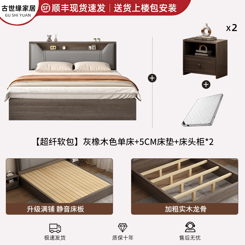 • (풀베드모델) 그레이오크 싱글침대 + 5cm 매트리스 + 침대협탁 *1 [위층배송]