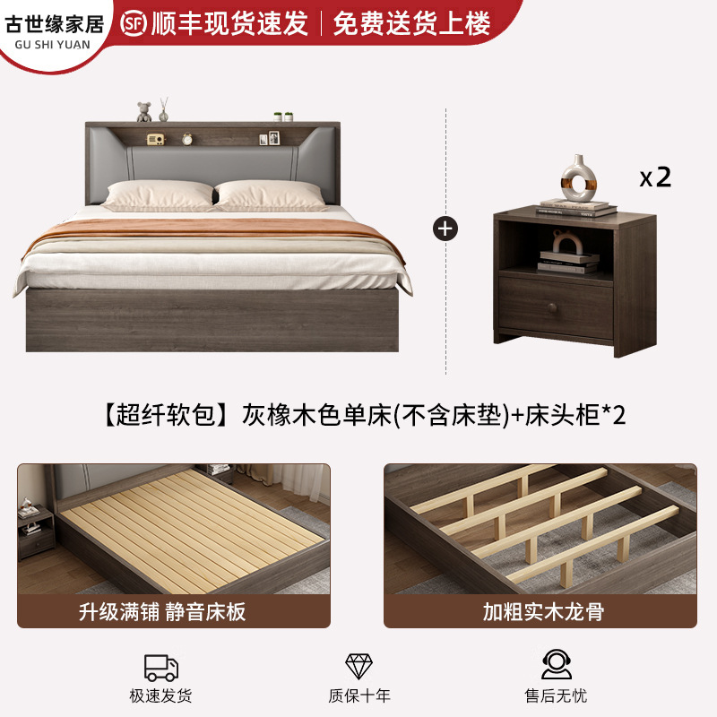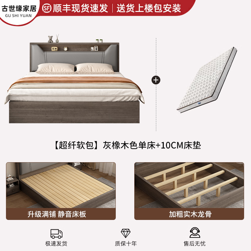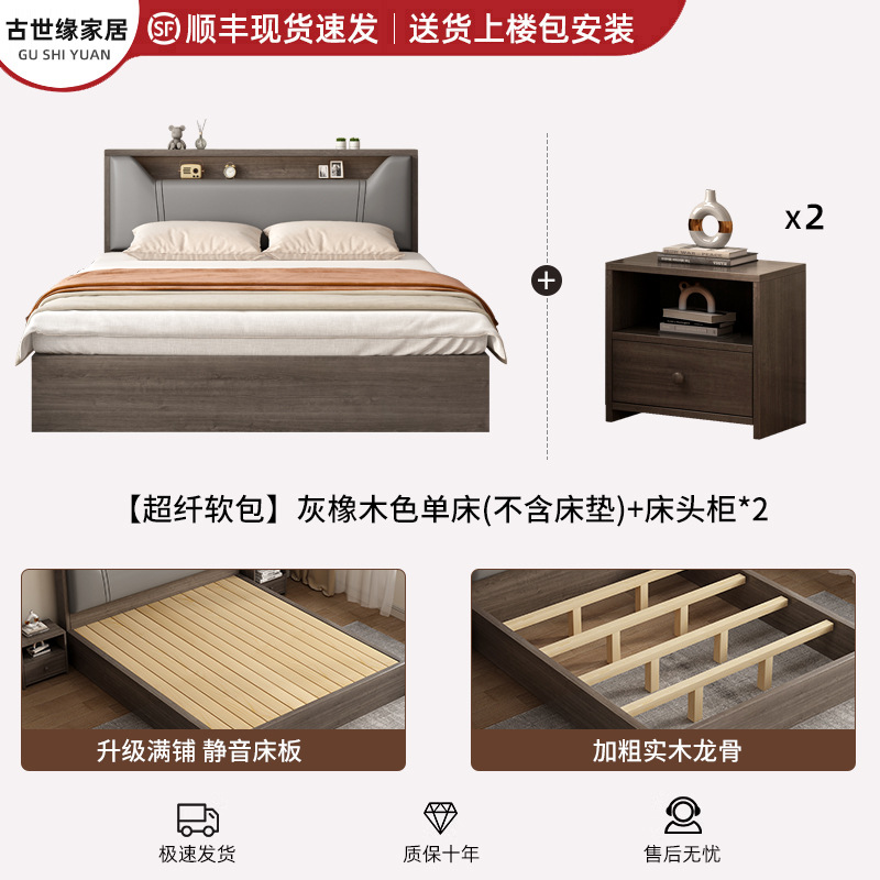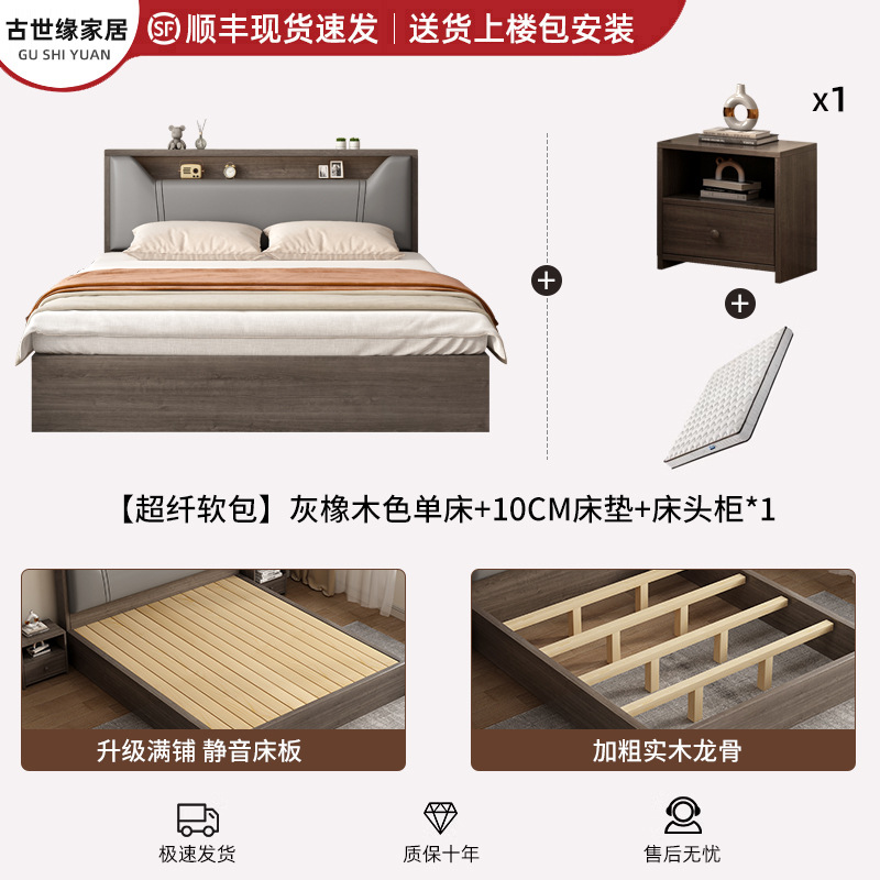 • (풀베드모델) 그레이오크 싱글침대 + 10cm 매트리스 + 침대협탁 *1 [위층배송]