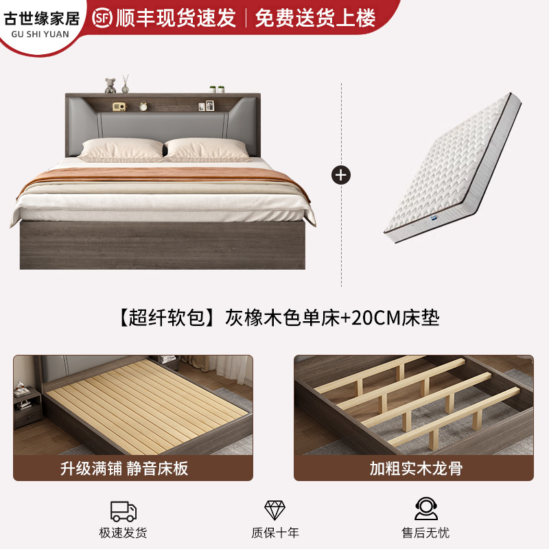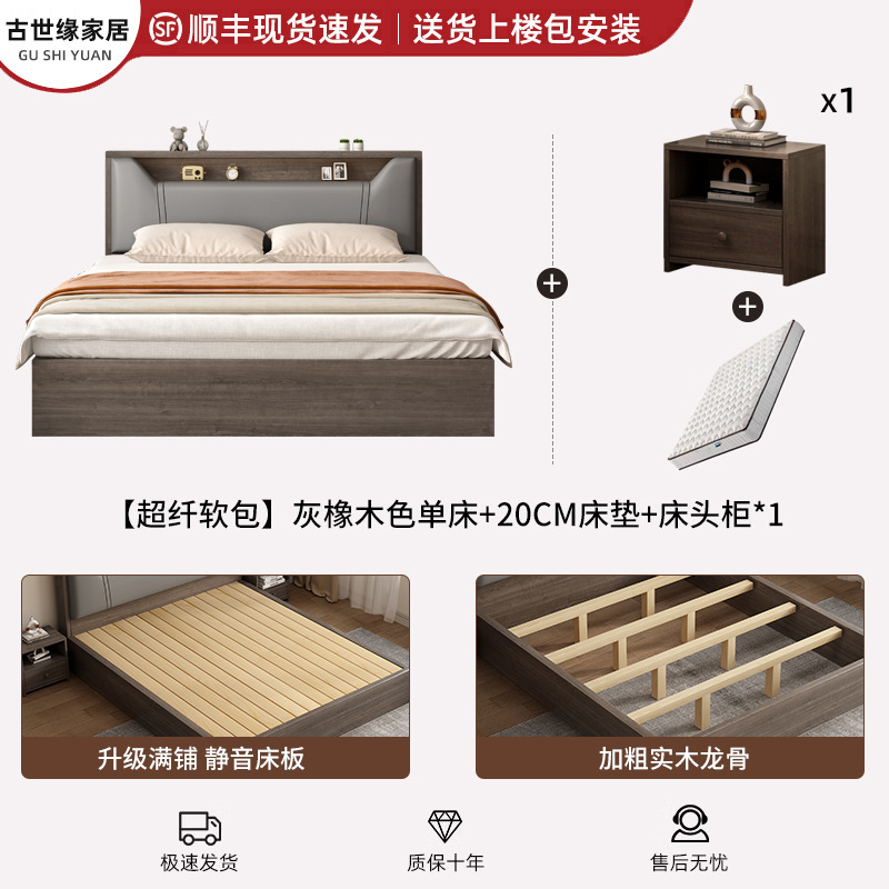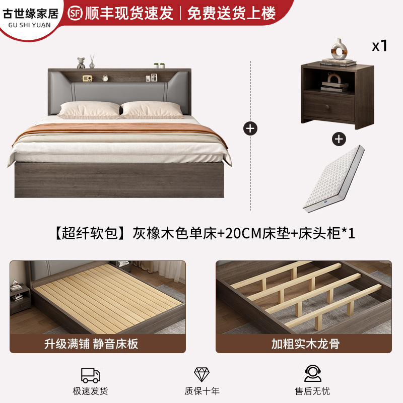 • (풀베드모델) 그레이오크 싱글침대 + 20cm 매트리스 + 침대협탁 *1 [위층배송]