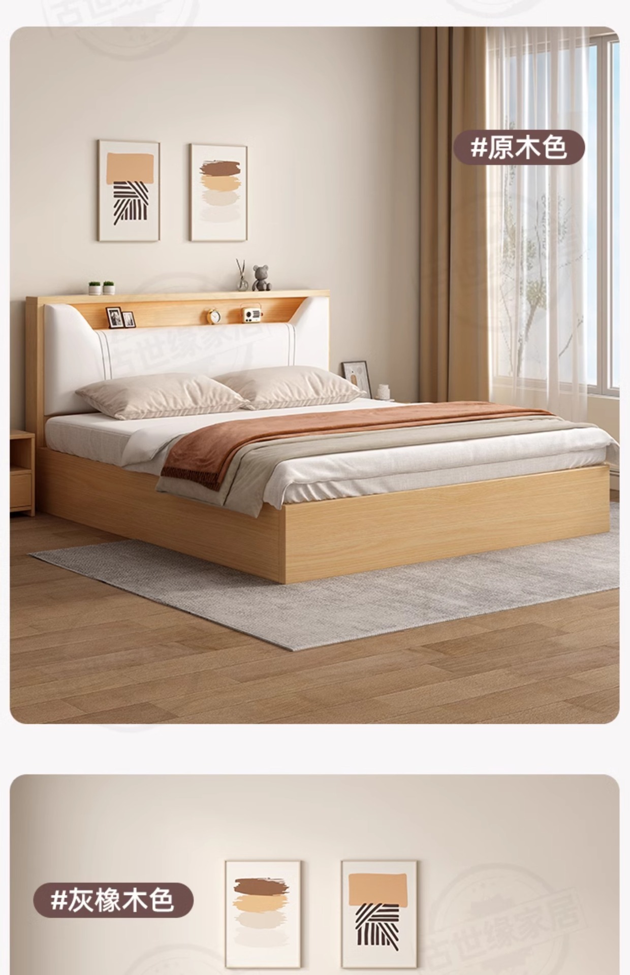 • (풀베드모델) 그레이오크 싱글침대 + 침대협탁*2 [위층배송]