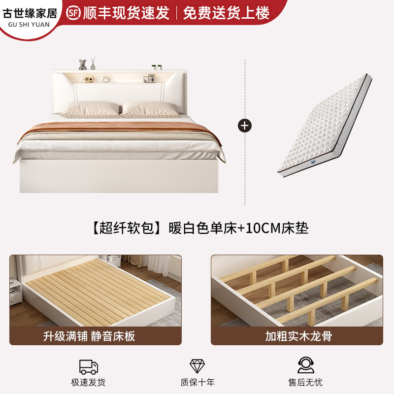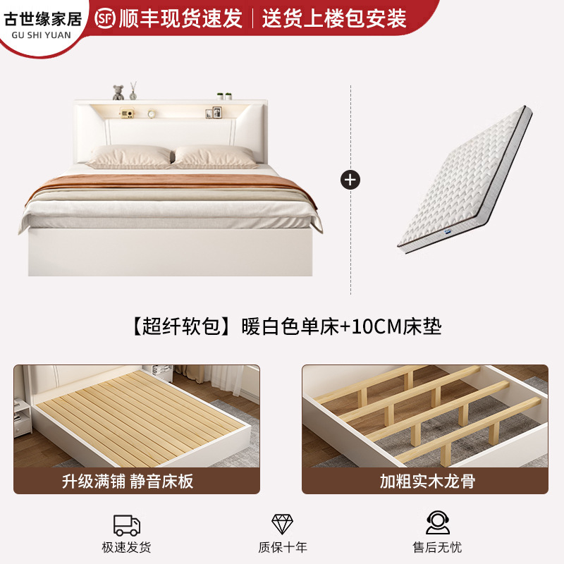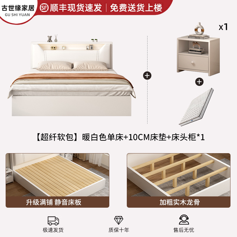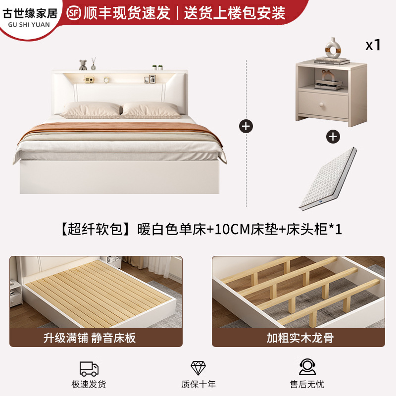 • (풀베드모델) 웜화이트 싱글침대 + 10cm 매트리스 + 침대협탁 * 1 [위층배송]