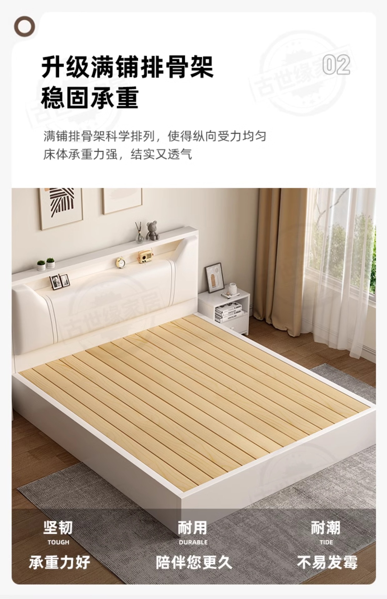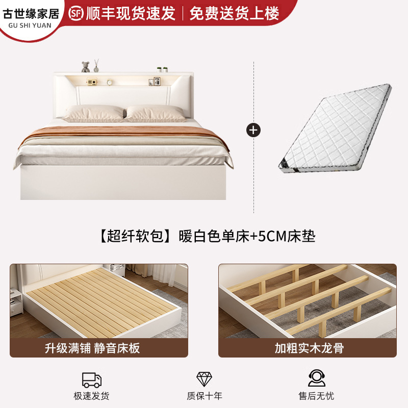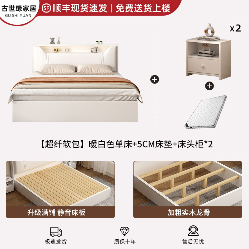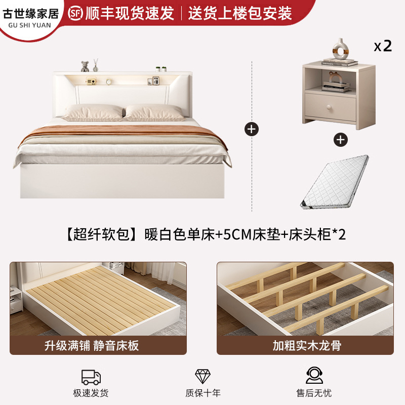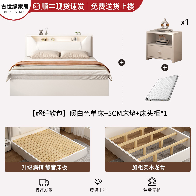 • (풀베드모델) 웜화이트 싱글침대 + 5cm 매트리스 + 침대협탁 * 1 [위층배송]