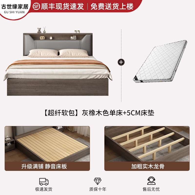 단단한 나무 침대 간단한 현대 1.5 m 부드러운 가방 저장 더블 침대 임대 방 홈 침실 1.8 싱글 침대 침대 프레임