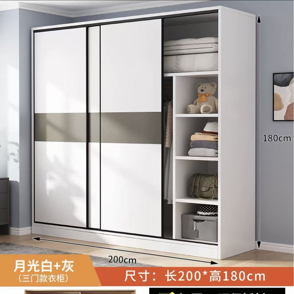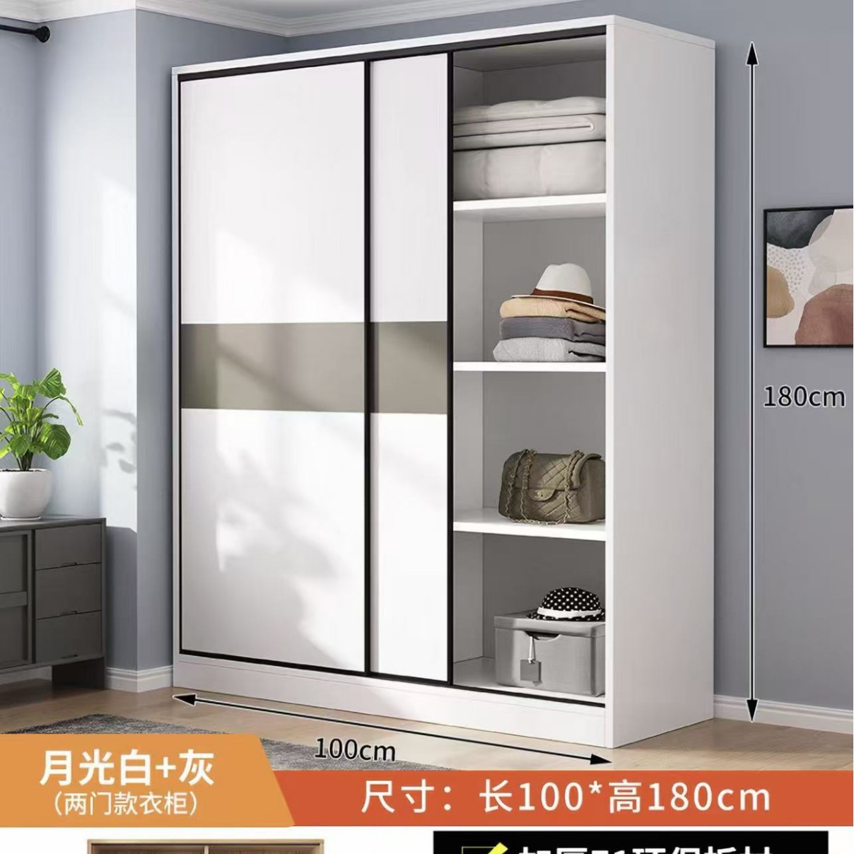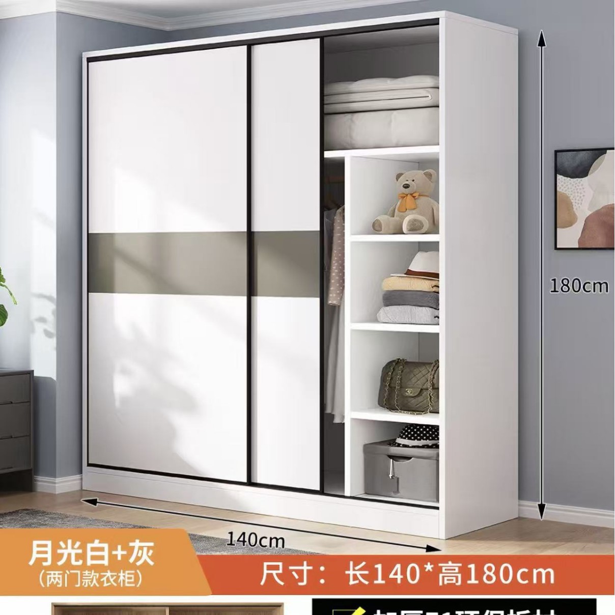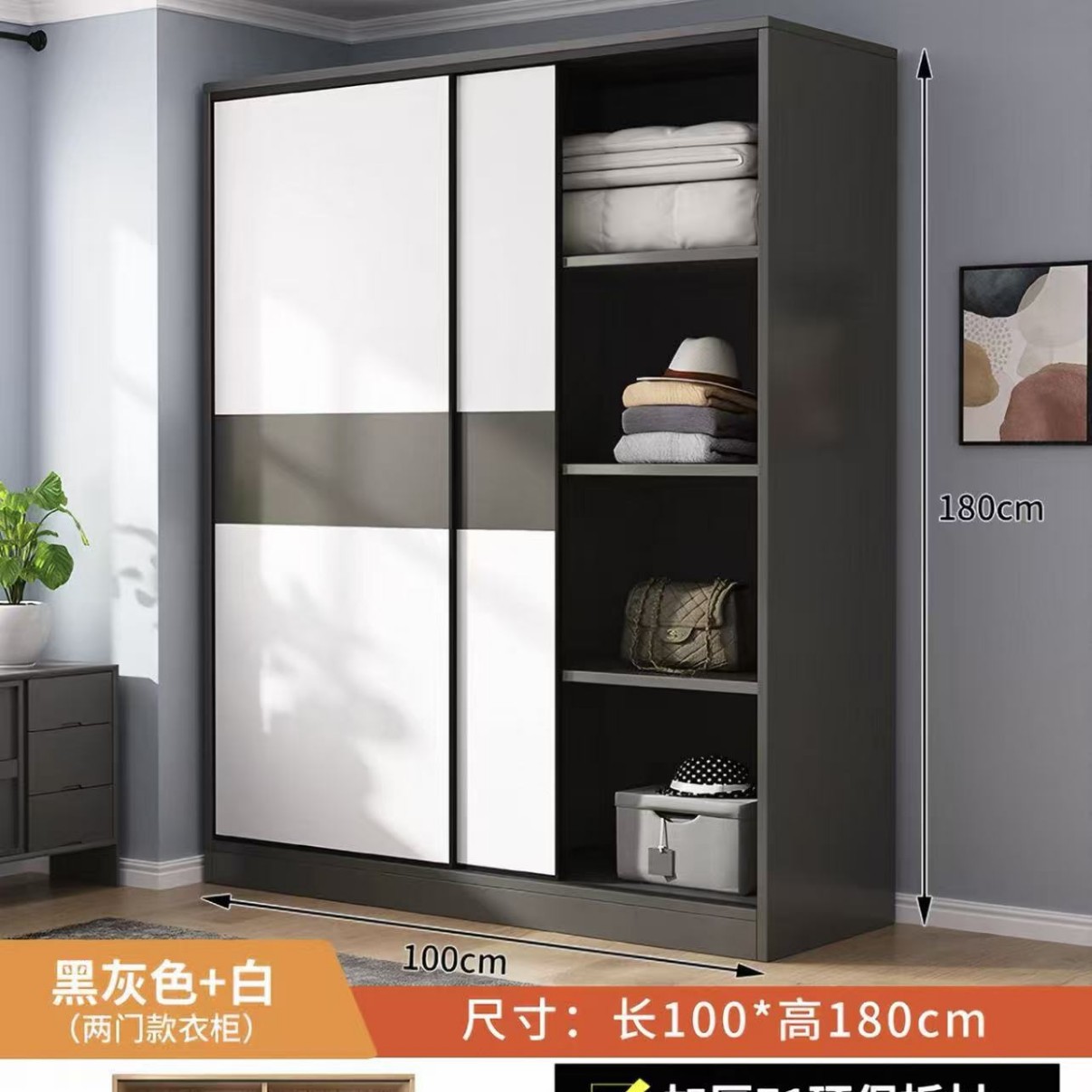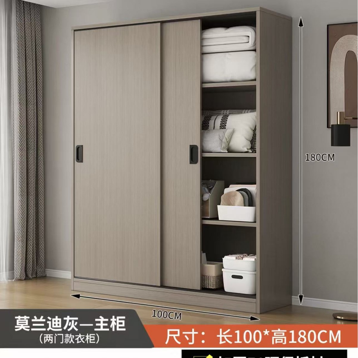 가정용 침실 용 슬라이딩 도어가있는 간단한 옷장 목재 경제적 인 임대 룸 작은 아파트 보관 어린이 옷장