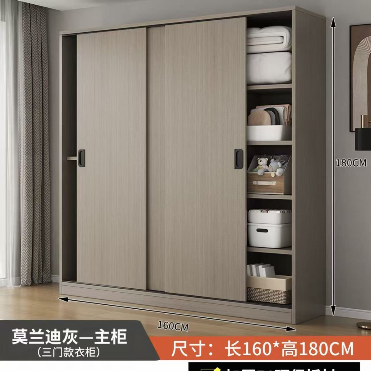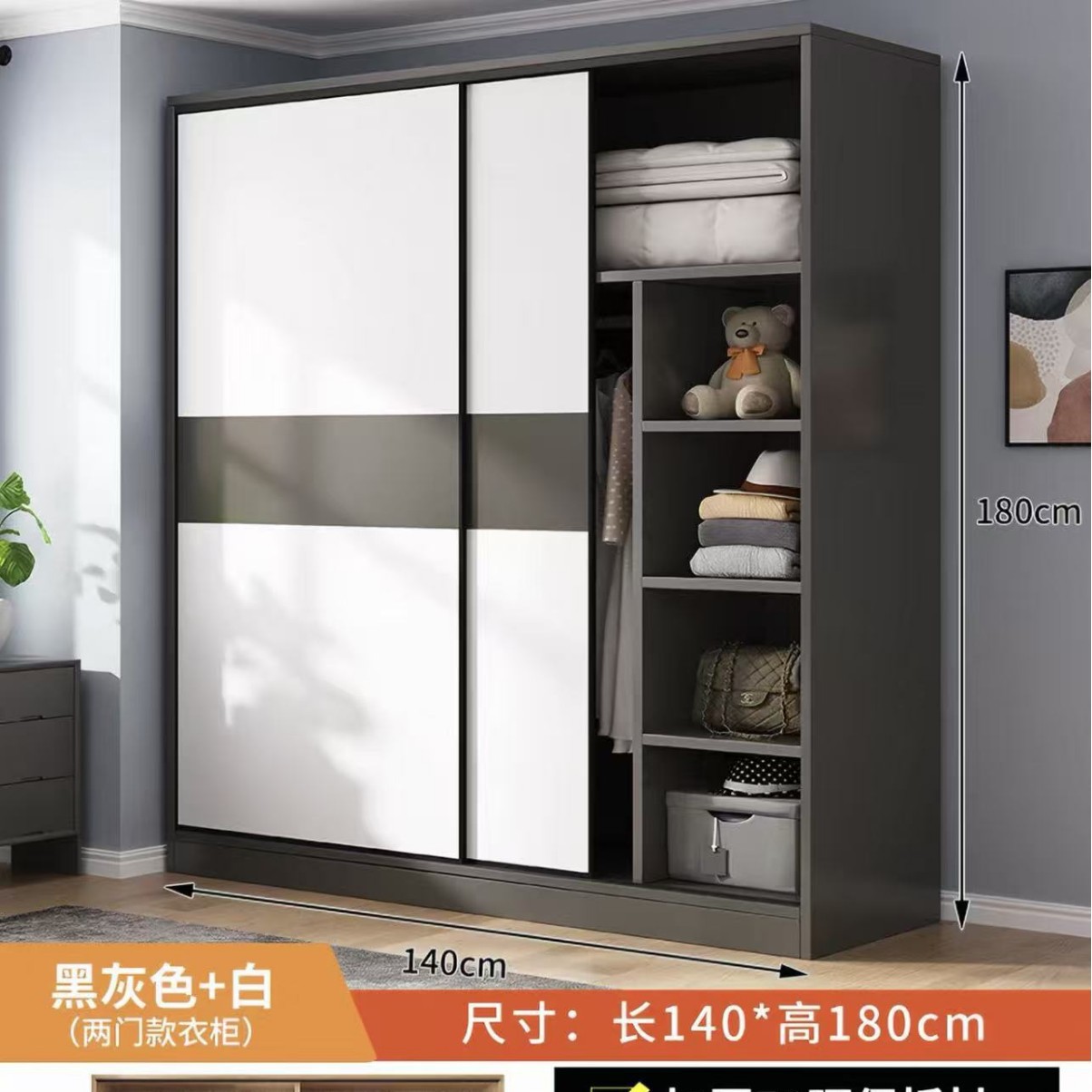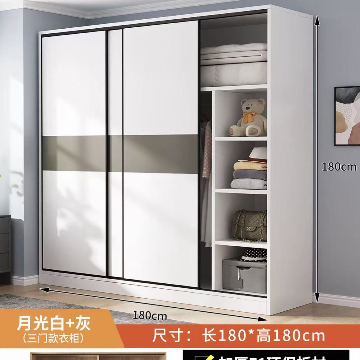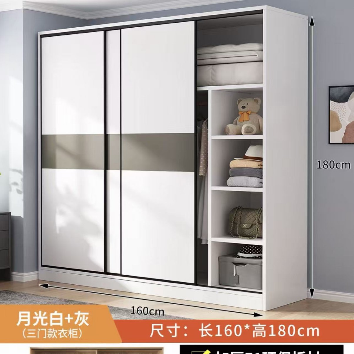 가정용 침실 용 슬라이딩 도어가있는 간단한 옷장 목재 경제적 인 임대 룸 작은 아파트 보관 어린이 옷장