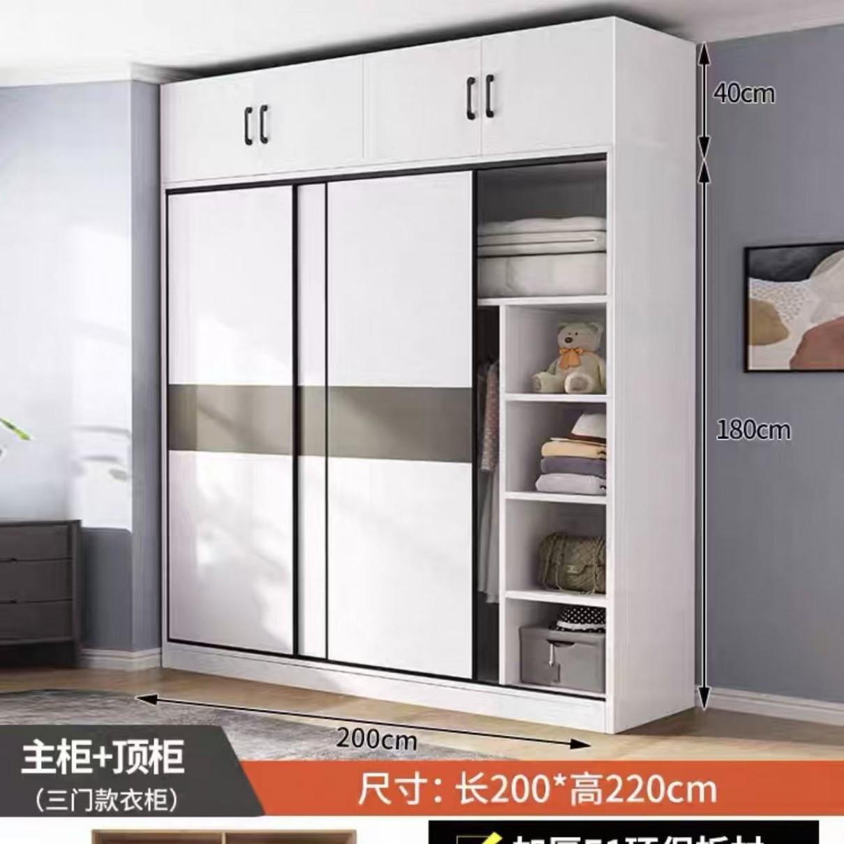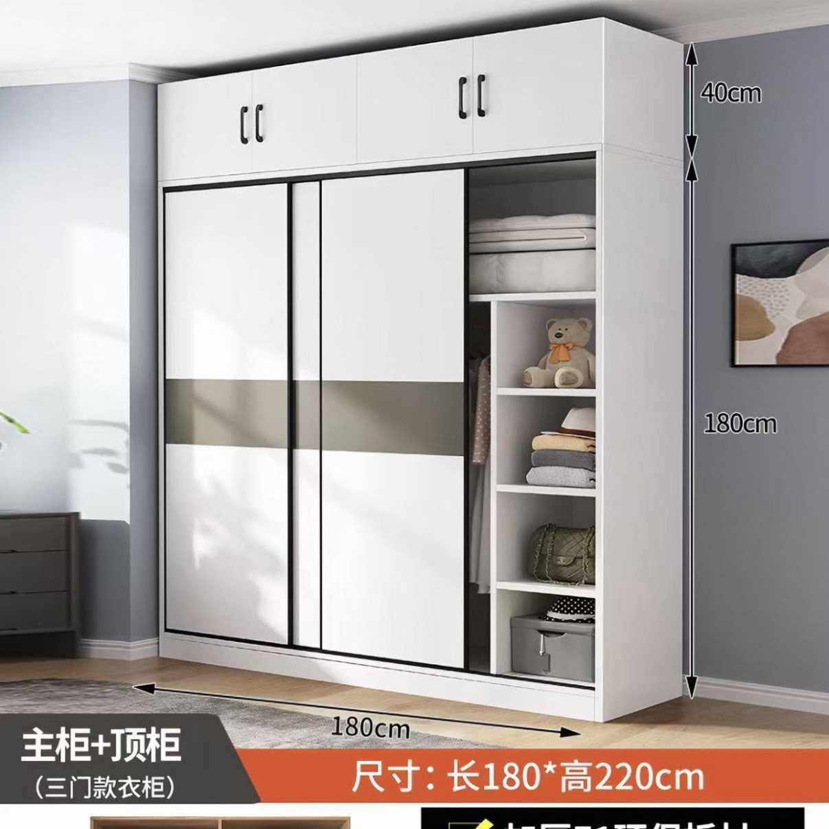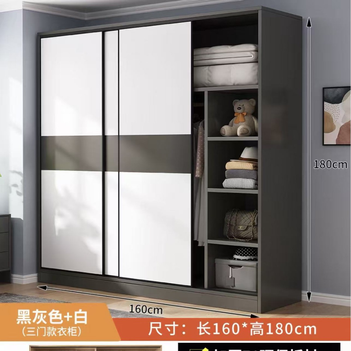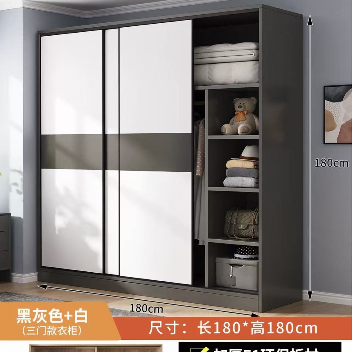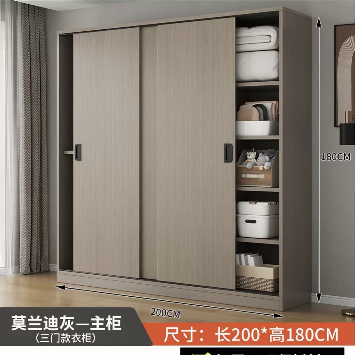 가정용 침실 용 슬라이딩 도어가있는 간단한 옷장 목재 경제적 인 임대 룸 작은 아파트 보관 어린이 옷장