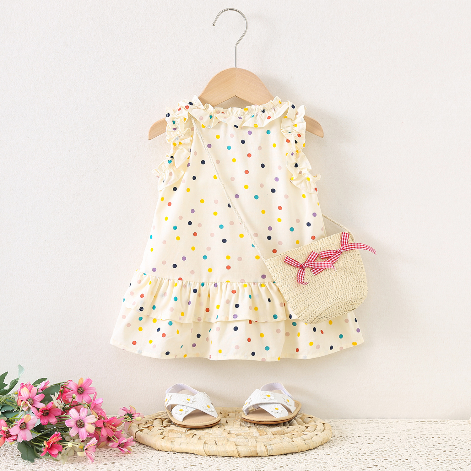 1742 여름 새로운 올오버 컬러 아이디어 면화 원피스 소녀 귀여운 원피스 활 대나무 바구니 가방스토어 가기