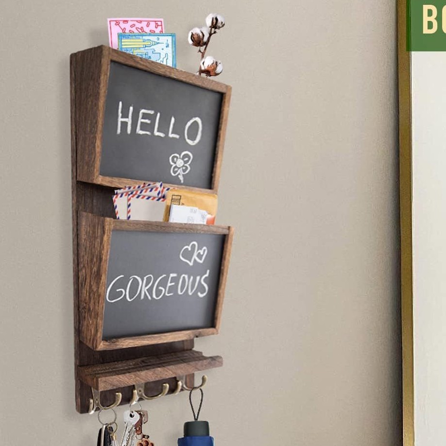 북유럽 더블 레이어 오래 된 키 걸이 거실 벽 장식 장식품 단단한 나무 주방 욕실 벽 교수형 보관 선반