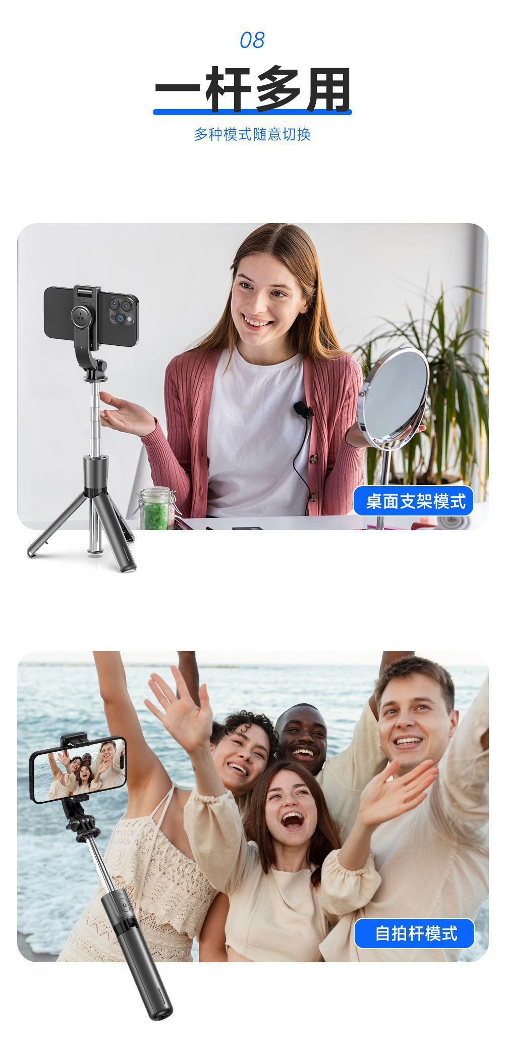 신제품 F01 분리 가능한 무선 원격 제어 삼각대 셀카 스틱 흔들림 방지 회전 사진 여행 셀카 유물