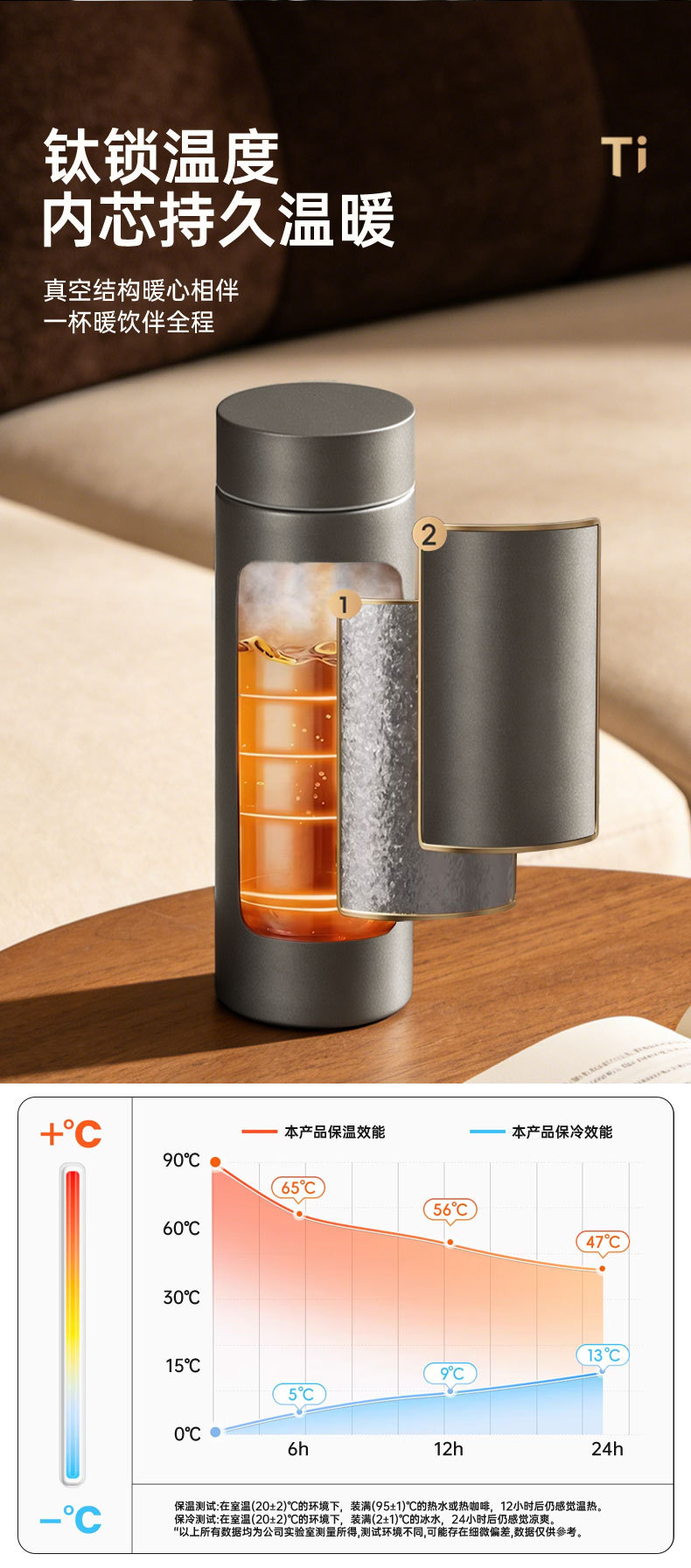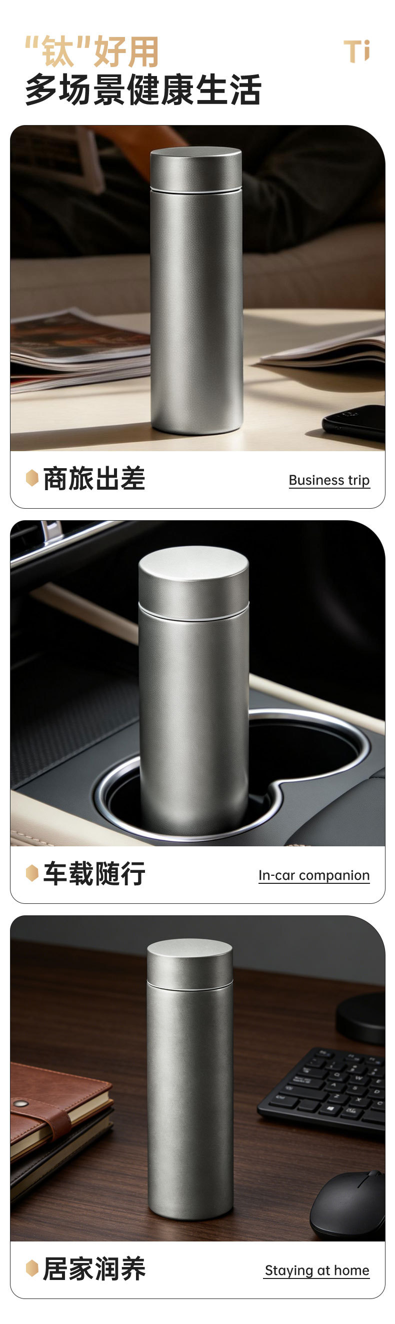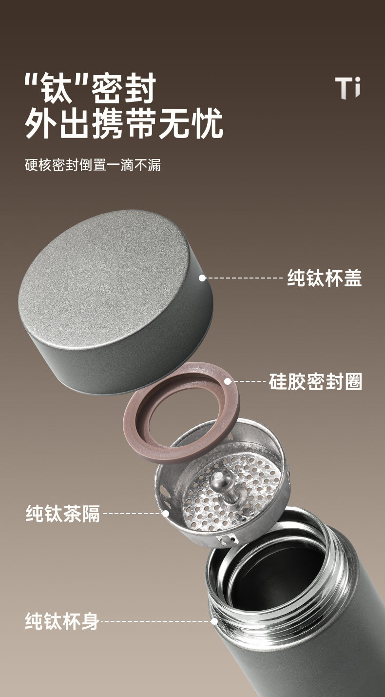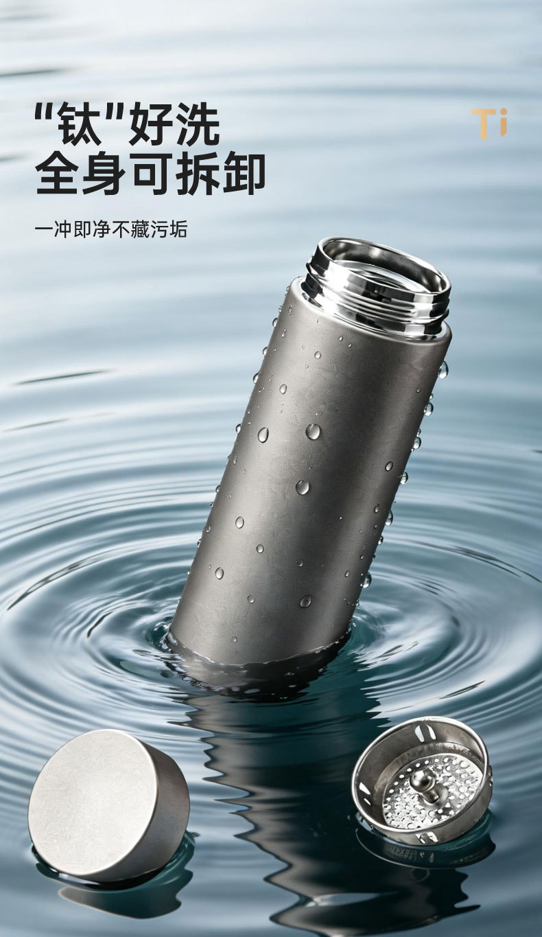 고급스러운 외관을 갖춘 순수 티타늄 보온병 컵, 차와 물 분리, 대용량, 남성용 및 여성용 고급 비즈니스 물컵, 맞춤형 로고 도매스토어 가기