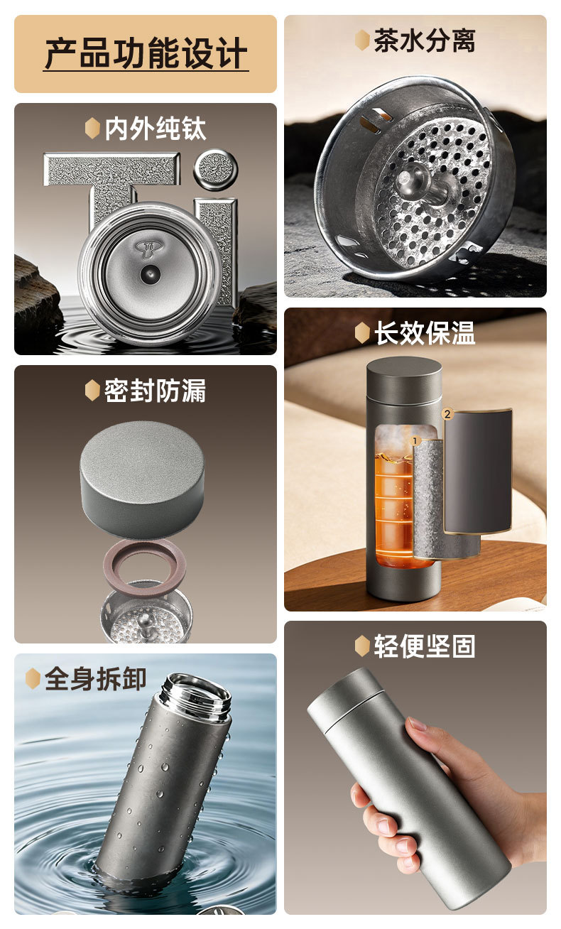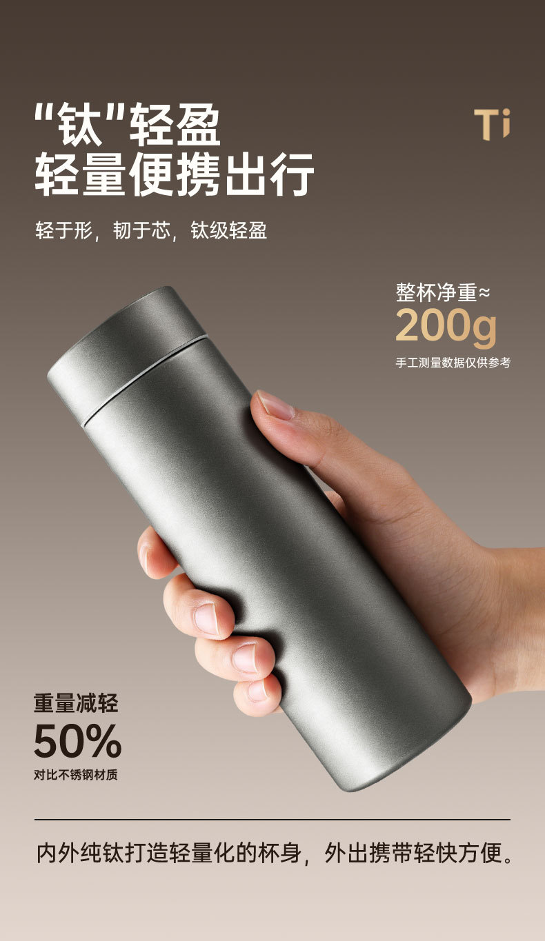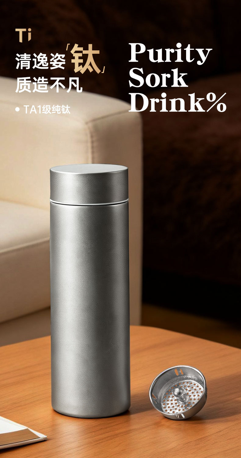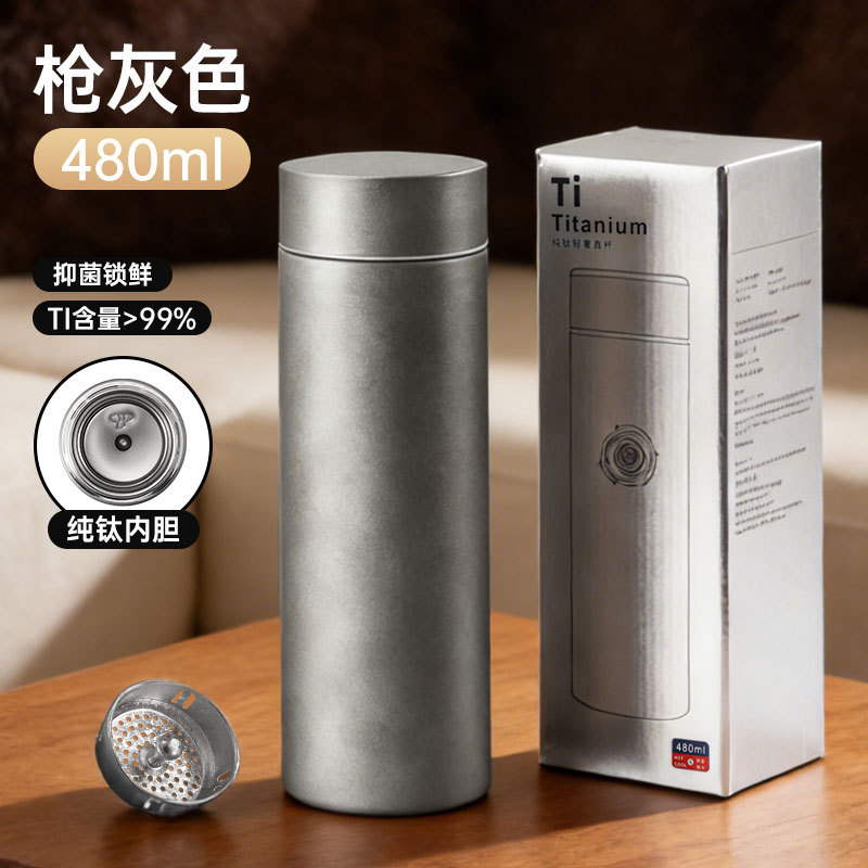 고급스러운 외관을 갖춘 순수 티타늄 보온병 컵, 차와 물 분리, 대용량, 남성용 및 여성용 고급 비즈니스 물컵, 맞춤형 로고 도매
