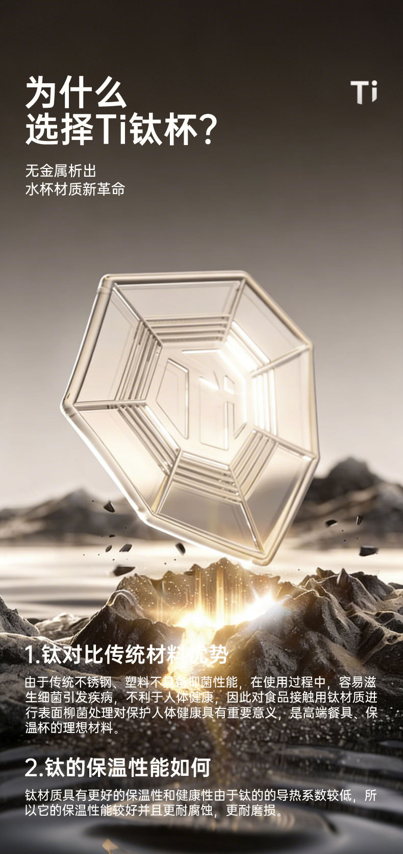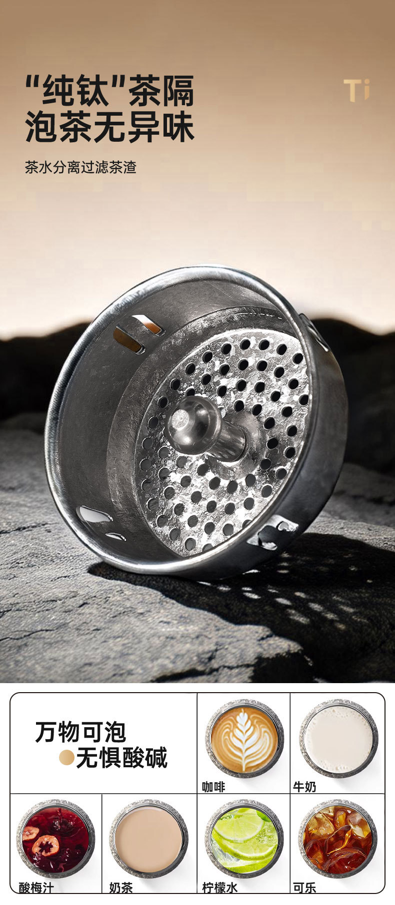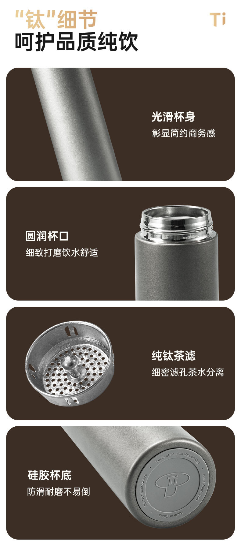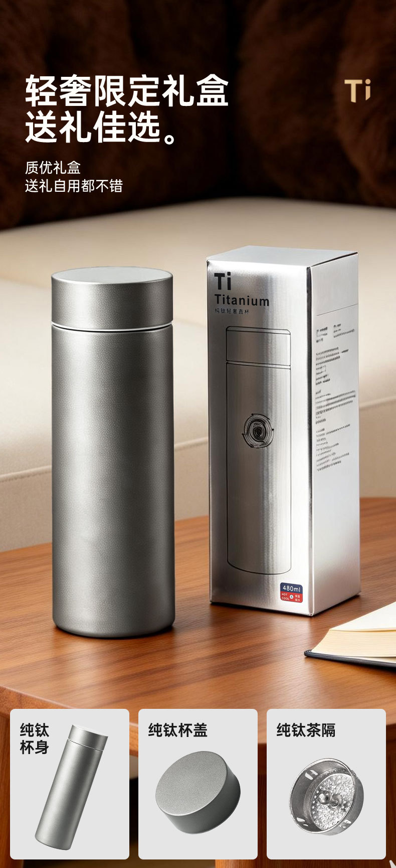 고급스러운 외관을 갖춘 순수 티타늄 보온병 컵, 차와 물 분리, 대용량, 남성용 및 여성용 고급 비즈니스 물컵, 맞춤형 로고 도매