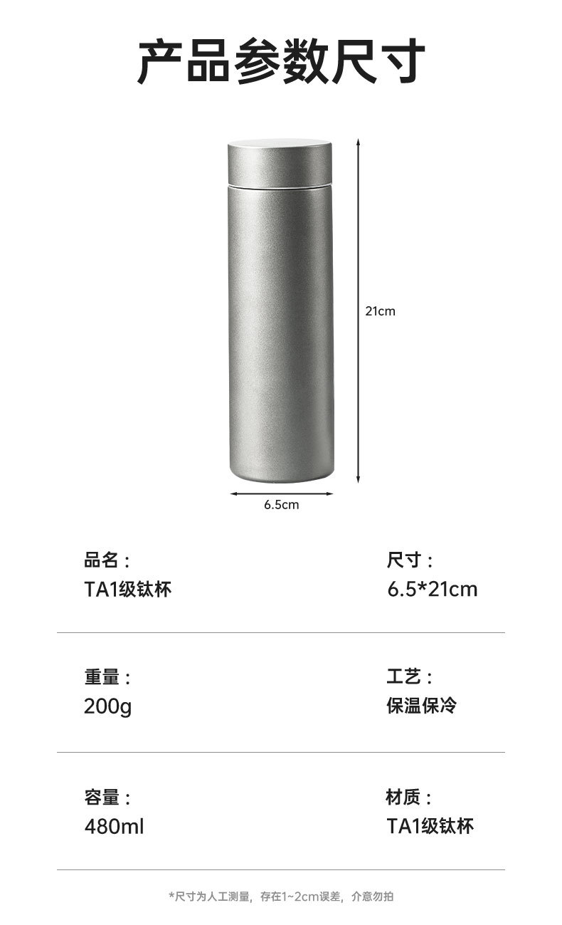 • 회색 [내외 순수 티타늄 보온병] 480ML (기둥형 차 거름망)