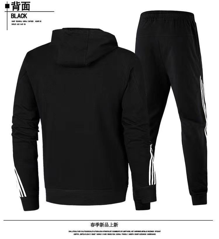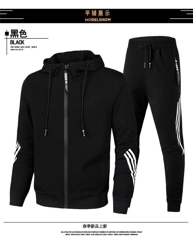봄과 가을 새로운 남성 운동복 정장 후드 한국 스타일 유행 스포츠 투피스 세트 남성 캐주얼 세 줄무늬 남성스토어 가기