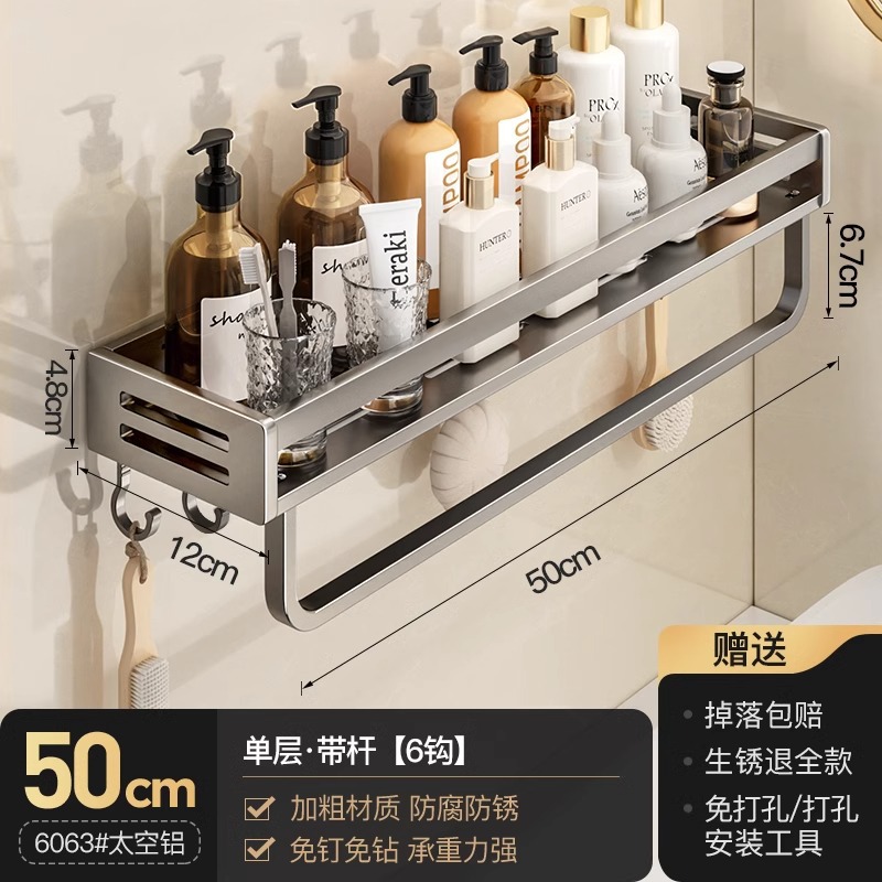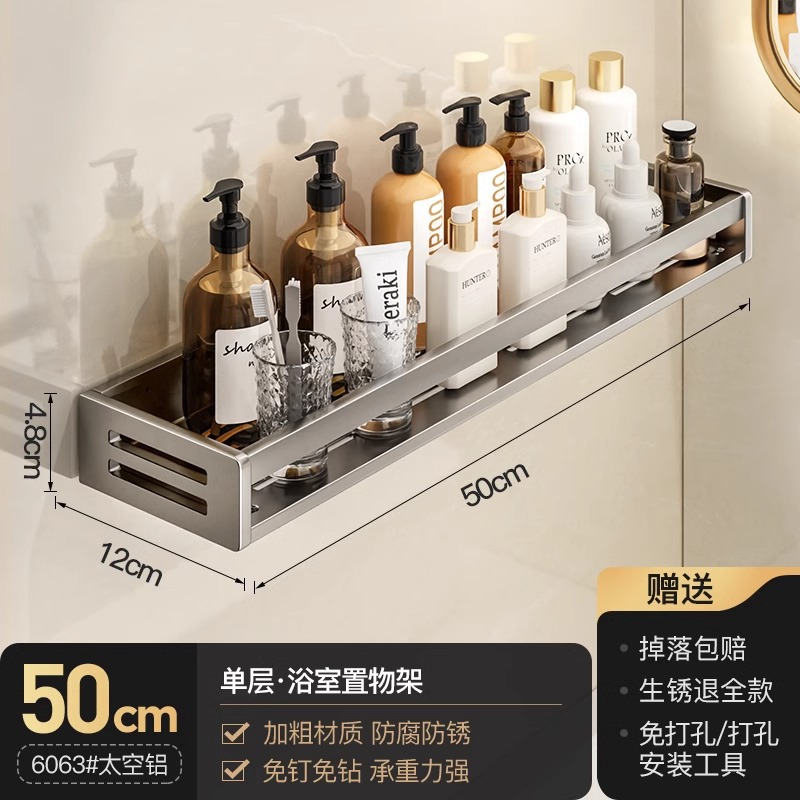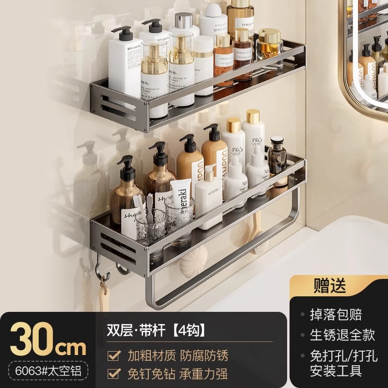 공간 알루미늄 욕실 보관 랙 다기능 욕실 구멍이없는 벽 보관 선반 수건 선반스토어 가기
