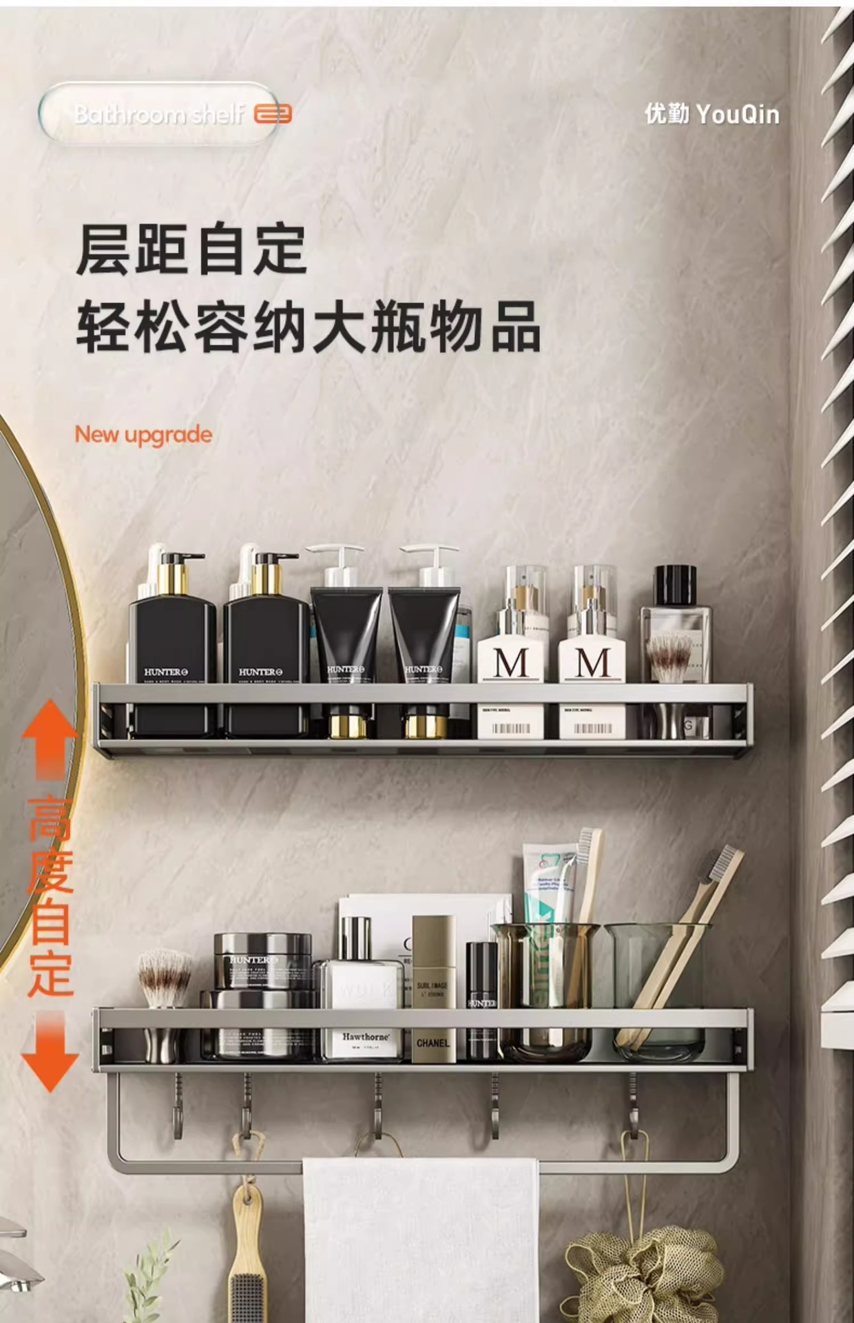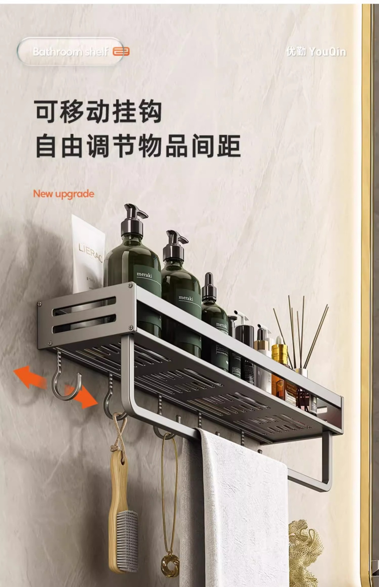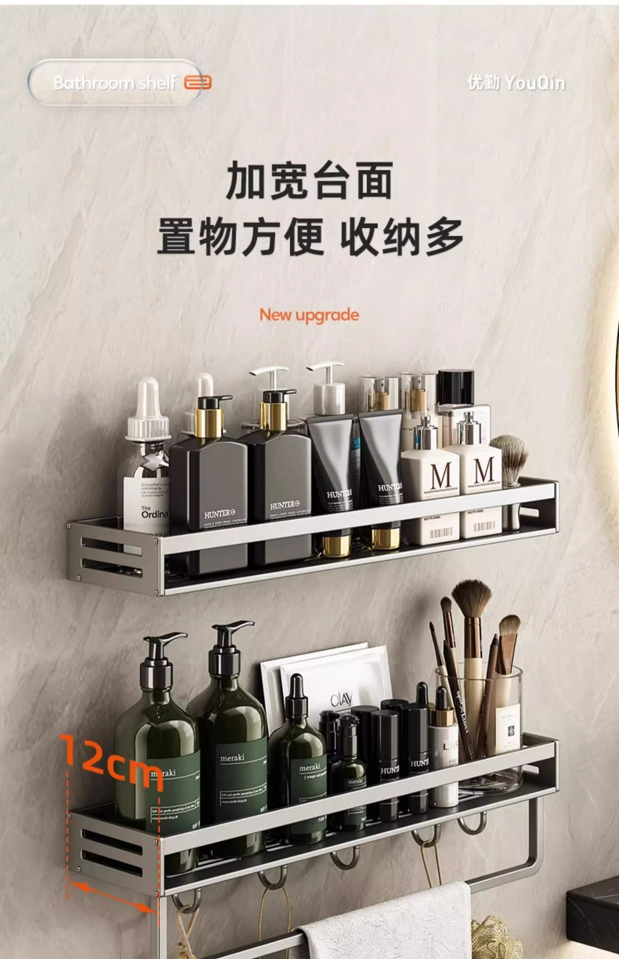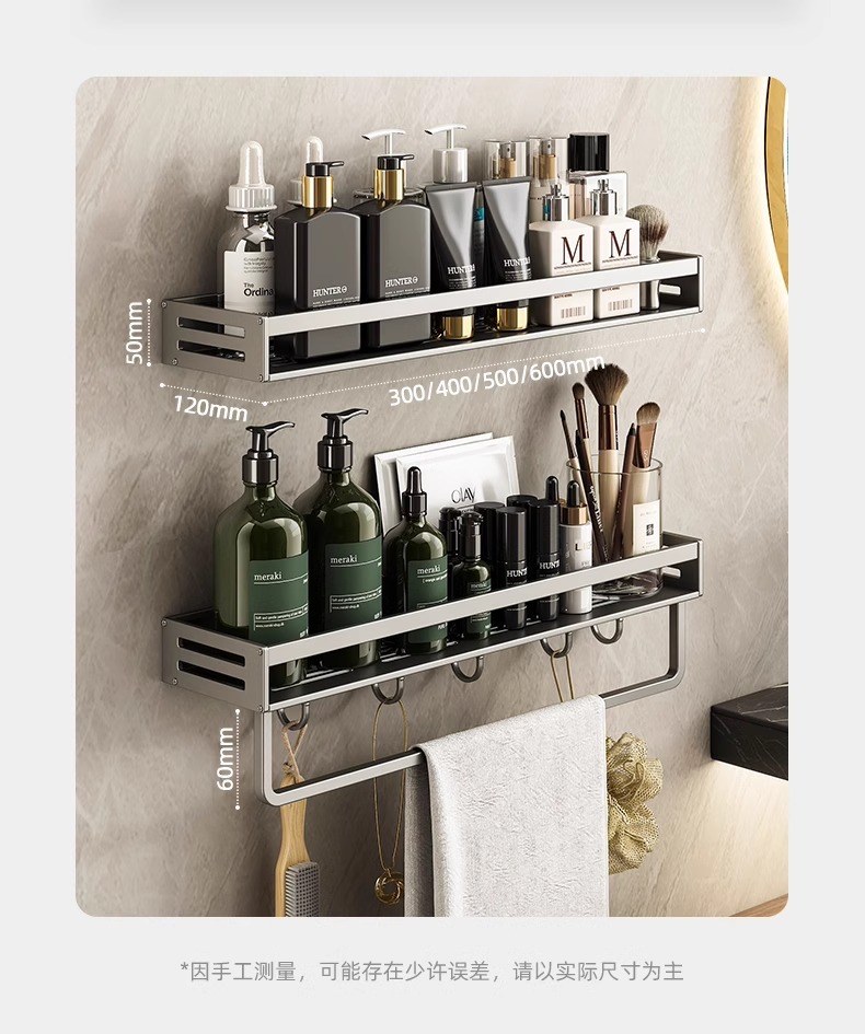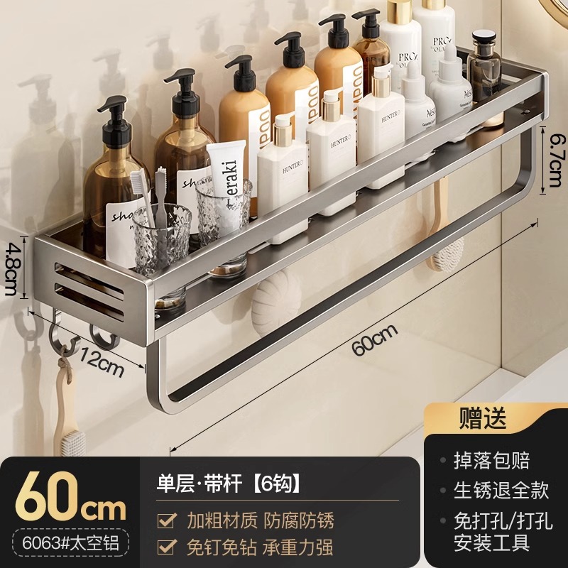 공간 알루미늄 욕실 보관 랙 다기능 욕실 구멍이없는 벽 보관 선반 수건 선반