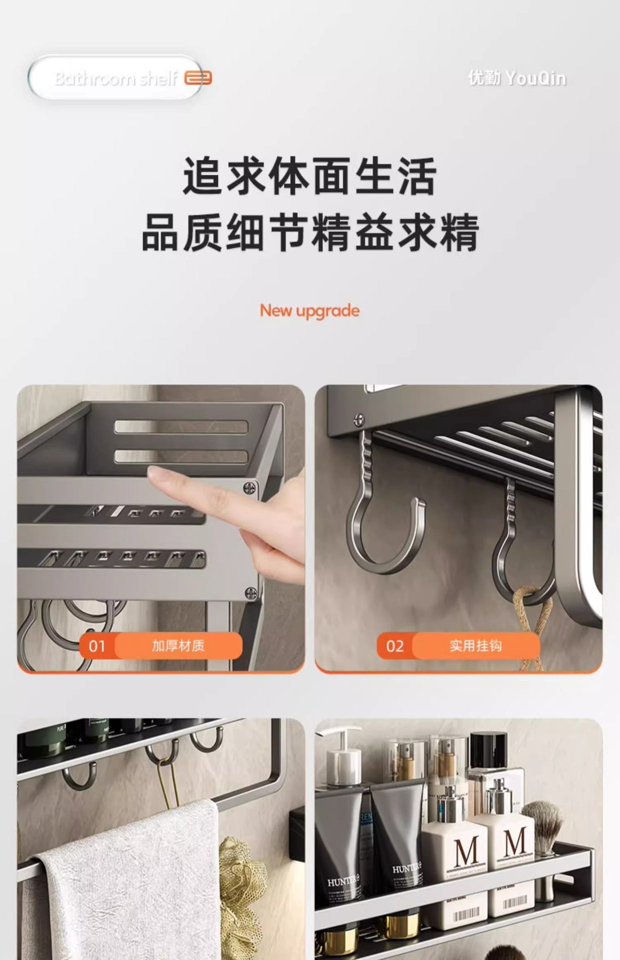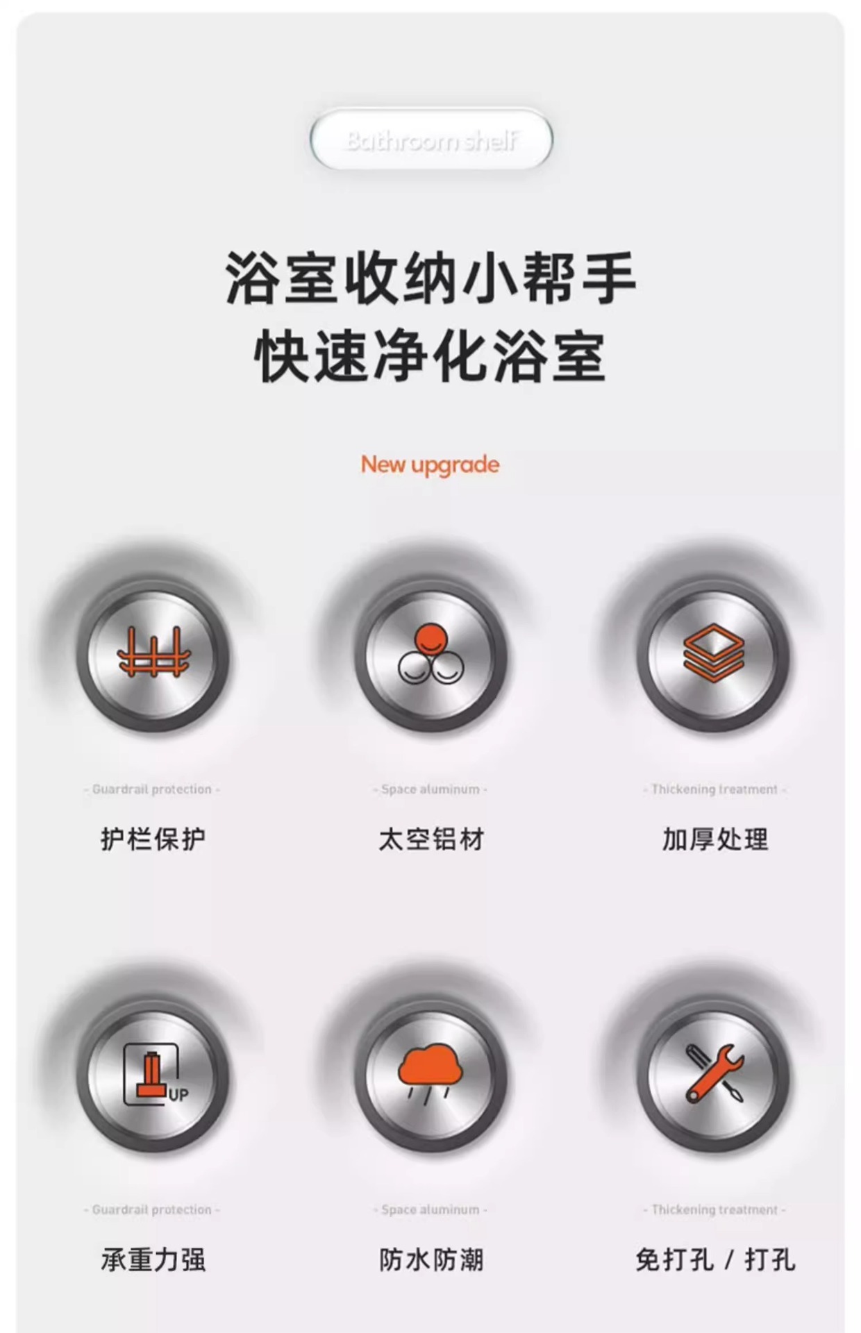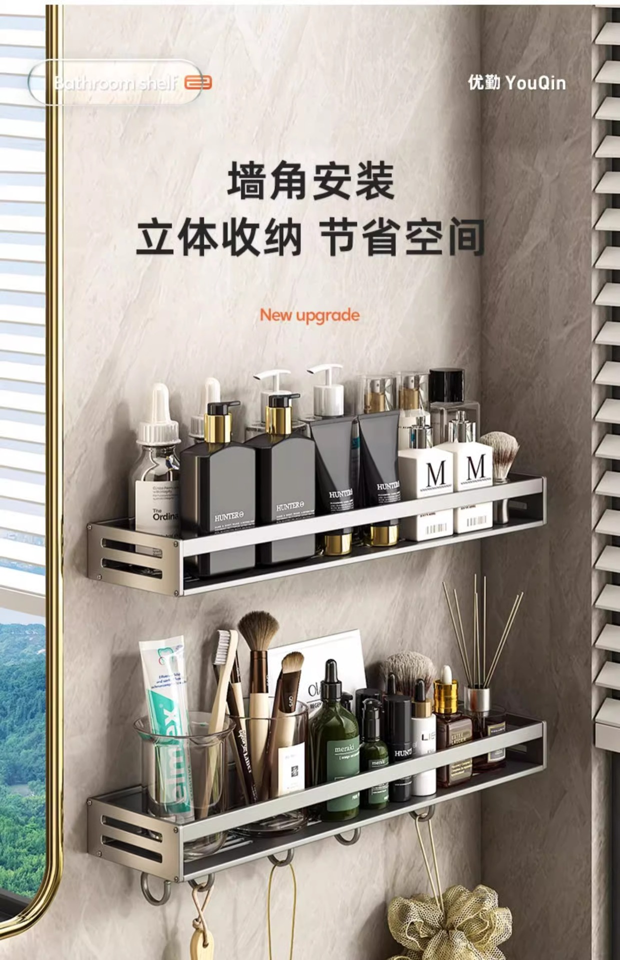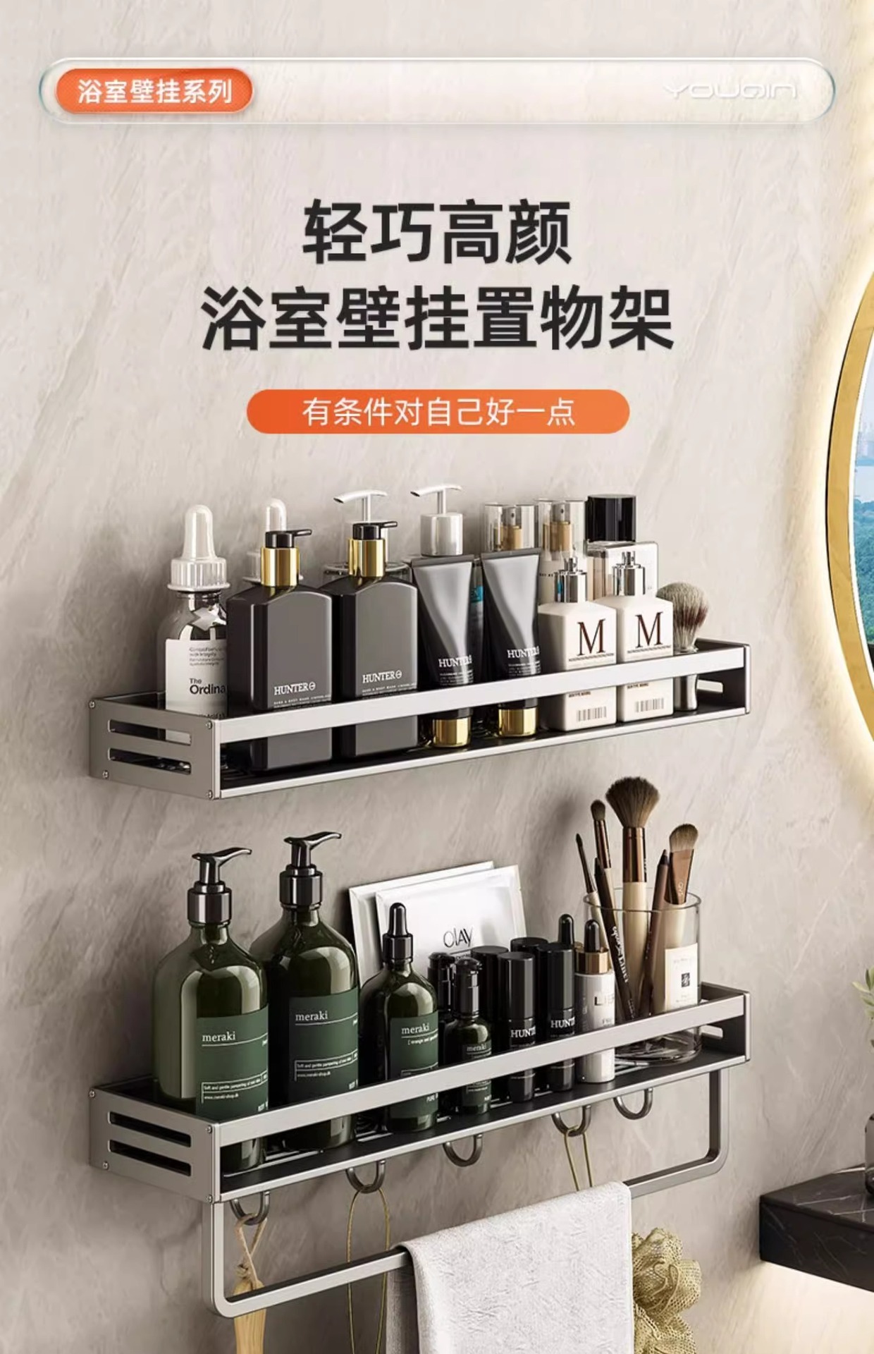 공간 알루미늄 욕실 보관 랙 다기능 욕실 구멍이없는 벽 보관 선반 수건 선반