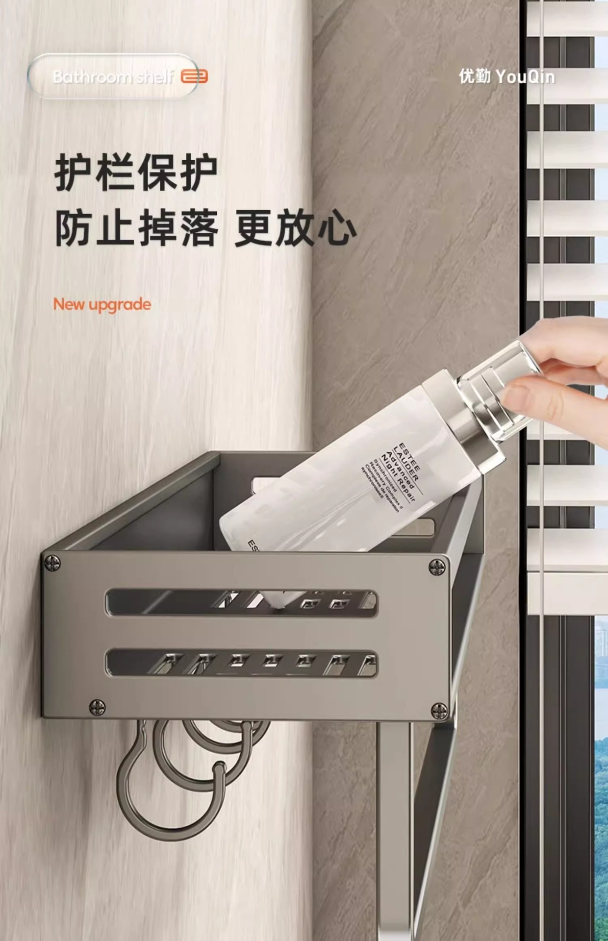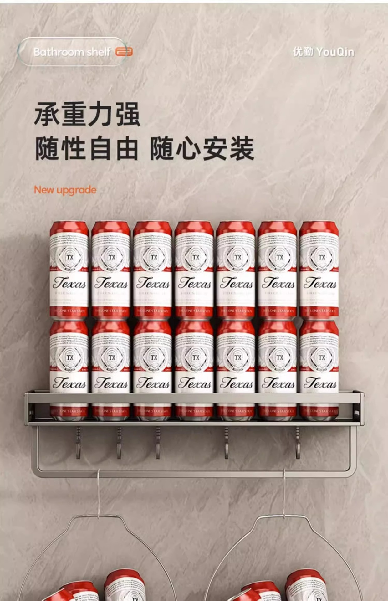 • [업그레이드된 두꺼운 후면 조항] 막대와 후크가 있는 60cm 더블 레이어