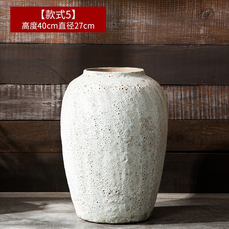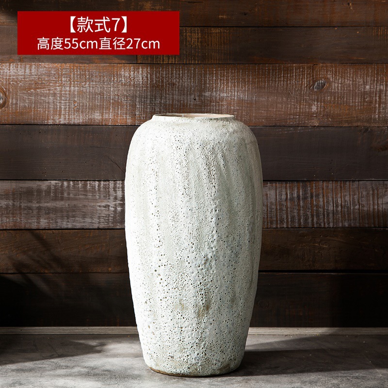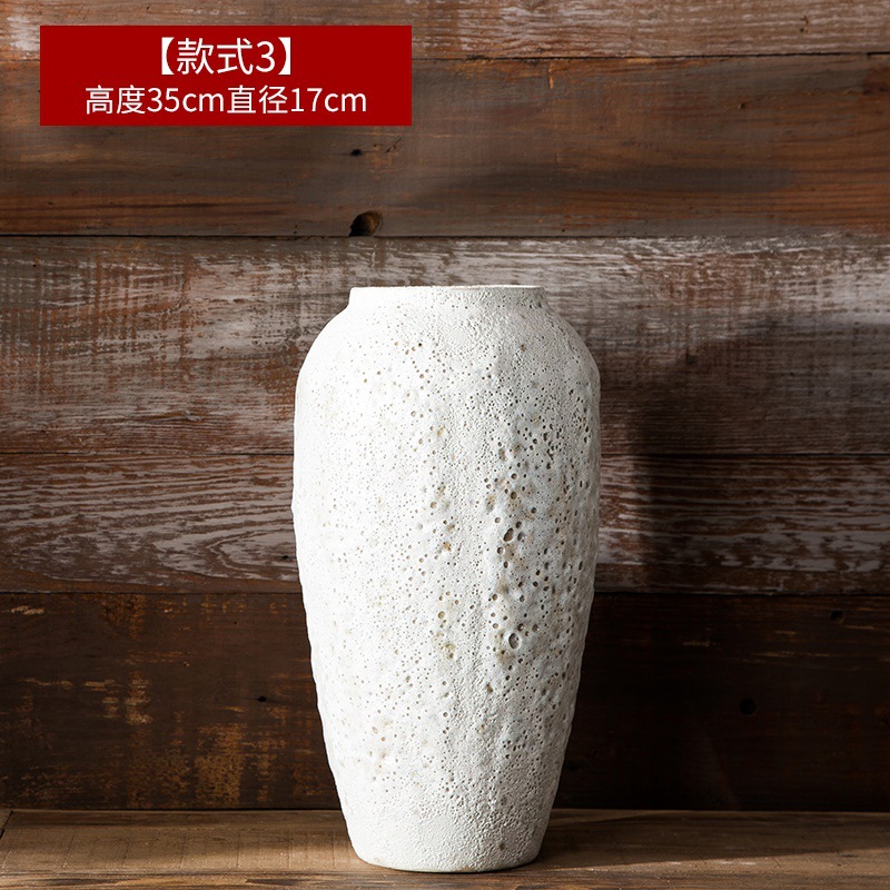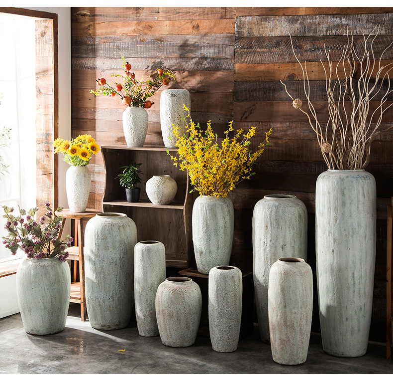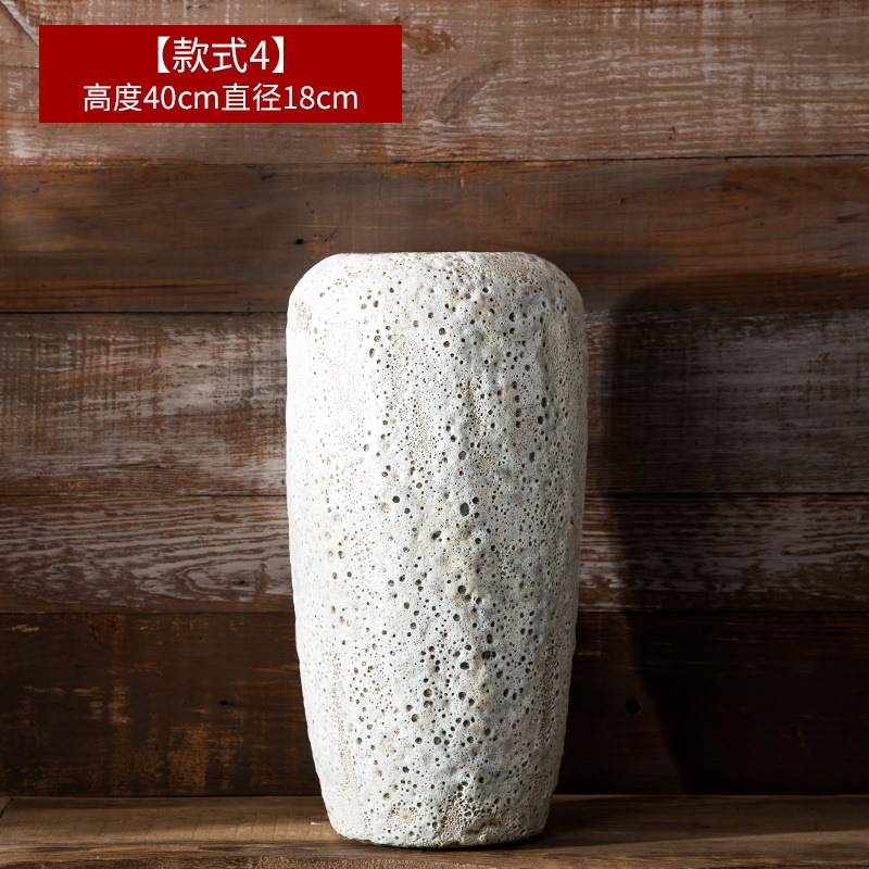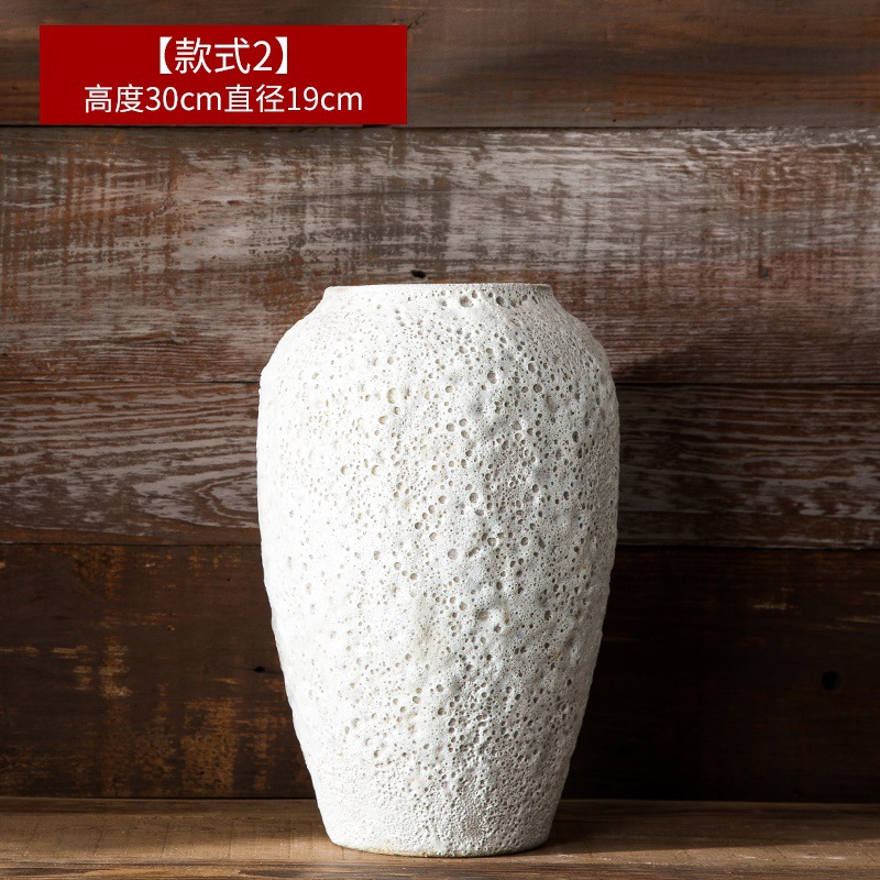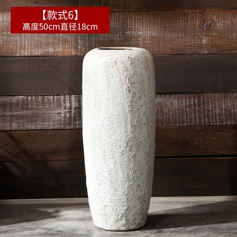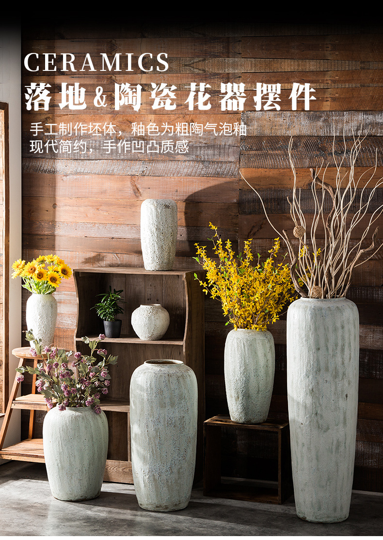 Jingdezhen 세라믹 꽃병 순수한 흰색 간단한 레트로 버블 유약 거실 호텔 바닥 장식 거친 도자기 꽃
