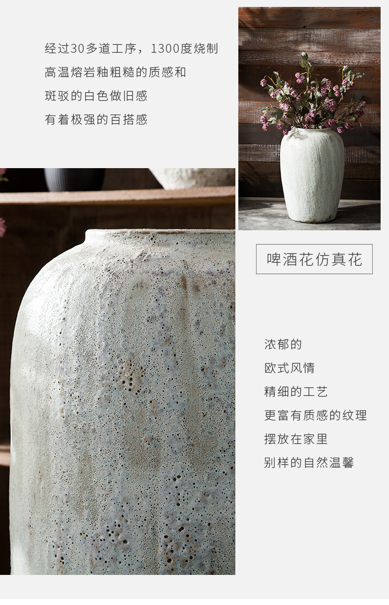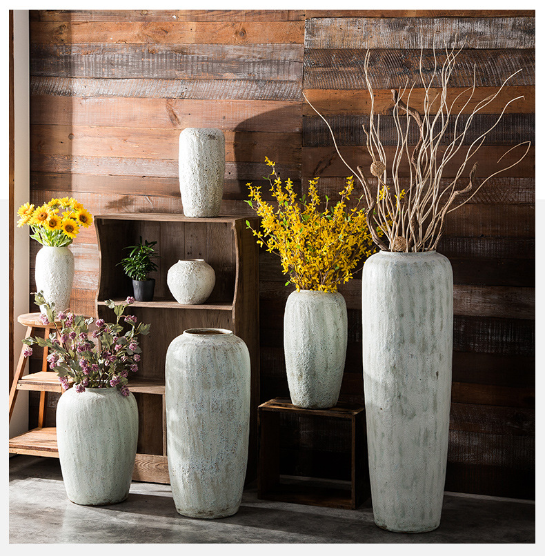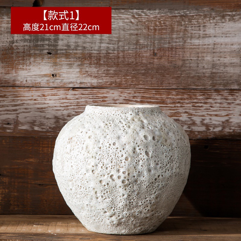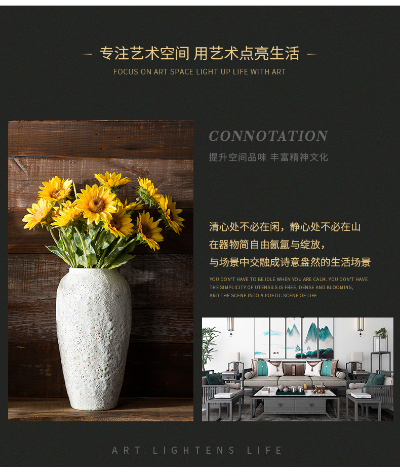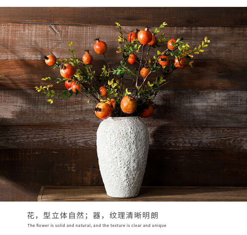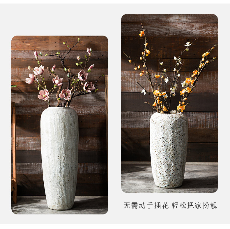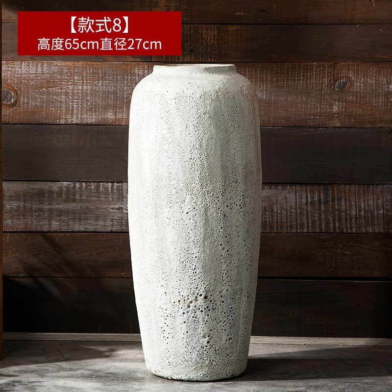 Jingdezhen 세라믹 꽃병 순수한 흰색 간단한 레트로 버블 유약 거실 호텔 바닥 장식 거친 도자기 꽃