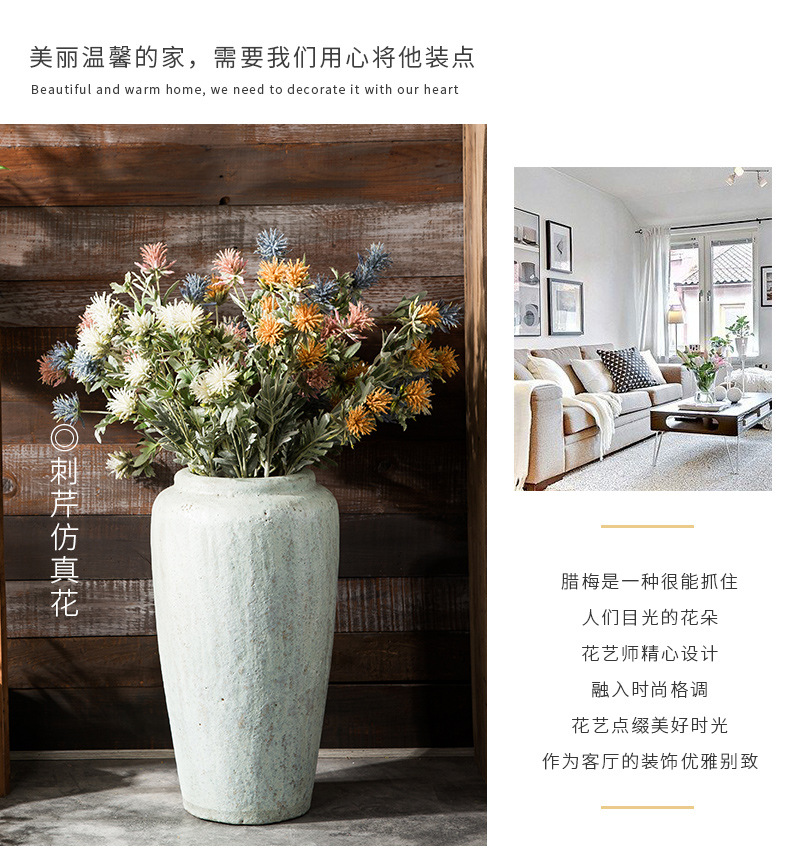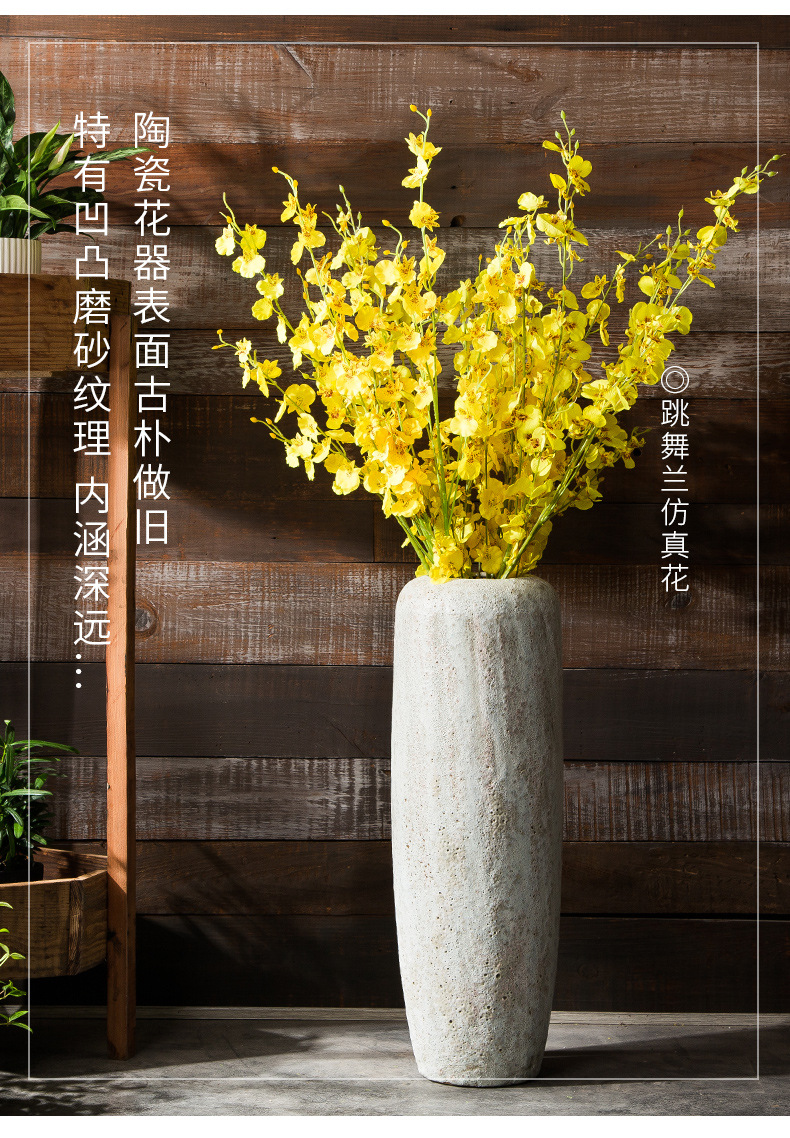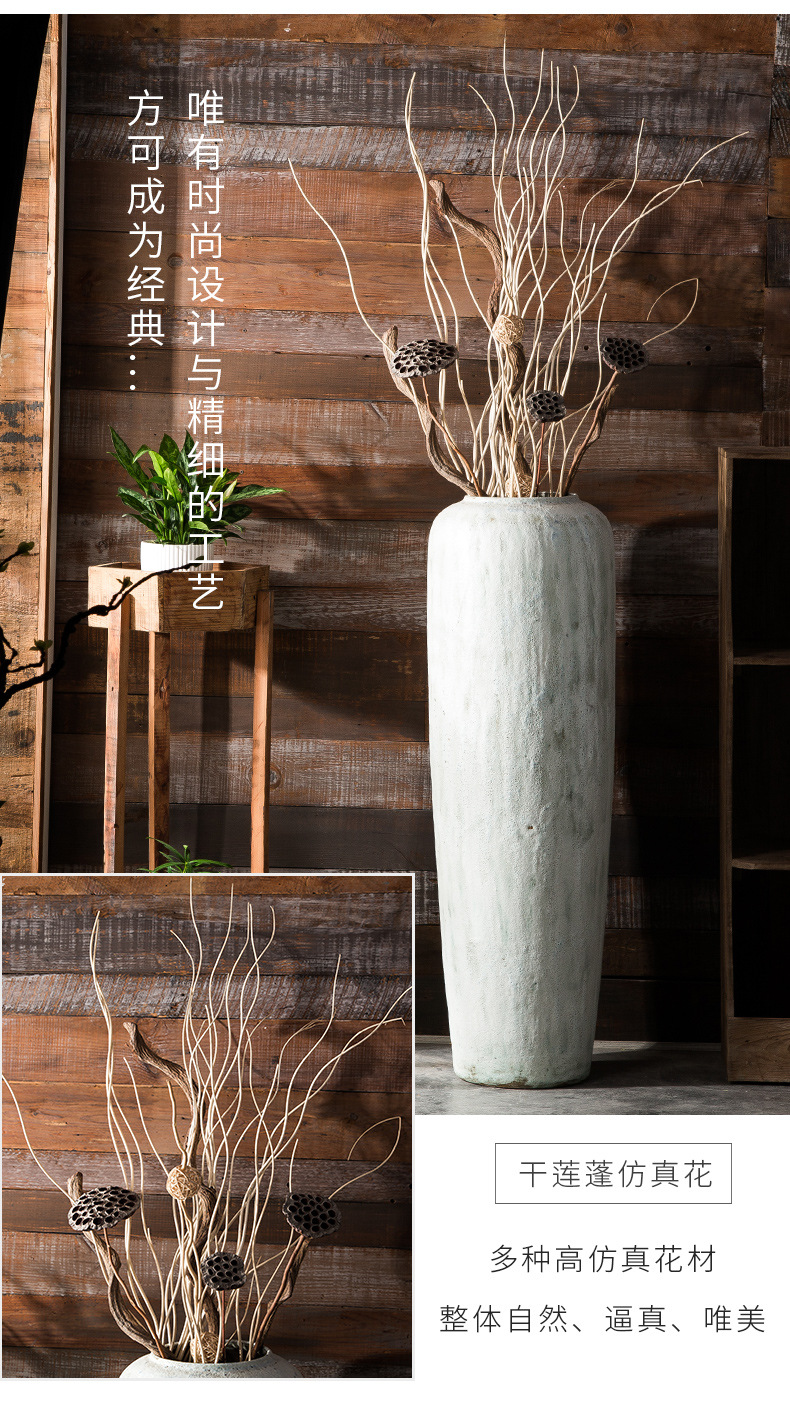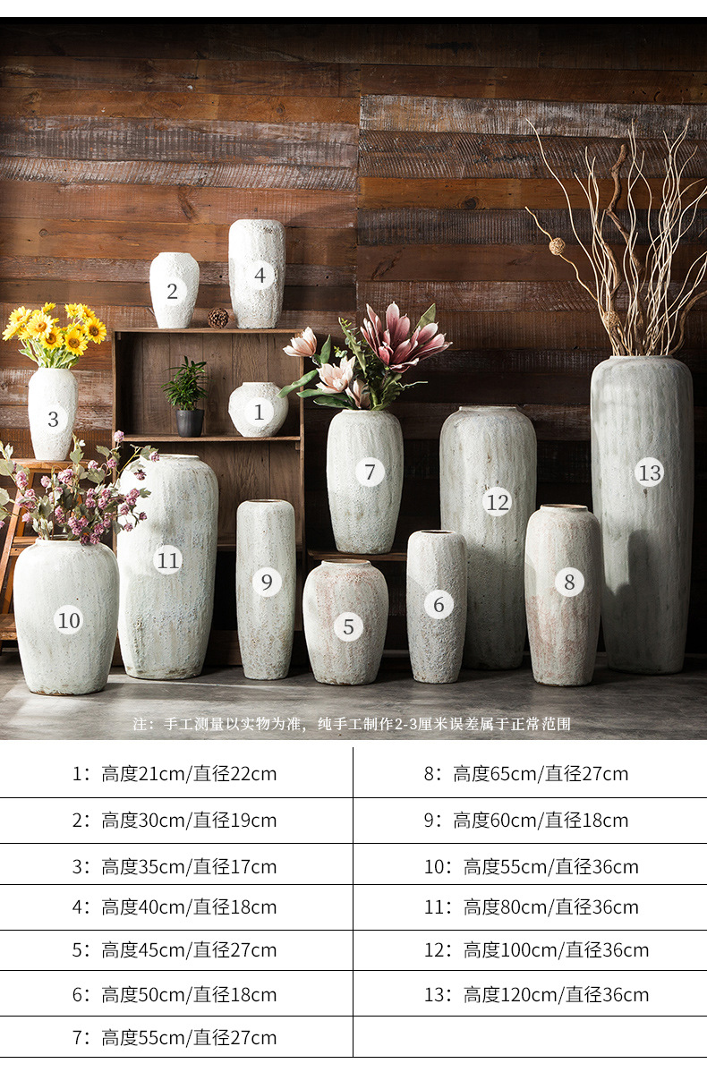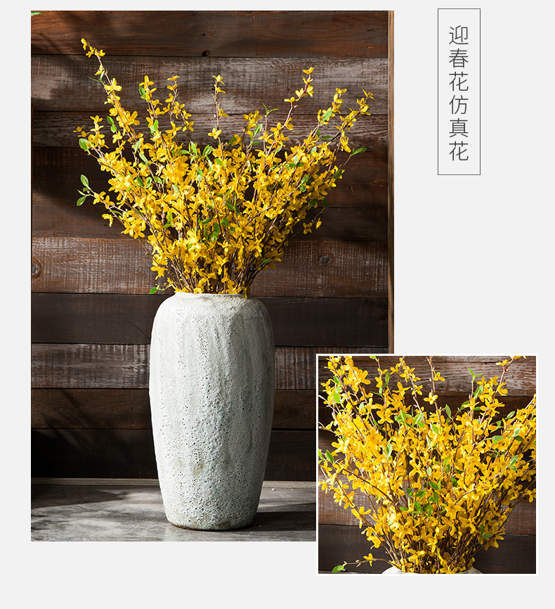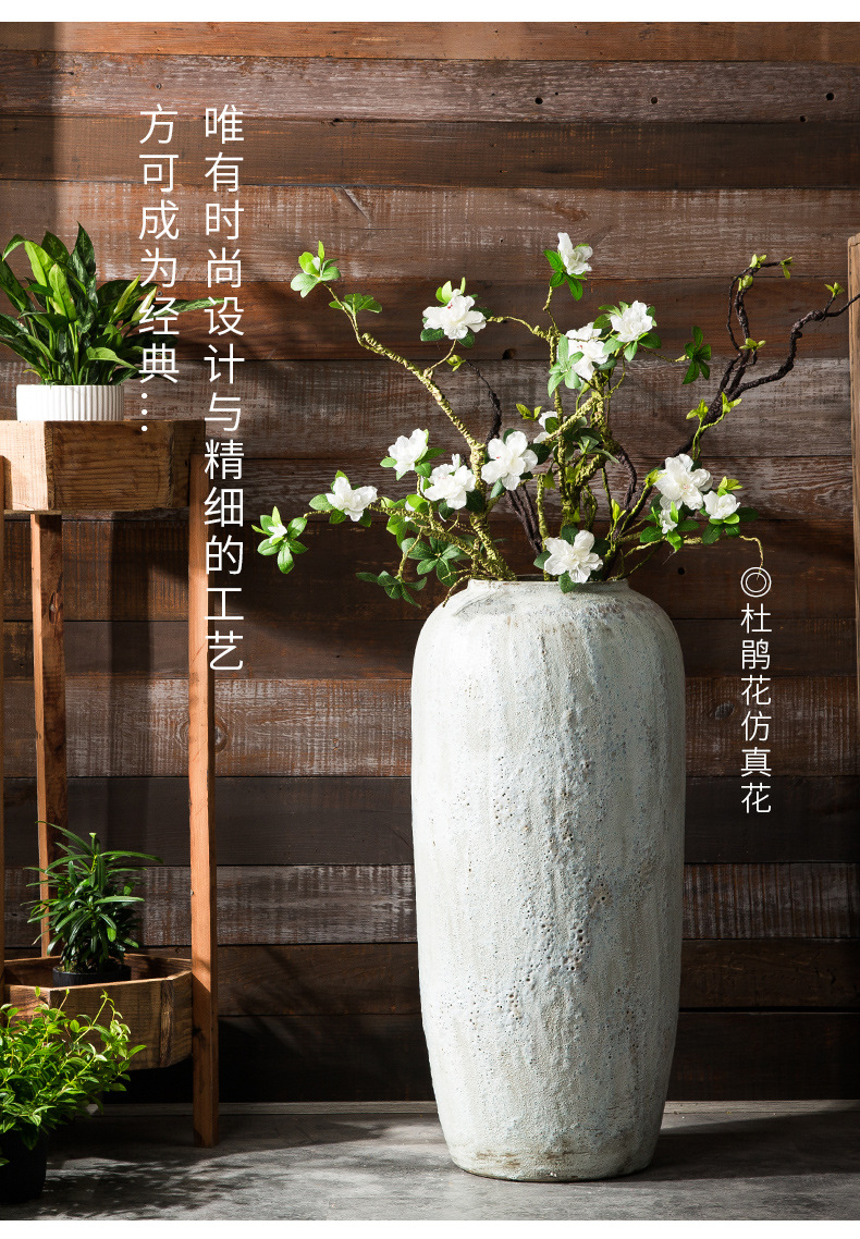 Jingdezhen 세라믹 꽃병 순수한 흰색 간단한 레트로 버블 유약 거실 호텔 바닥 장식 거친 도자기 꽃