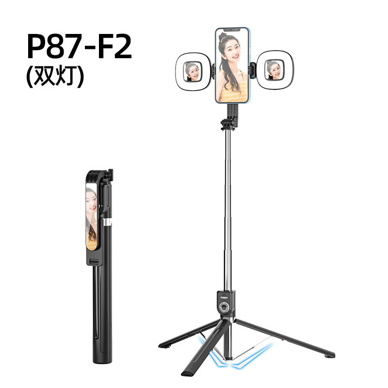 P87 거울 셀카 스틱 1.7 미터 스테인레스 스틸 셀카 스틱 블루투스 트레몰로 원격 제어 휴대 전화 라이브 삼각대