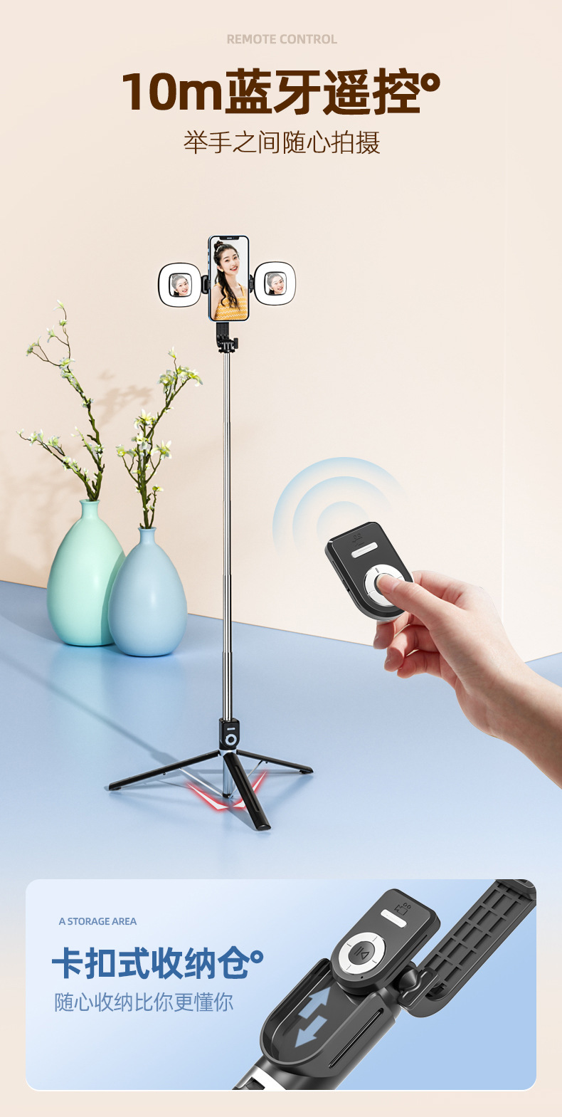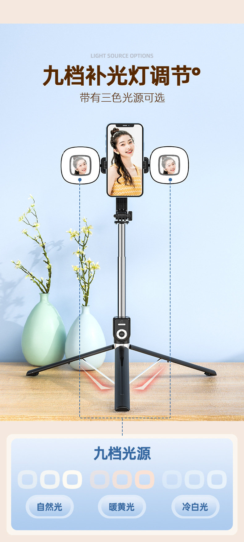 • 검정색 P87 셀카봉 + 대형 사각 조명 2개