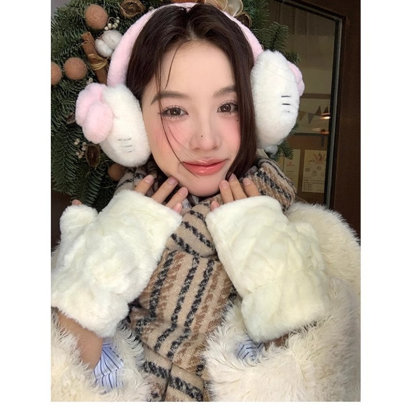만화 고양이 봉제 귀마개 여성 2024 새로운 학생 승마 기모 이어폰 귀 따뜻한 귀 가방