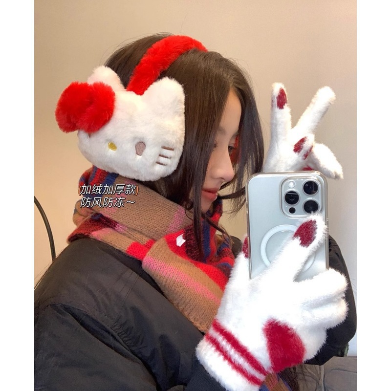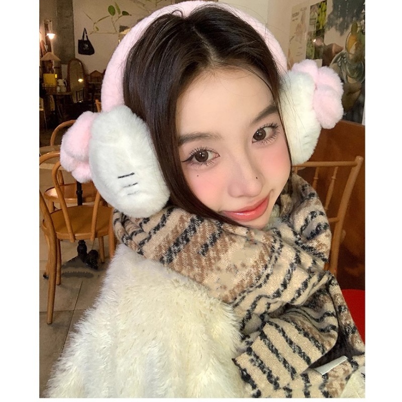 만화 고양이 봉제 귀마개 여성 2024 새로운 학생 승마 기모 이어폰 귀 따뜻한 귀 가방스토어 가기