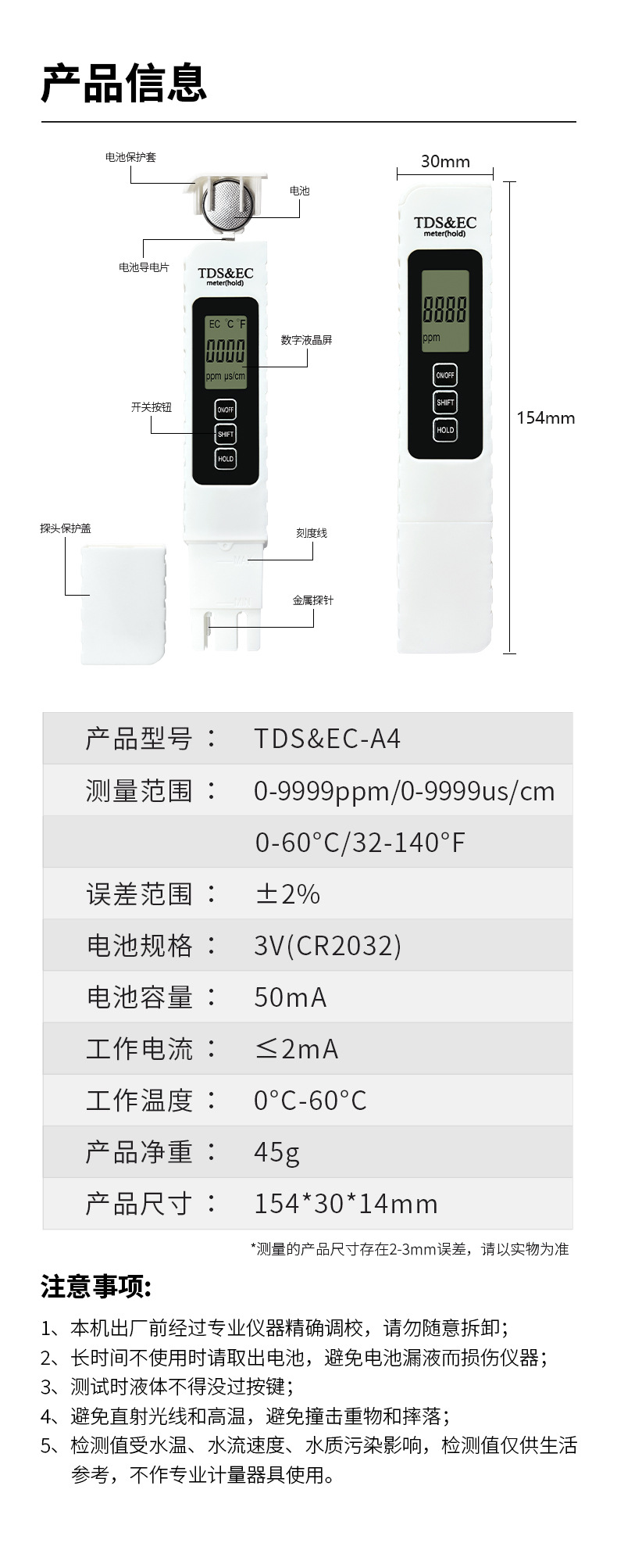 교차 경계 품질 tds 펜 ec 수질 시험 펜 재고 시험 펜 tds 시험 펜 tds 수질 시험 펜