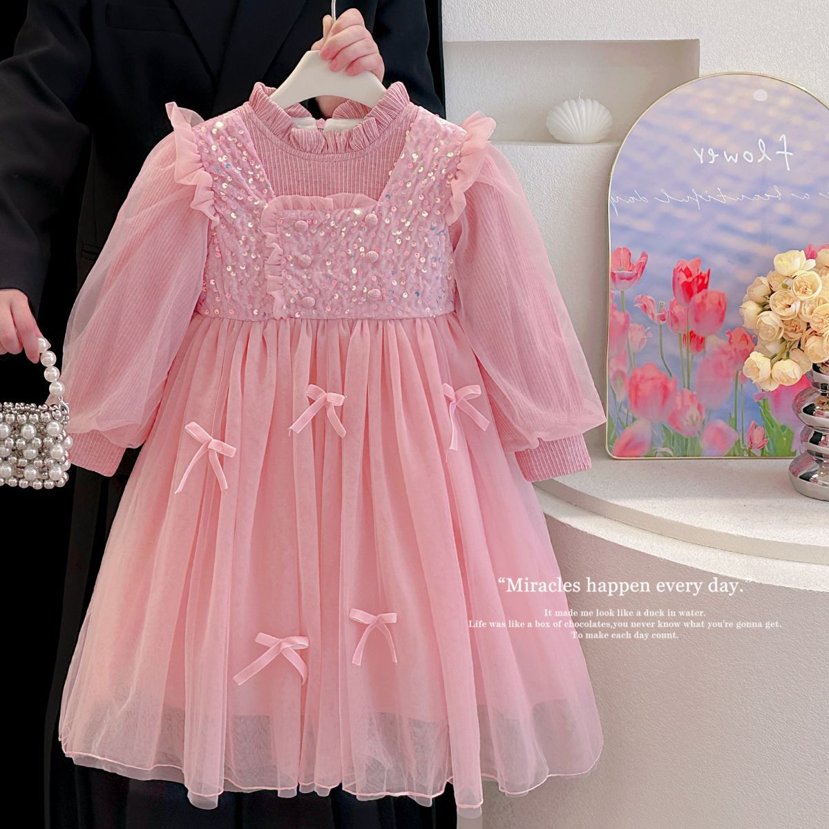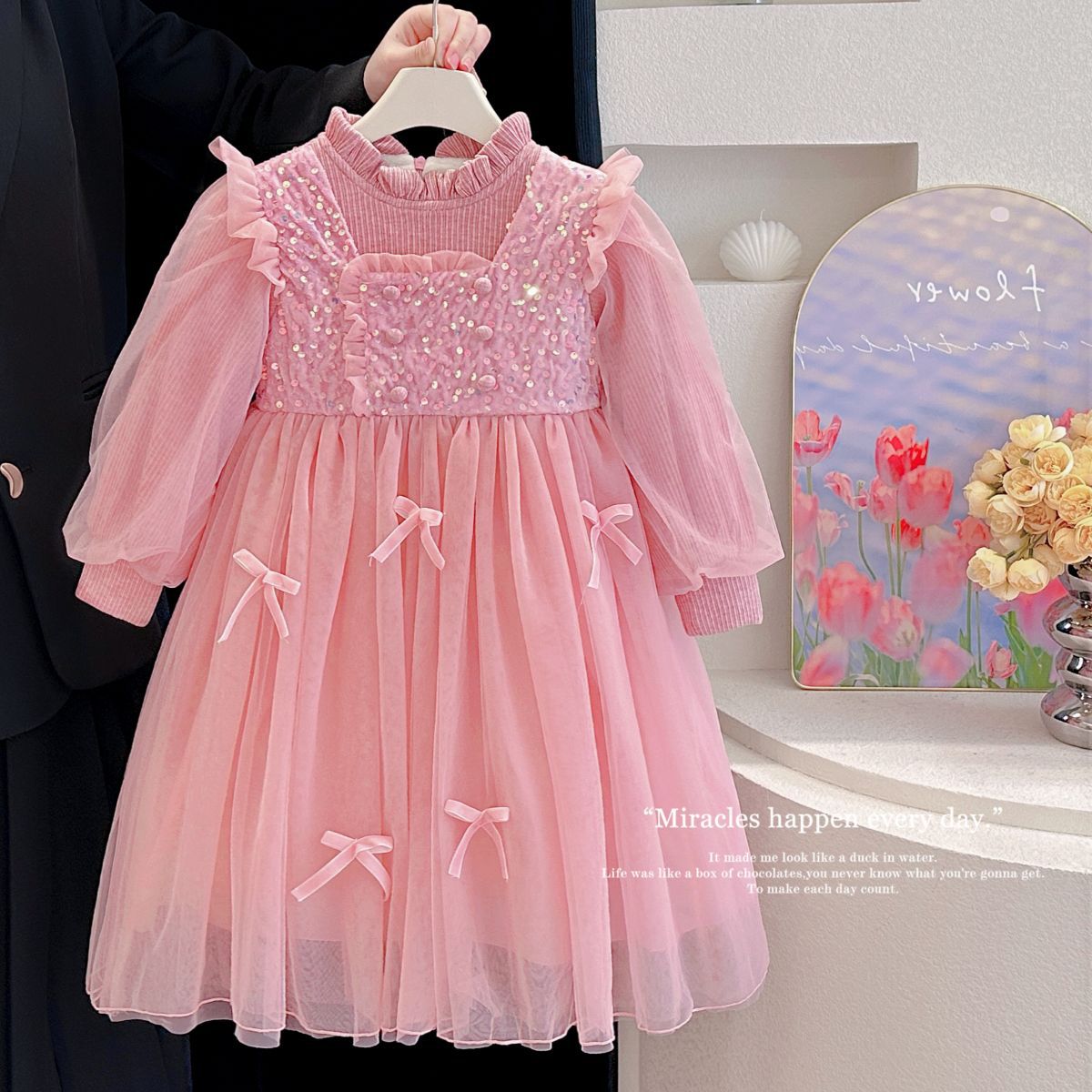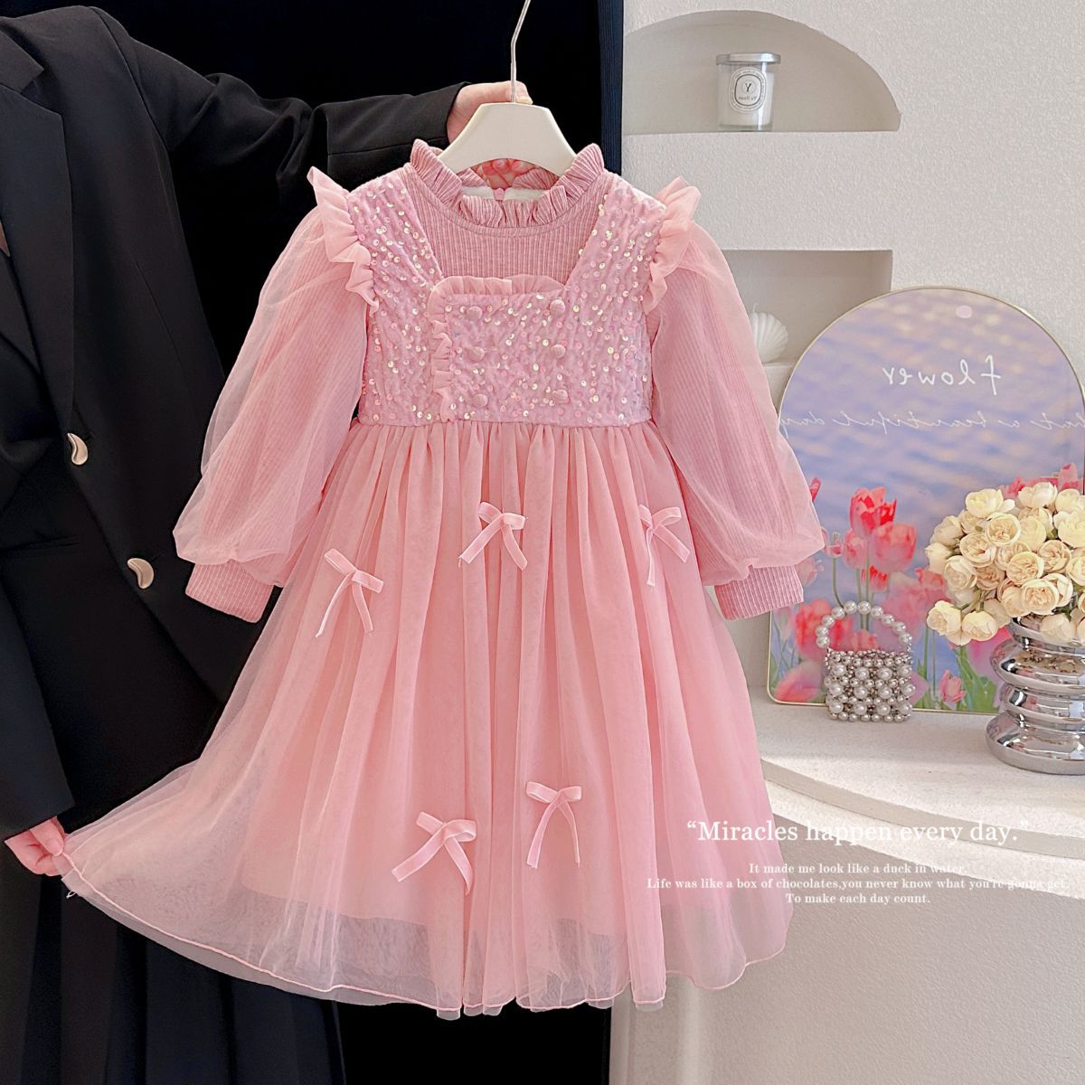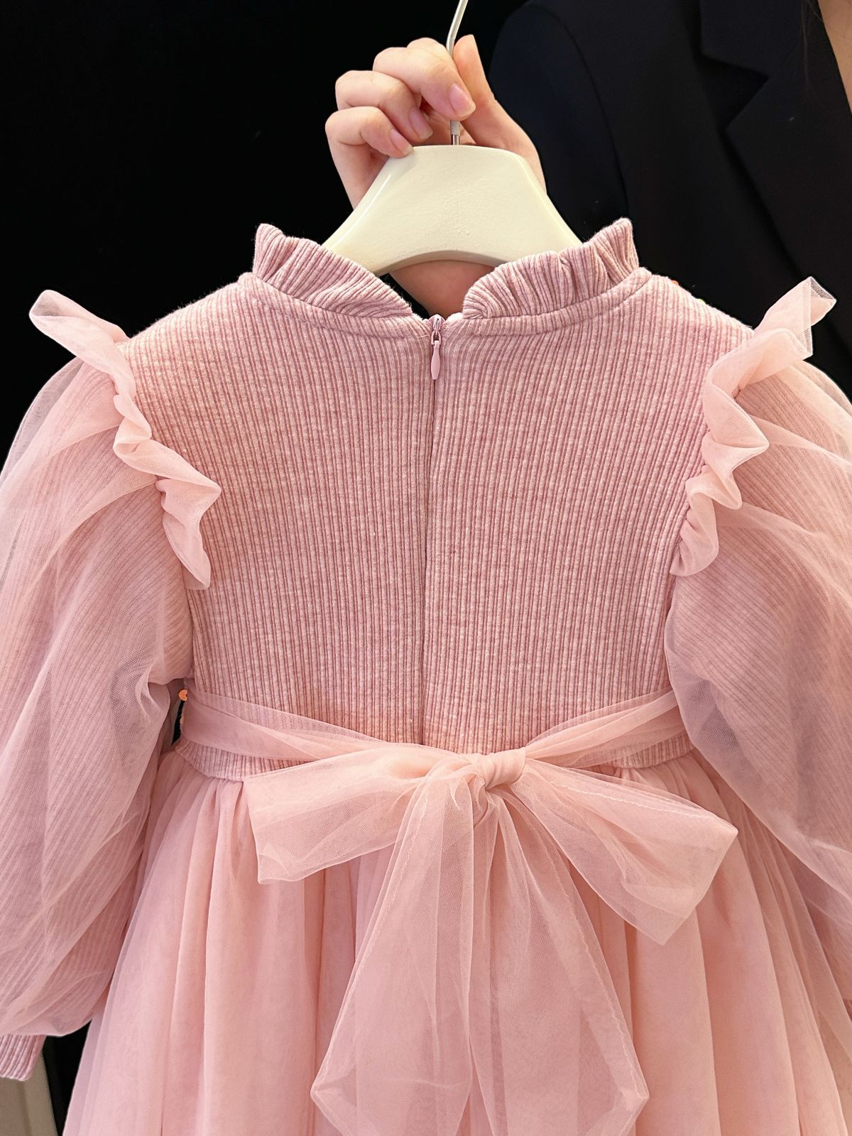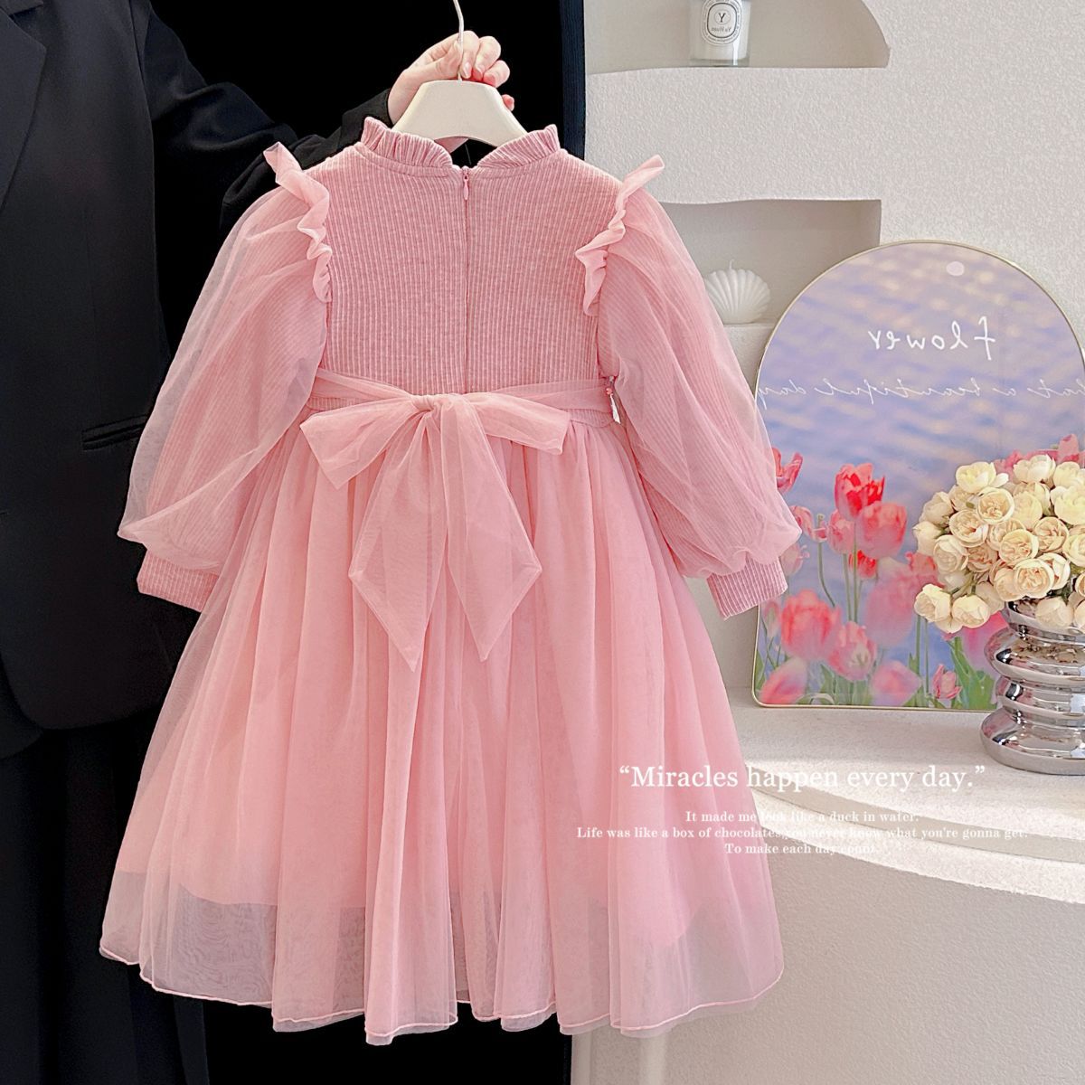 여자 기모 원피스 겨울 2024 새로운 중소 어린이 소매 패딩 메쉬 스커트 아기 소녀 공주 스커트스토어 가기