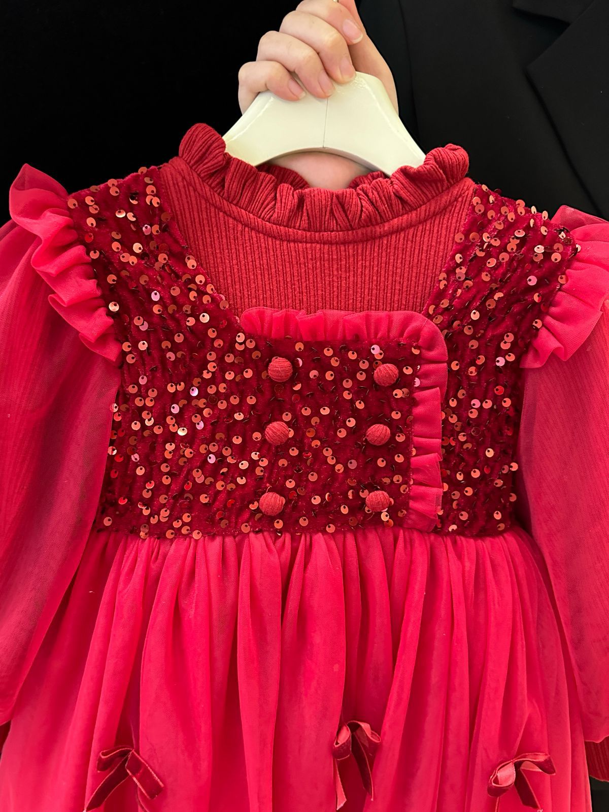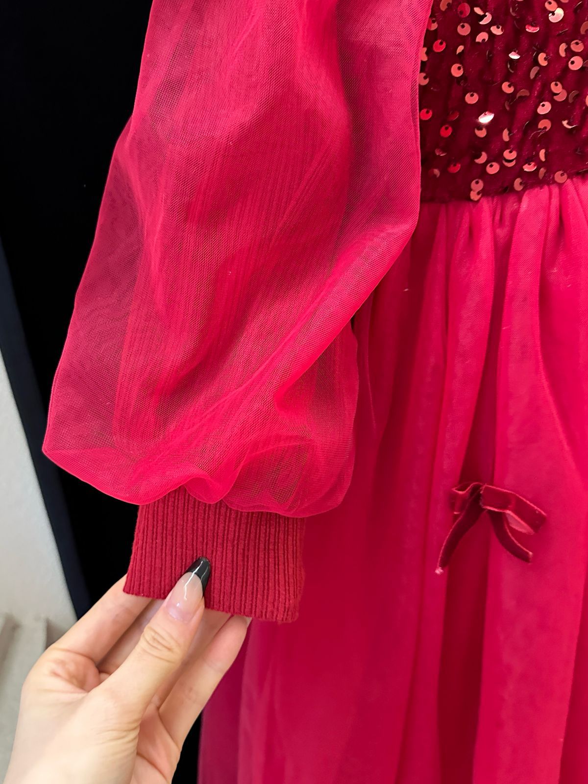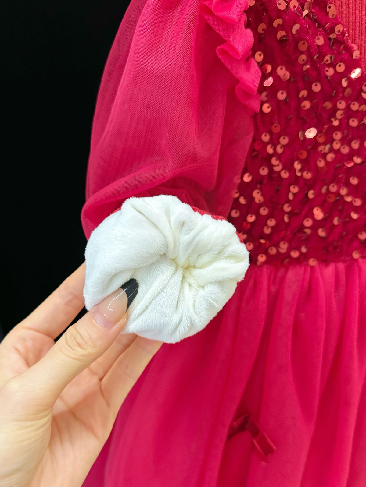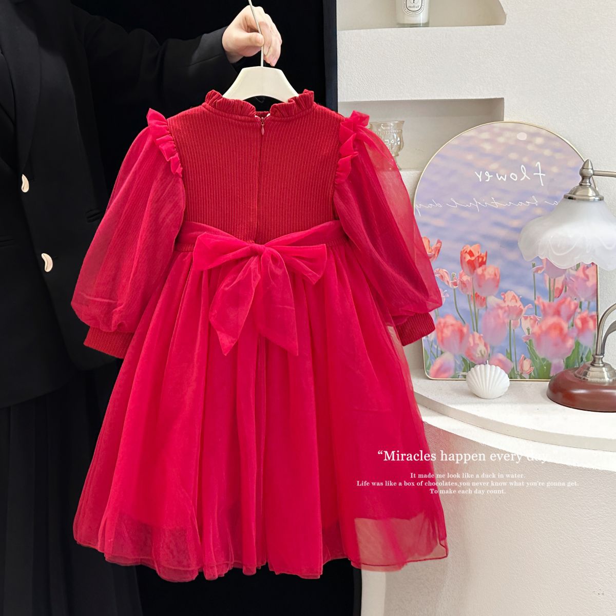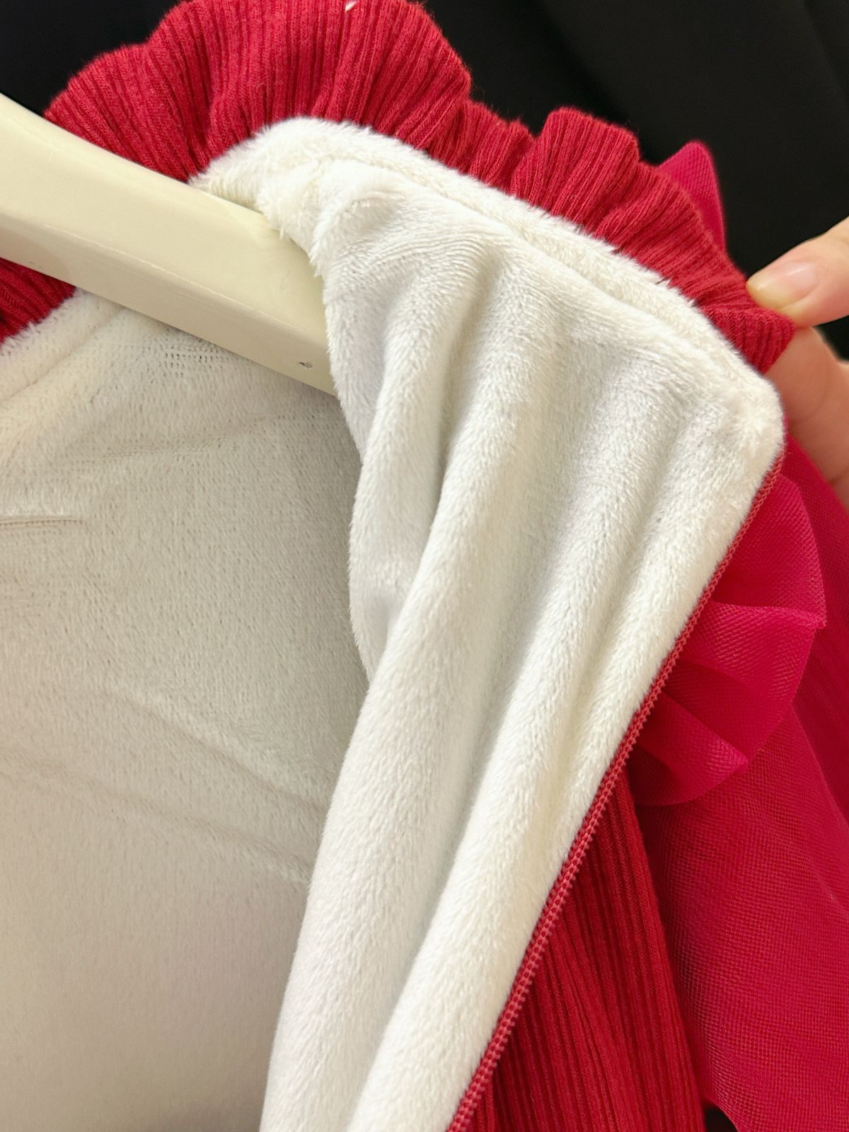 여자 기모 원피스 겨울 2024 새로운 중소 어린이 소매 패딩 메쉬 스커트 아기 소녀 공주 스커트스토어 가기
