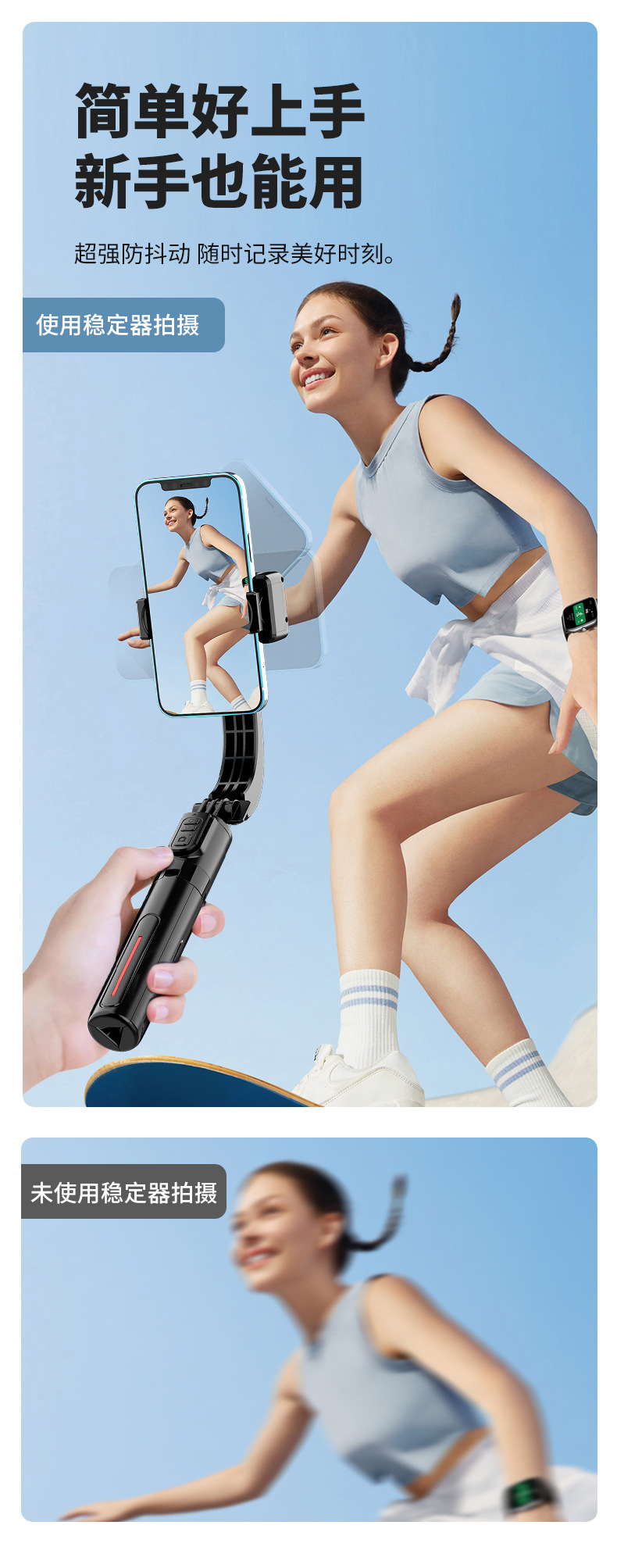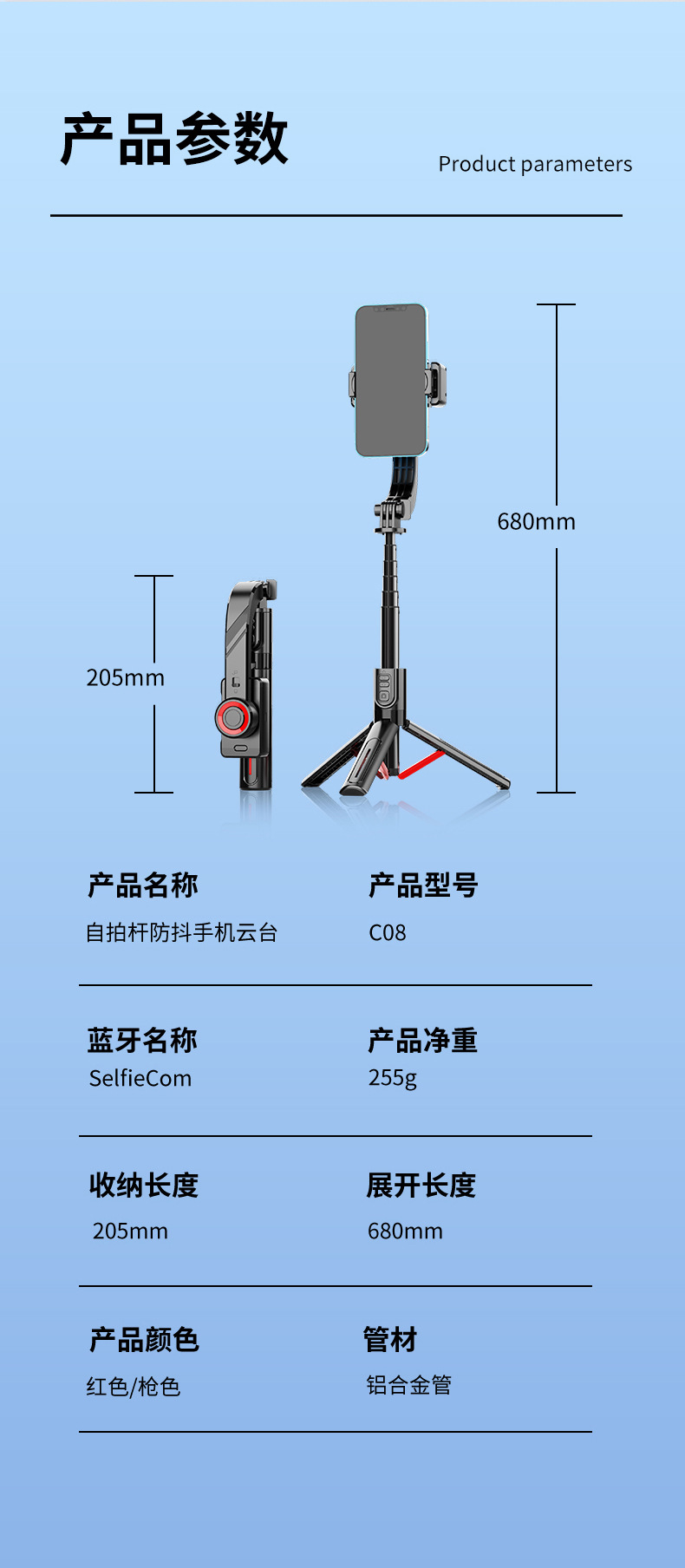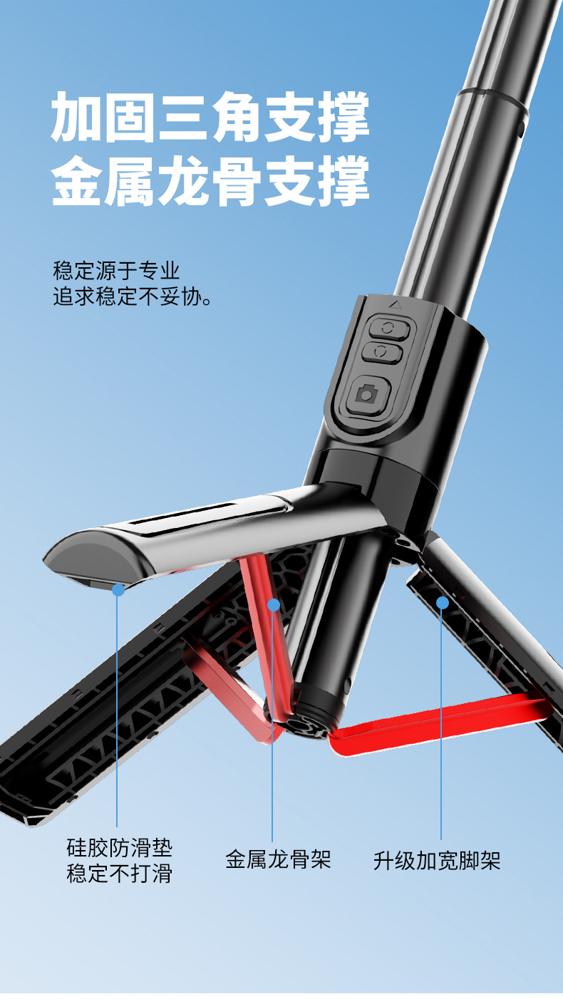 핸드 헬드 짐벌 안정제 안티 쉐이크 카메라 아티팩트 텔레스코픽 로드 핸드 헬드 통합 삼각대 휴대 전화 블루투스 셀카 스틱