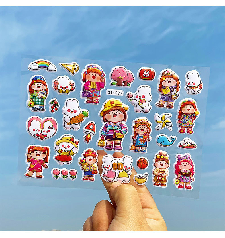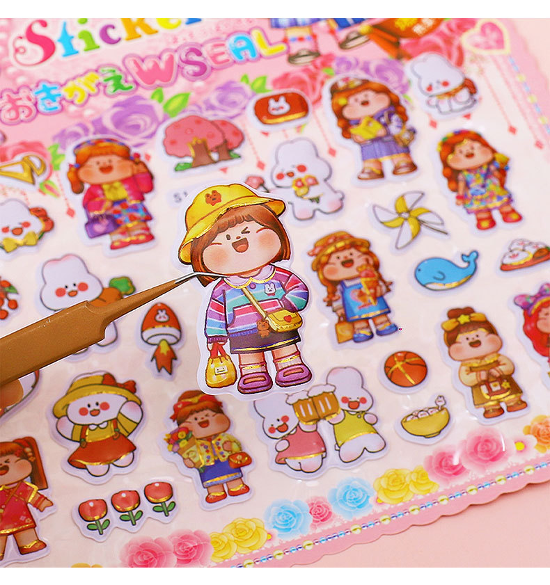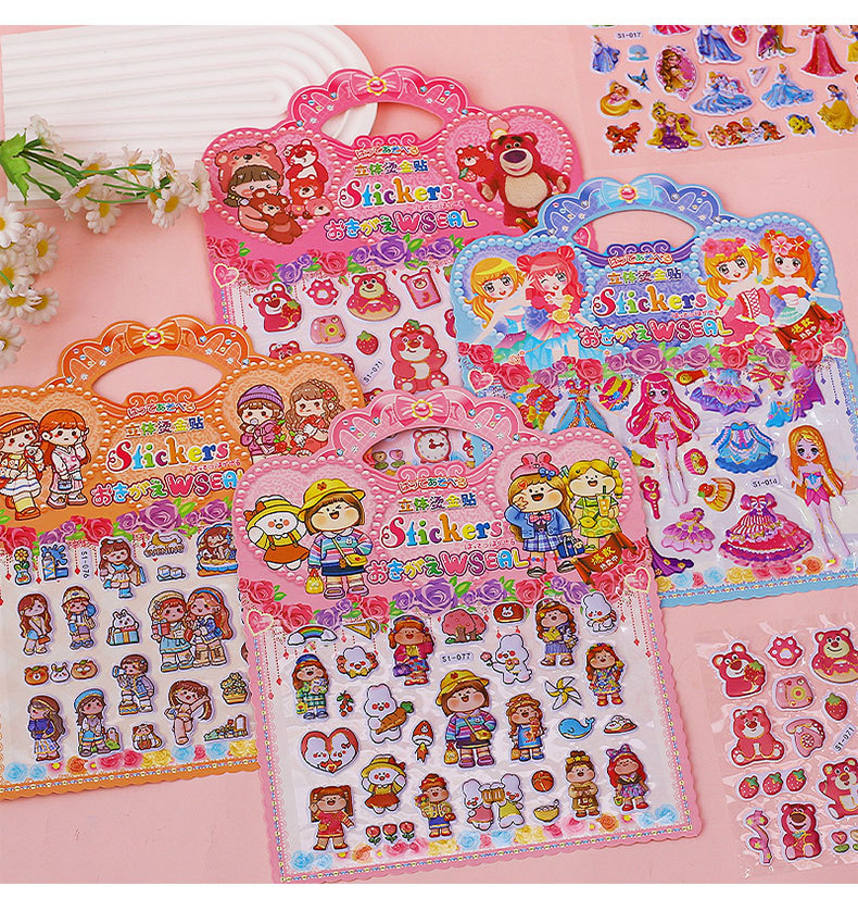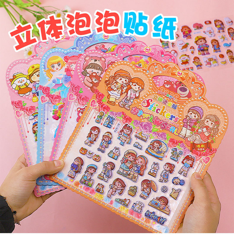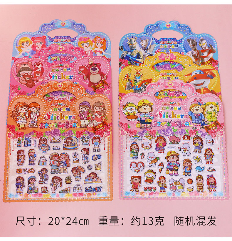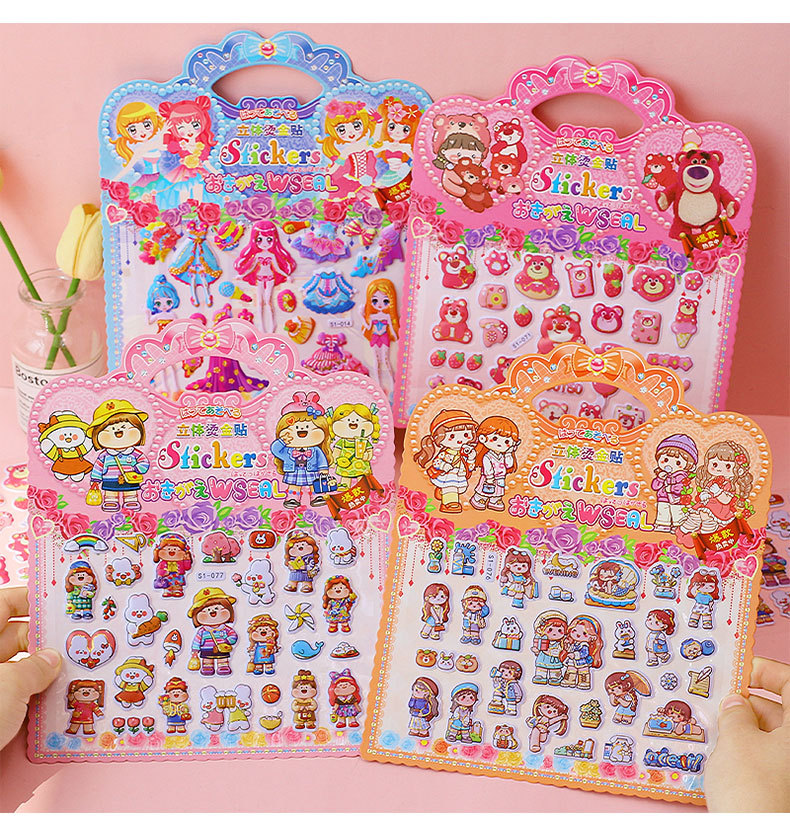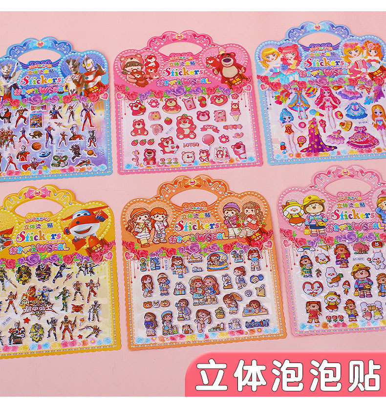 어린이 스티커 셀프 접착 만화 공주 원피스 업 스티커 골드 스탬핑 3D 보상 버블 스티커 어린이 휴일 선물스토어 가기