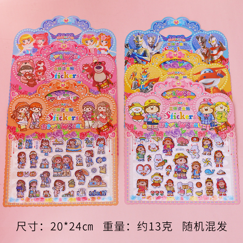 어린이 스티커 셀프 접착 만화 공주 원피스 업 스티커 골드 스탬핑 3D 보상 버블 스티커 어린이 휴일 선물