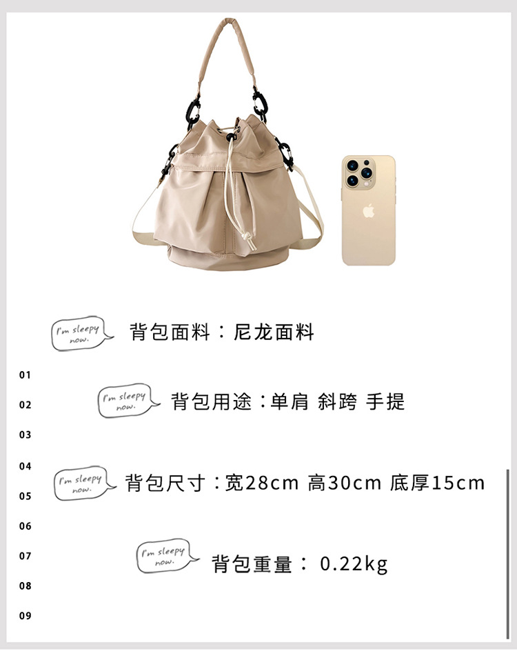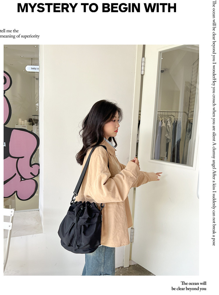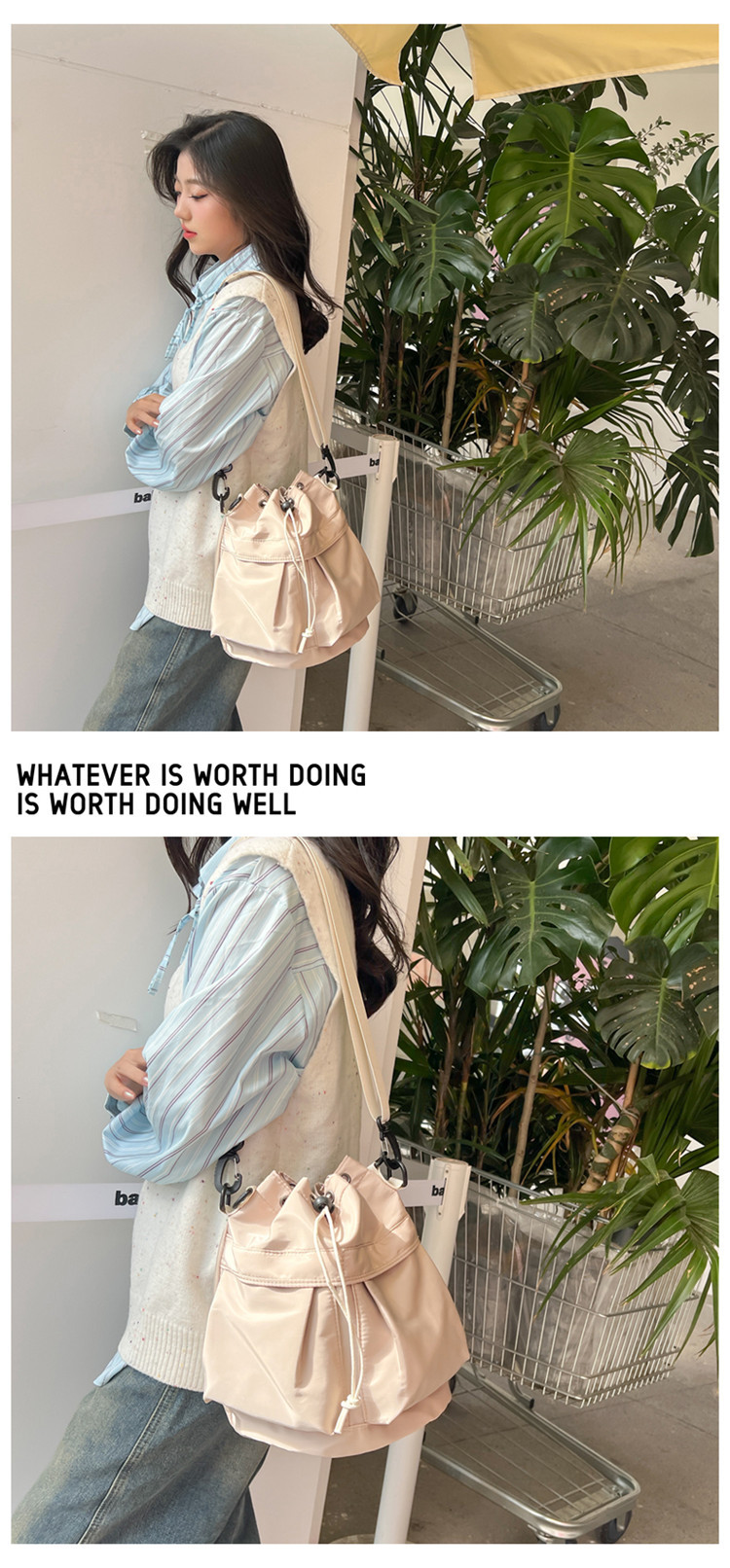 드로스트링 버킷백, 고급 숄더백, 가벼운 나일론 핸드백, 소형 토트백, 트렌디한 크로스보더 다용도 크로스백스토어 가기
