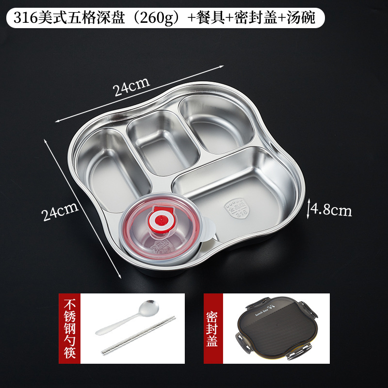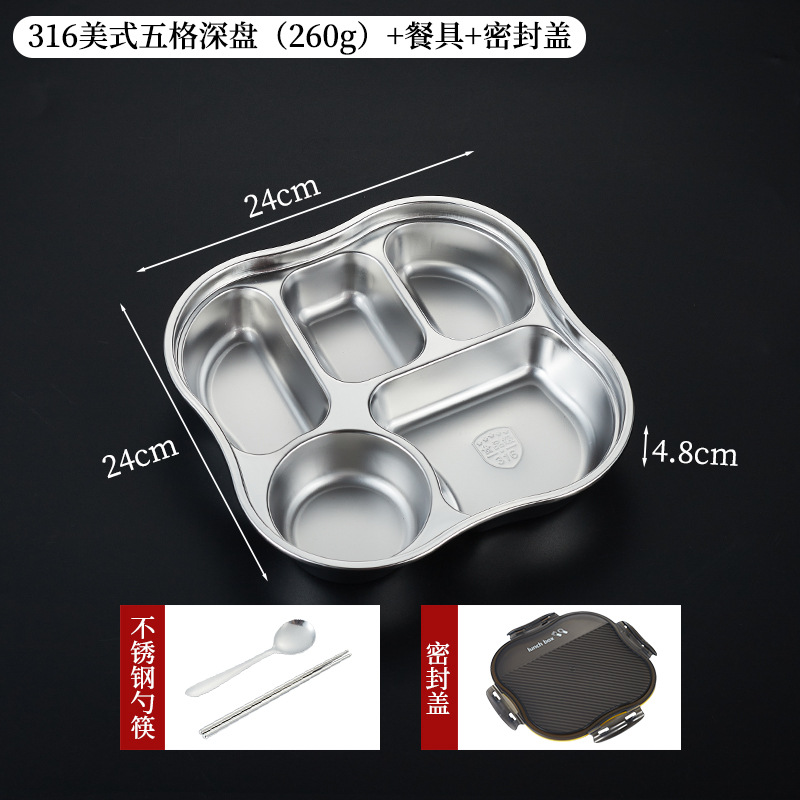 • 316 아메리칸 5칸 깊이 4.8cm [밀폐뚜껑+밀폐그릇 포함]