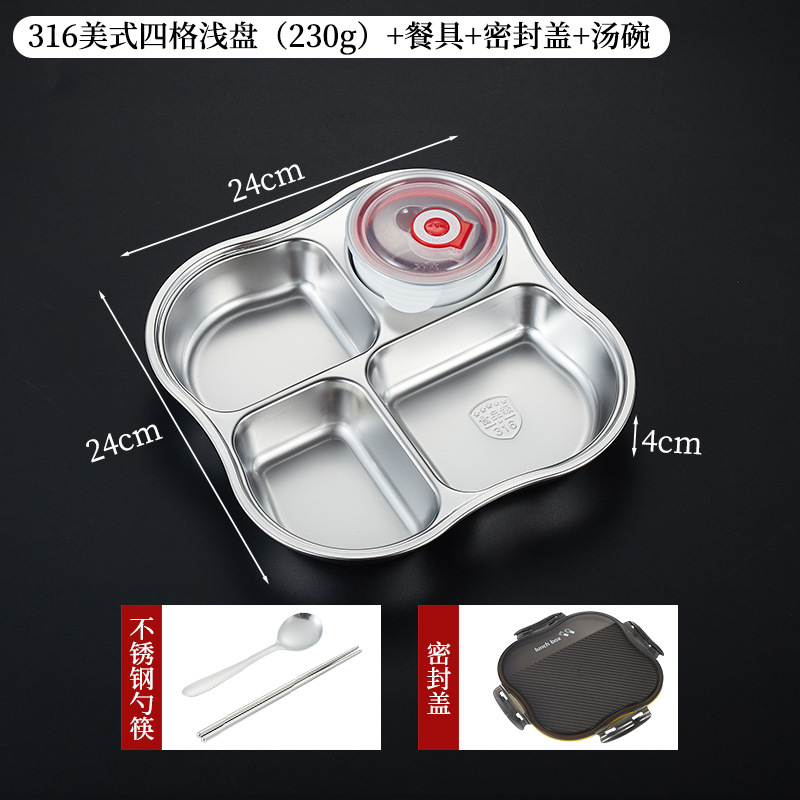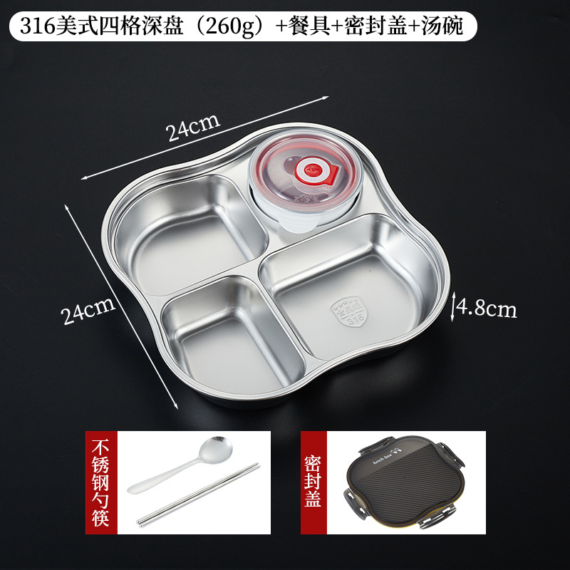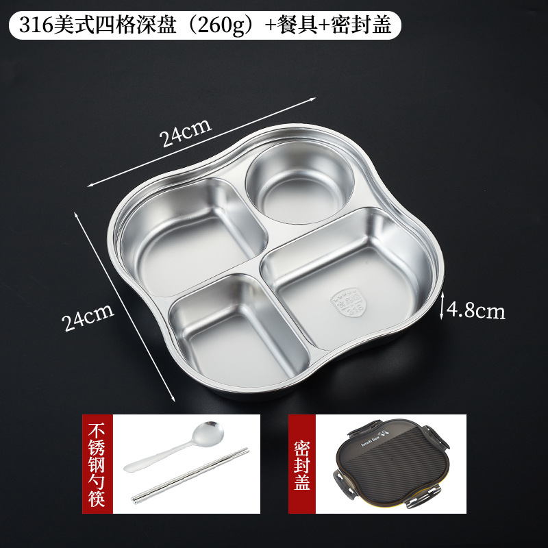 • 316 아메리칸 스타일 4칸 깊이 4.8cm [밀폐뚜껑+밀폐그릇 포함]