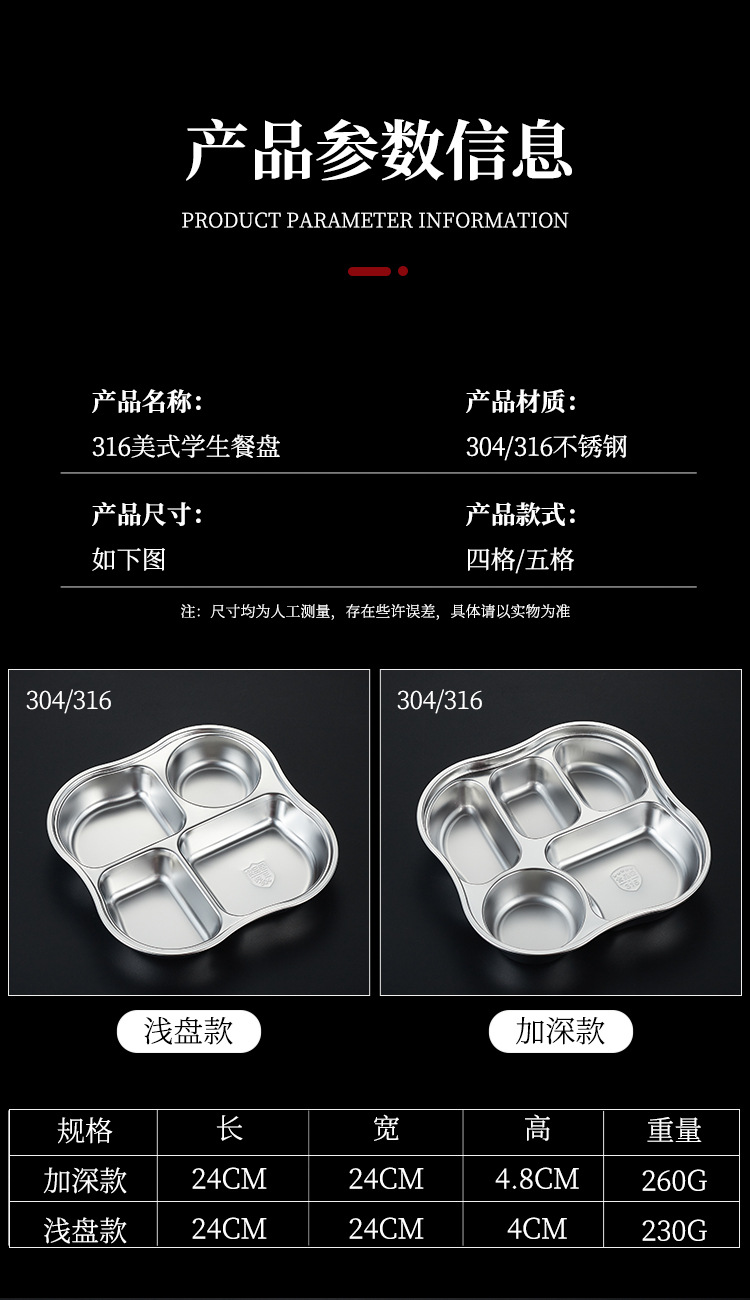 • 304 아메리칸 스타일 4 그리드 4.8cm 깊이 [밀폐 커버 포함]