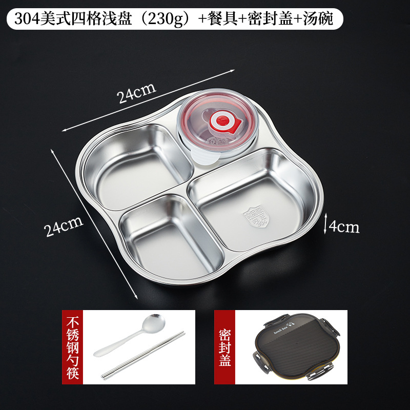 • 304 아메리칸 4칸 깊이 4.8cm [밀폐뚜껑+밀폐그릇 포함]