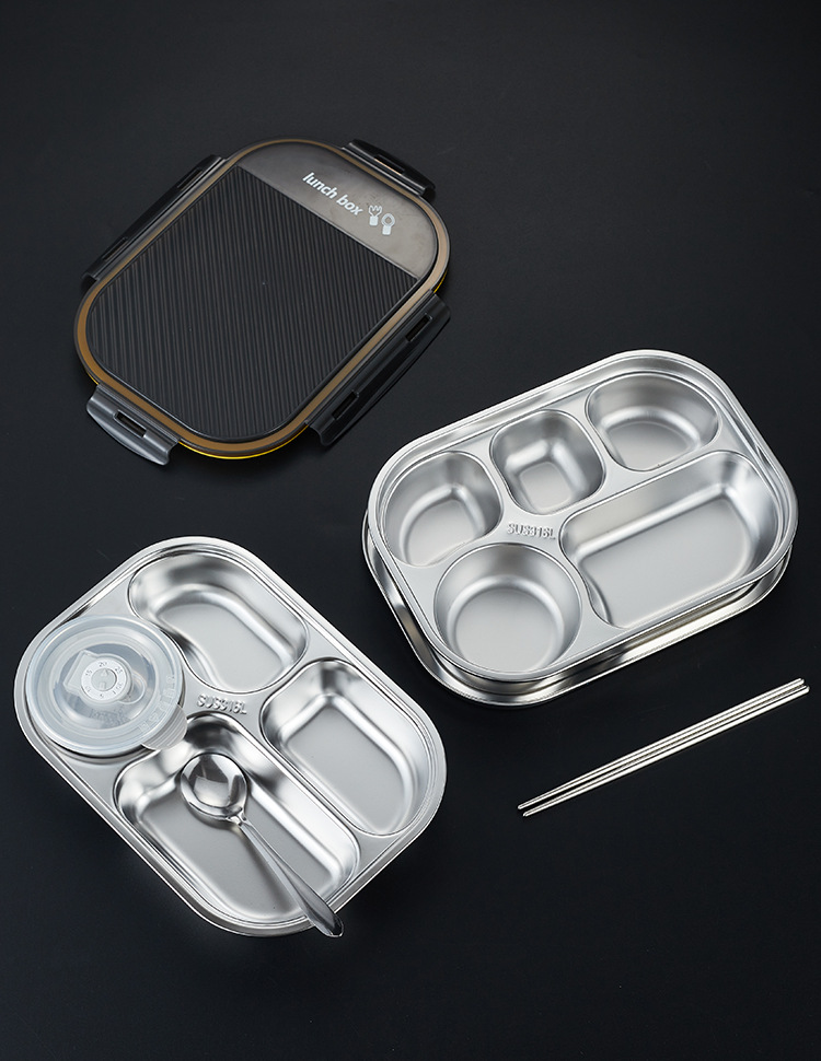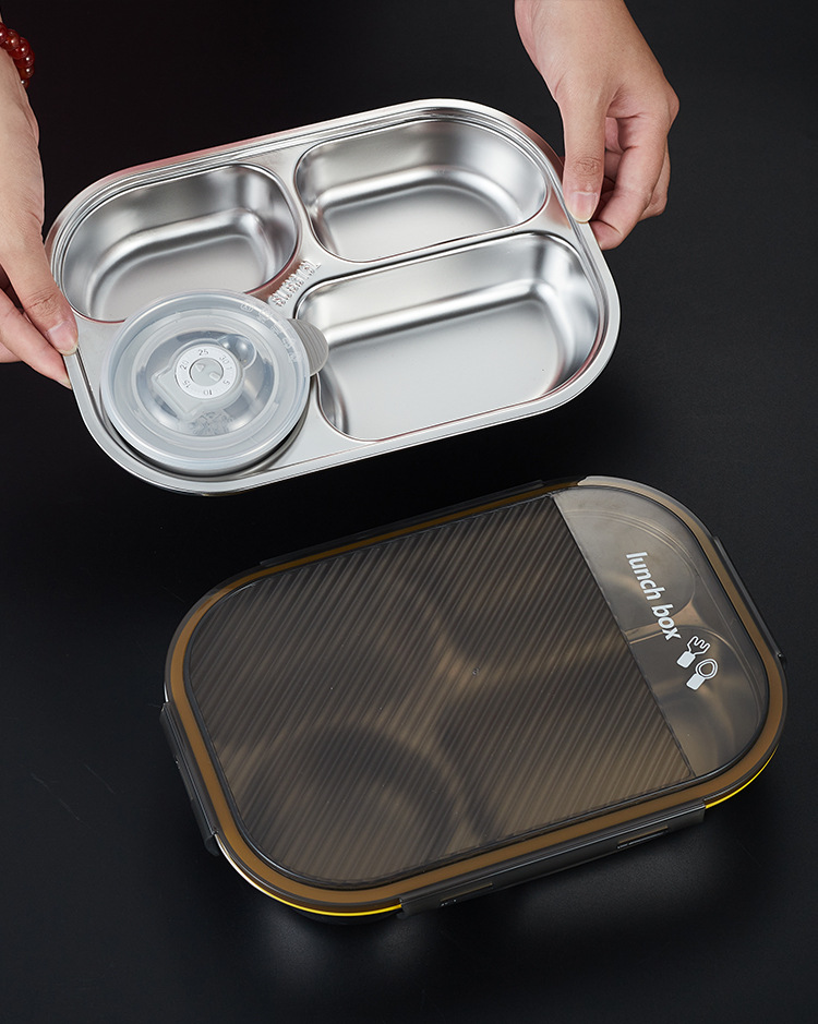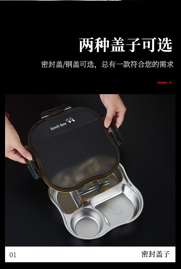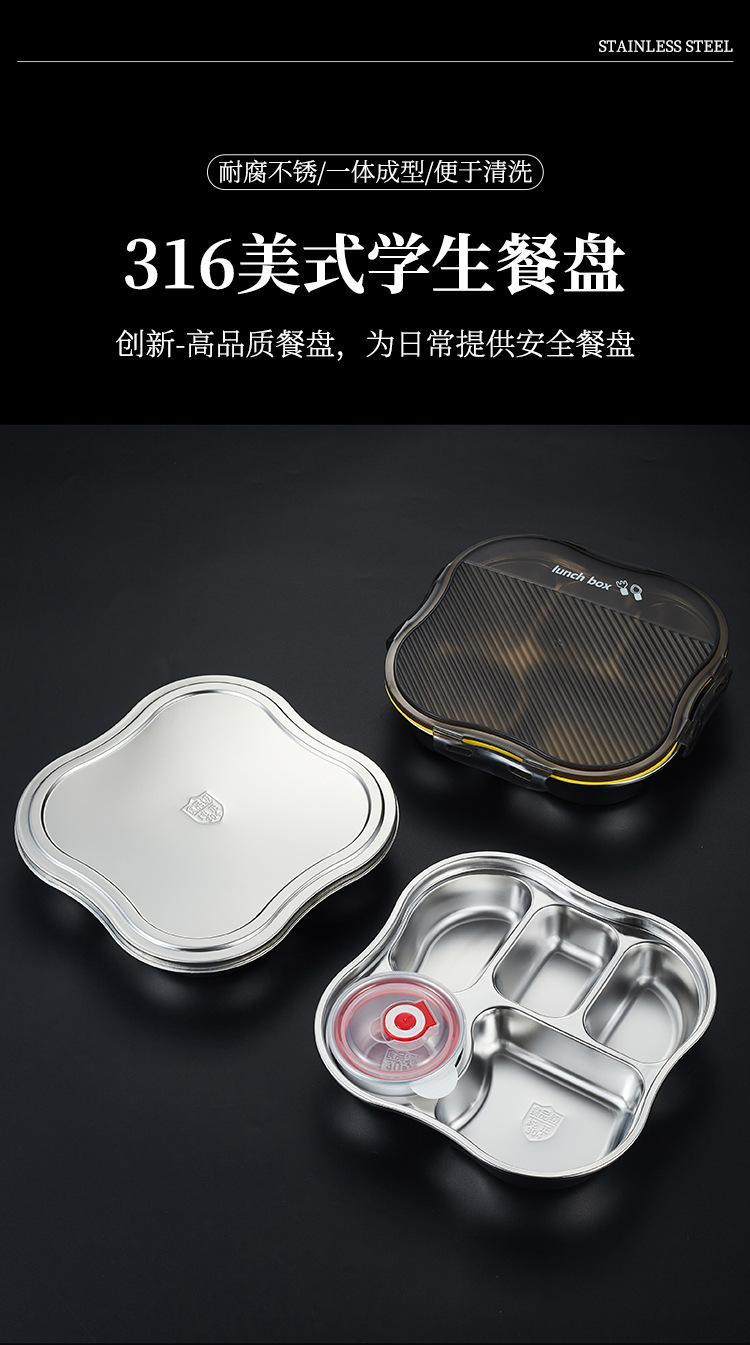항균 316 스테인리스 스틸 대형 뚜껑형 밀폐형 트레이 도시락 직장인, 학생, 구내식당 식사용스토어 가기