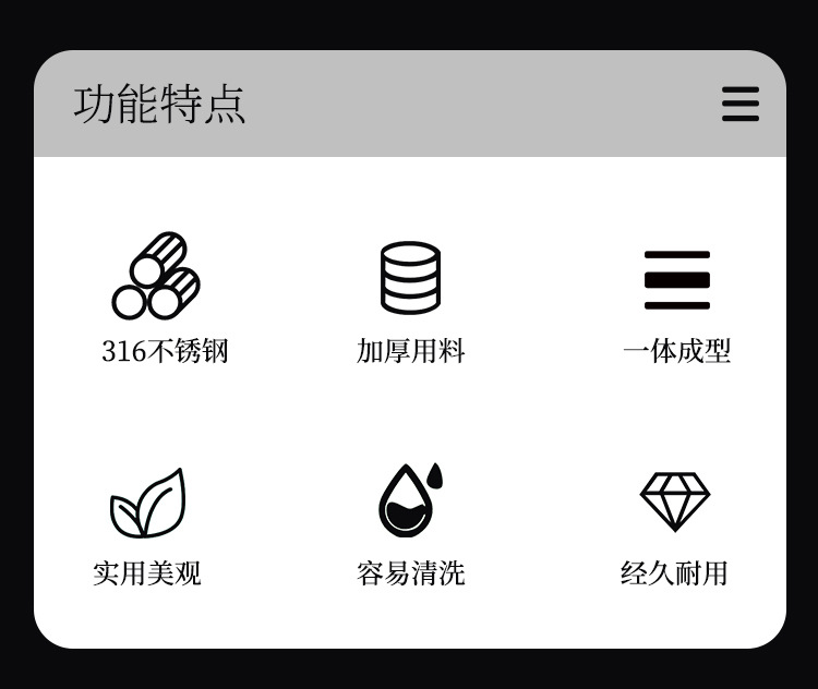 • 304 아메리칸 스타일 4그리드 4.8cm 깊이 [방진 스틸 커버 포함]