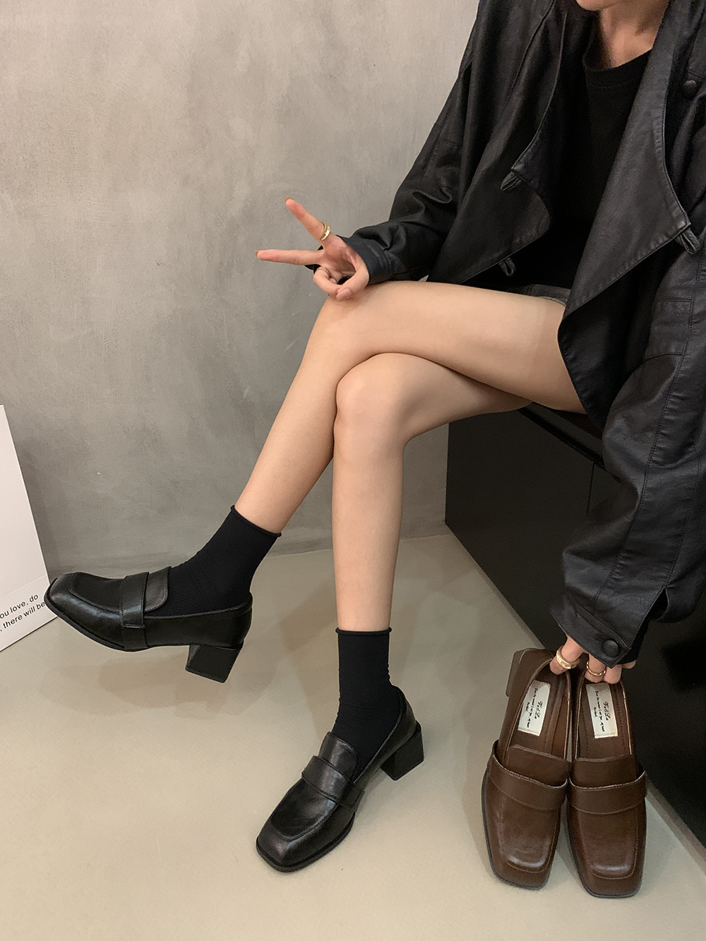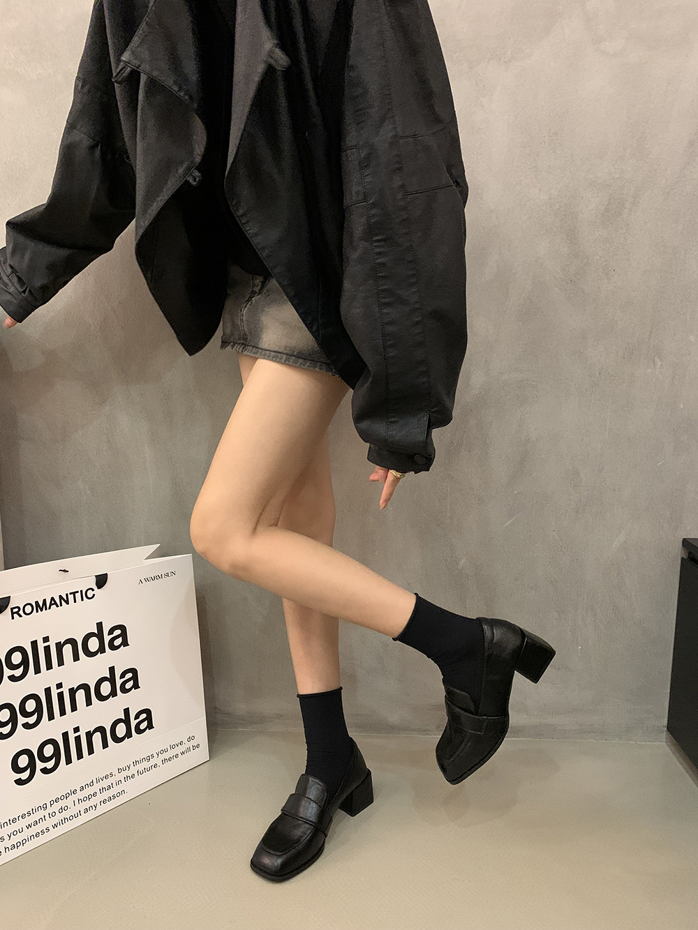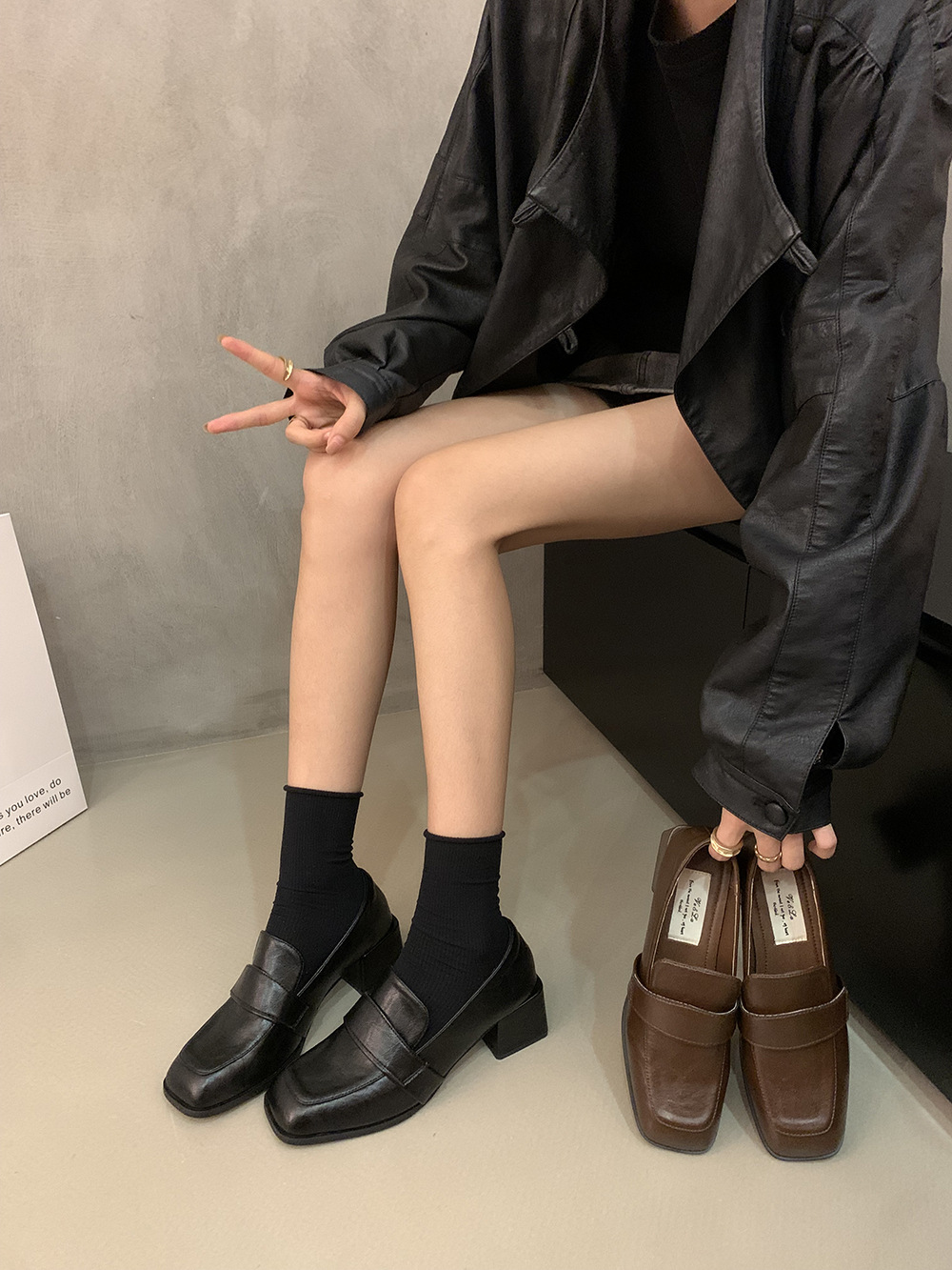 영국 복고풍 스타일의 단층 신발 작은 가죽 신발 두꺼운 뒤꿈치 사각형 발가락 로퍼 가을과 겨울 새로운 한 단계 여성 신발 검은 신발스토어 가기