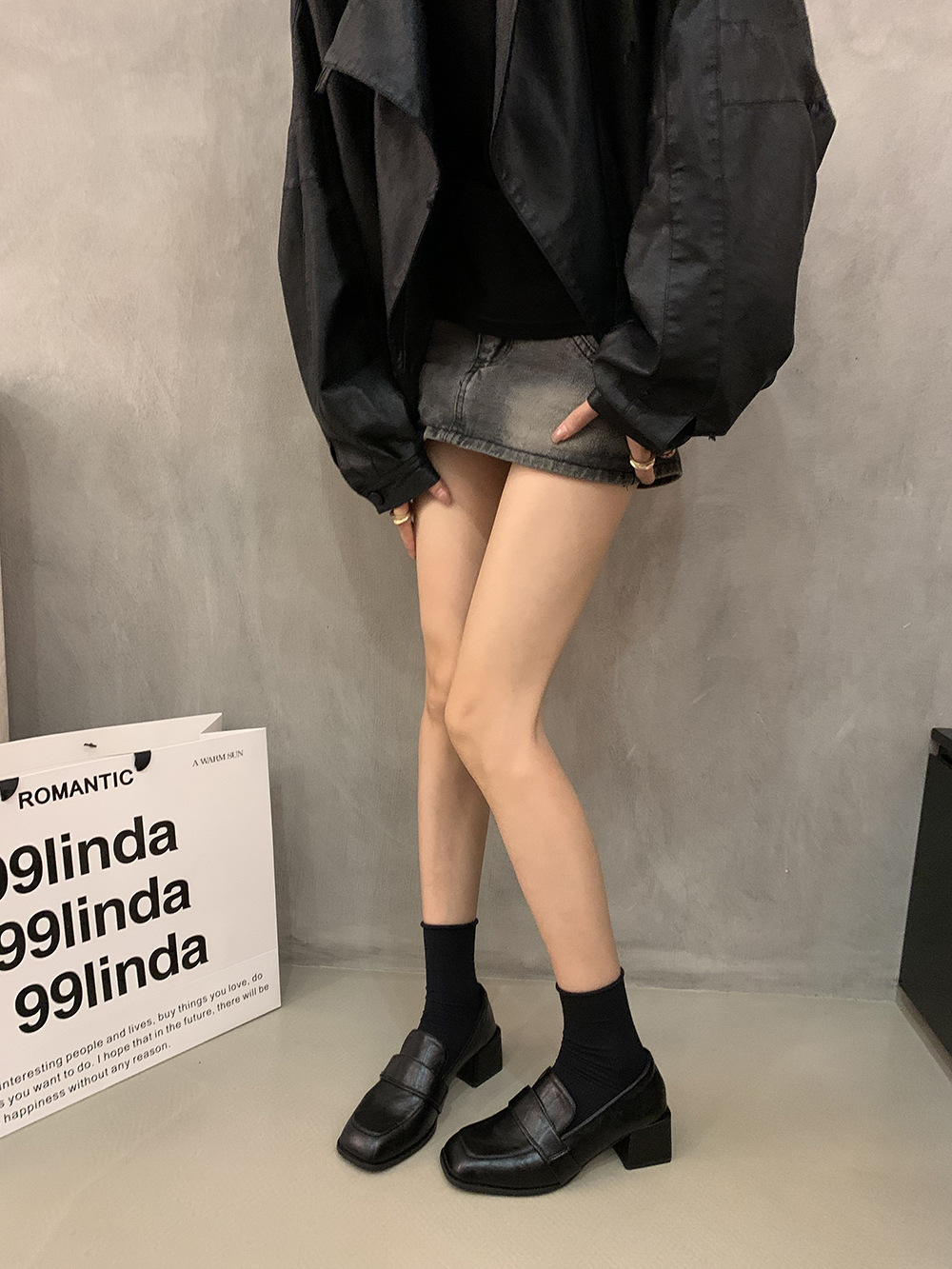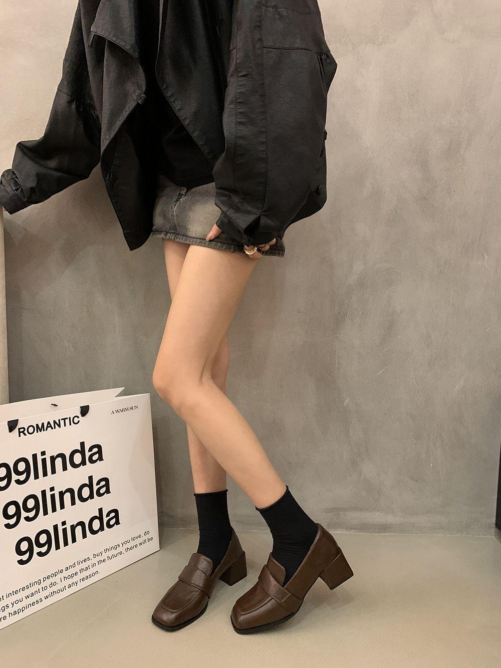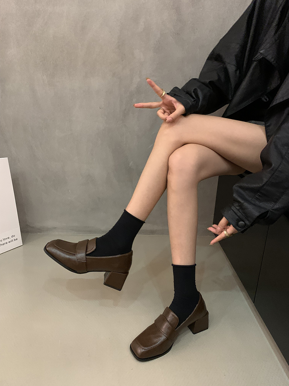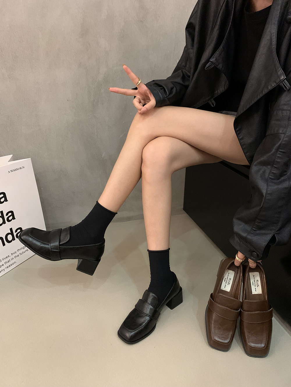 영국 복고풍 스타일의 단층 신발 작은 가죽 신발 두꺼운 뒤꿈치 사각형 발가락 로퍼 가을과 겨울 새로운 한 단계 여성 신발 검은 신발스토어 가기