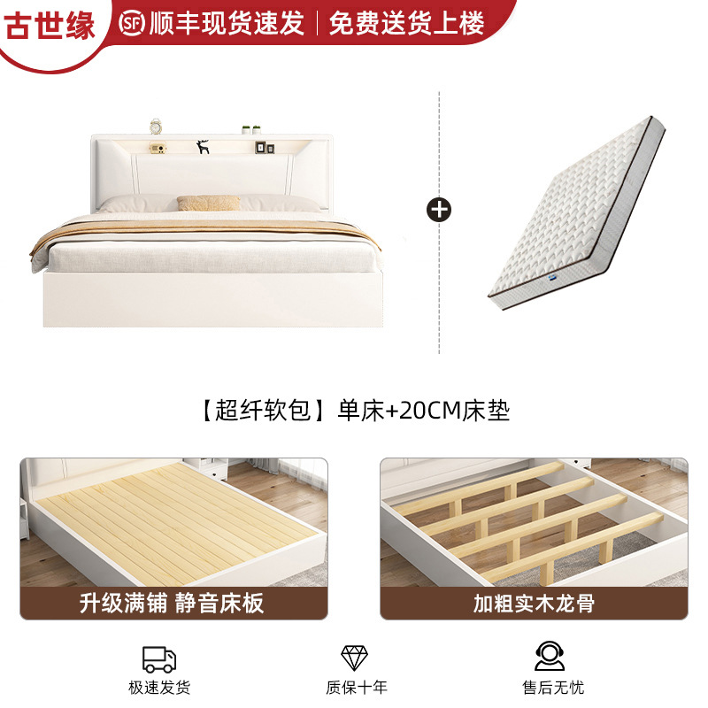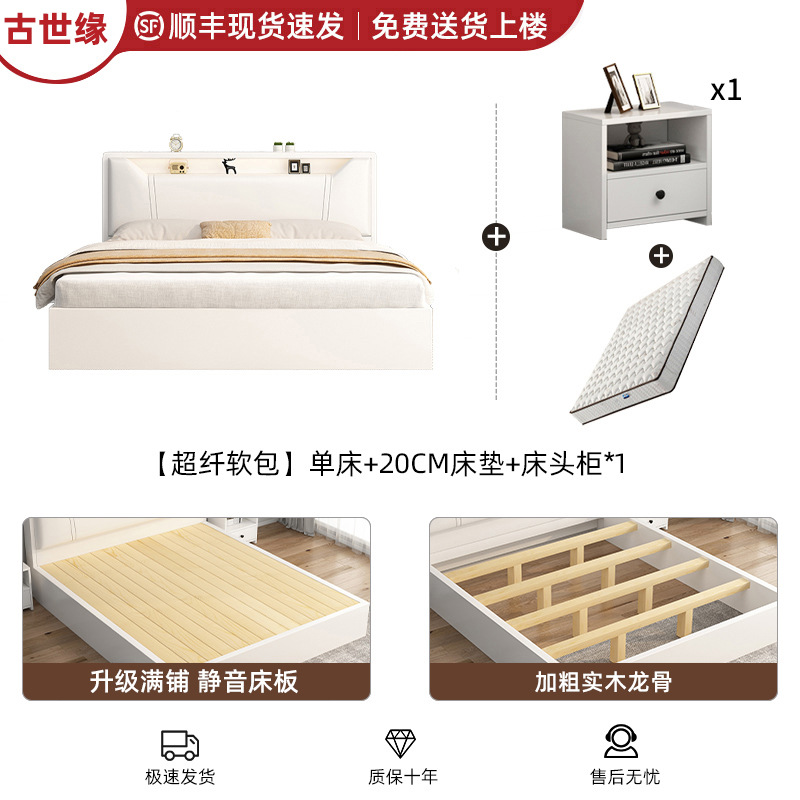 • [풀 플로어 스탠딩 모델] 싱글 침대 웜 화이트 + 20CM 매트리스 + 침대 옆 테이블 * 1 [위층 배송]